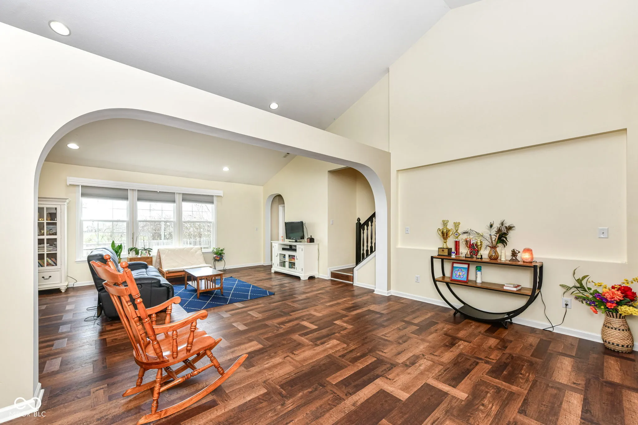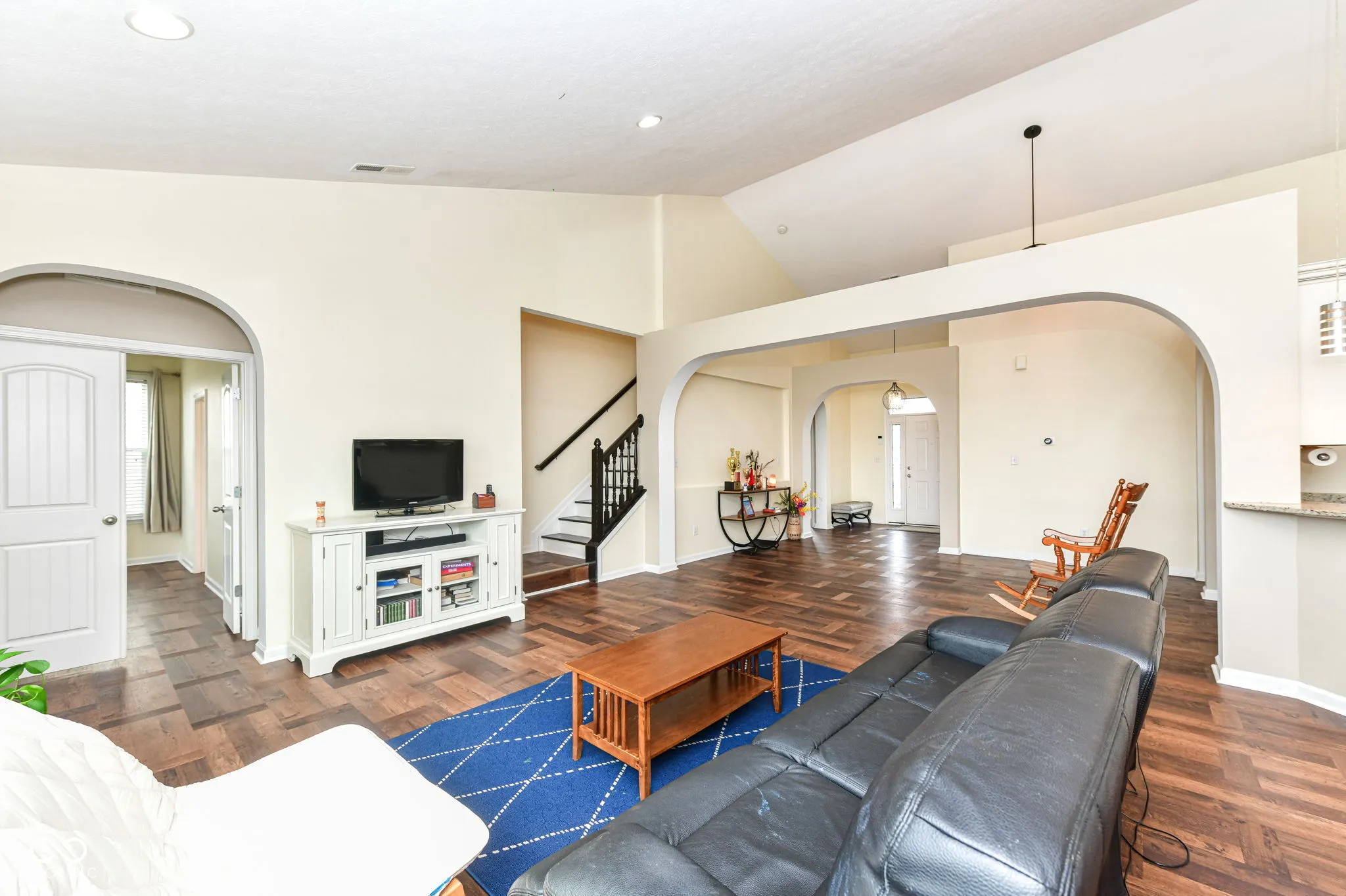 Perfect home nestled in a desirable neighborhood featuring 3 bedrooms with 2.5 bath ranch with loft along with separate office room and fully fenced backyard. Spacious family room with the 20′ soaring ceilings extending into breakfast/dining area overlooking the private fenced backyard with brick paver patio and firepit perfect for peaceful mornings and evening sunsets. Kitchen boasts granite countertops, SS appliances and custom cabinets double oven, breakfast bar and island. Primary bedroom with large walk-in closet, dual sink with soaking tub and separate shower. Two other bedrooms with jack & jill bathrooms. Also has private study/home office. Upstairs with loft area great for entertainment. Neighborhood amenities include playground, pool. walking trails. Recent upgrades include Cooktop Stove (2025), Roof (2023), Whole house flooring (2023) Water softener (2023) Dishwasher (2023). Close Hamilton southeastern shopping dining and highway access along with close proximity to award winning HSE schools.