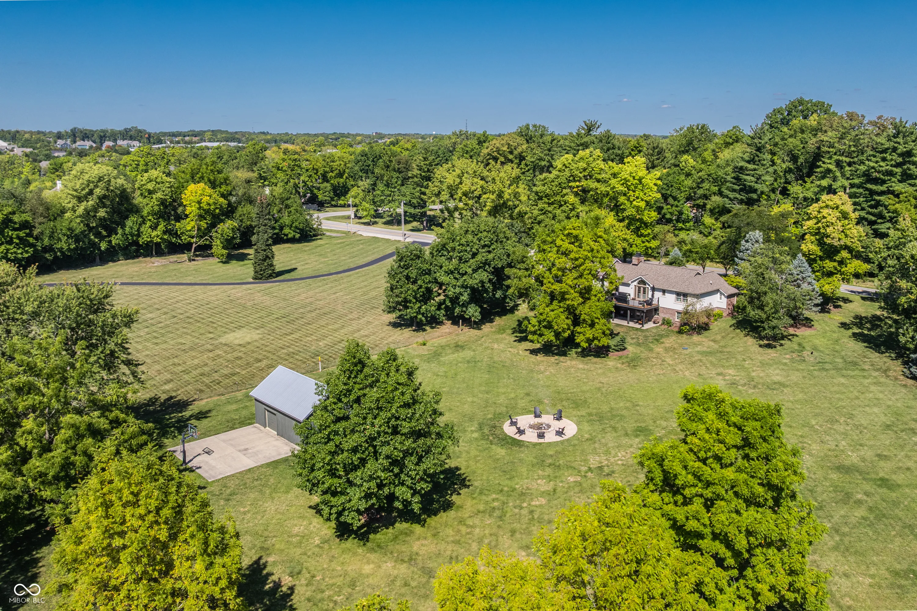 Serenity in the country with the convenience of everything nearby. This beautifully updated ranch with a walkout basement sits on 3 acres and offers warmth and personality at every turn. The home was completely refreshed with a new exterior in 2022 and features light-filled living spaces, including a stunning great room with cathedral ceilings and exposed beams. The kitchen features quartzite countertops, a large pantry, and opens to inviting living areas designed for everyday life and hosting. Multiple gathering spaces throughout the home create the perfect setting for relaxing, socializing, and play. With two dedicated offices, the home easily accommodates today’s work-from-home lifestyle. Three fireplaces add warmth and ambiance throughout. Outdoor living is just as special, with a large wraparound deck and several outdoor areas to relax and enjoy the peaceful setting. A 600-square-foot pole barn offers endless possibilities – perfect for parties, a she-shed, studio, or hobby space. Located adjacent to The Bridgewater Club, this property offers the rare combination of privacy, space, and convenience in an exceptional setting.