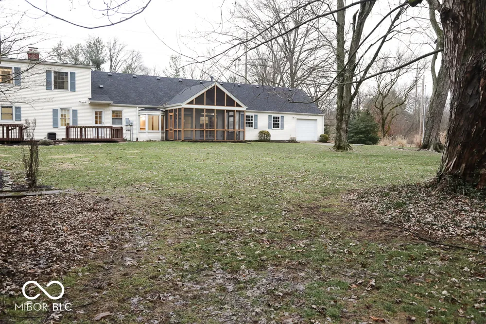Ideal setting on two acres! The hustle & bustle is easily forgotten as you pull into your driveway. Set back off the road with a barrier of large trees protecting your privacy. Large screened in patio & sprawling deck are perfect for enjoying the tranquility of the extensive backyard and trees. LARGE 3 car garage is not your modern “barely fit a car” garage. Deep bays, cabinets, storage cubby AND a full garage door on the rear for easy access of toys/tools to your 2 acres of property. No cookie cutter here! Large entry to shake off the cold and deposit shoes, backpacks, etc opens into the fantastic great room with built ins, fireplace and direct view of the backyard oasis. Open concept w/ eat in kitchen incl granite, ss appliances and walk in pantry. Home is perfectly divided for entertaining: living spaces on one side and bedrooms on the other. Bedrooms stay quiet while others watch TV or talk in the great room. Tucked away 1/2 bath means guests never use your personal bathrooms. 2nd cozy living area w/ its own fireplace w/ blower that kicks out serious heat separates bedrooms from the rest of the home. Primary ensuite is on the main level, so no stairs for you! Direct access to the deck for morning coffee or nightcap. Attached bathroom w/ double vanity, large walk-in tile shower w/ multiple shower heads & separate luxurious soaking tub w/ 10 jets on your back alone! Walk-in closet with organizers, full length mirror and built in ironing board! Private bedrooms upstairs share a full bath. Laundry chute adds charm & fun. And the storage…OH THE STORAGE! Large closets, xtra closets, stg shed, basement, walk in attic access upstairs AND a staircase to almost 400 sqft of attic space above garage! Finish for an office, studio or rec room? No more highways to commute downtown, northside, Carmel, etc! YES! No HOA, 2 acres & a home that fits your family w/ room to grow don’t come around often. PRICED ALMOST $40,000 UNDER Nov 2025 appraisal!??! You better act q