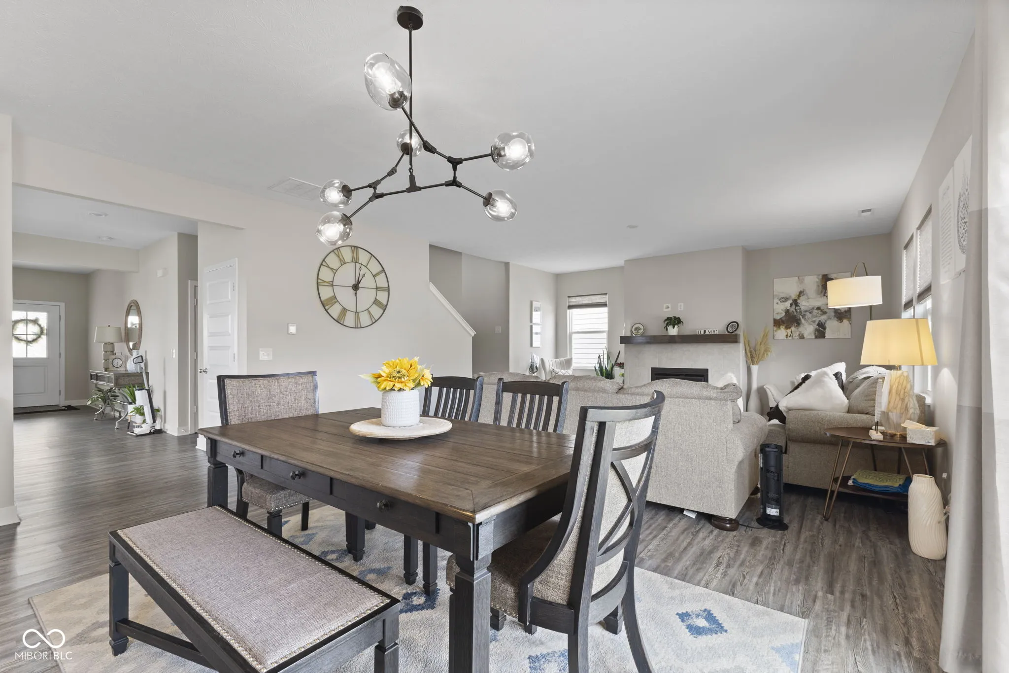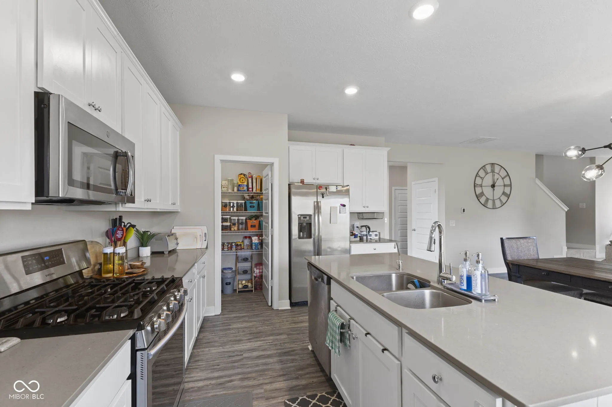 NEW READY TO MOVE IN HOME TO THE MARKET in Bridger Pines on premium lot with nice view on the backyard! This wonderful 5 BR 3.5 bath home with 2 front loaded garage is move in ready + just 2019 YEAR built with water softener + water filter installed this home offers over 3100 square feet of thoughtfully designed living space, blending modern finishes with a refined, open-concept layout. A welcoming entry sets the tone, flowing effortlessly into the expansive great room and contemporary kitchen. Designed for both everyday living and entertaining, the kitchen features white cabinetry, quartz countertops, stainless steel appliances, and a generously sized center island. A well-designed family entry adds function and organization without sacrificing style with gas fireplace. Upstairs, a versatile loft provides flexible living space, adjacent to a convenient laundry room and three spacious bedrooms.. Private primary suite retreat has luxurious bathroom finished beautifully with tiled flooring, dual vanities with quartz countertops, a walk-in shower, and an huge closet. Residents of Bridger Pines enjoy access to a community pool, playground, and walking trails that connect directly to Flat Fork Creek Park-one of Fishers’ premier outdoor destinations. The park offers scenic boardwalks, nature-inspired play areas with treehouses, 1.5 miles of mountain biking trails with progressive terrain and technical features, and a 60-foot sledding hill for seasonal enjoyment. Ideally located with convenient access to I-69 and major thoroughfares, this home offers seamless connectivity to shopping, dining, and all that Fishers has to offer. Make this home yours today!