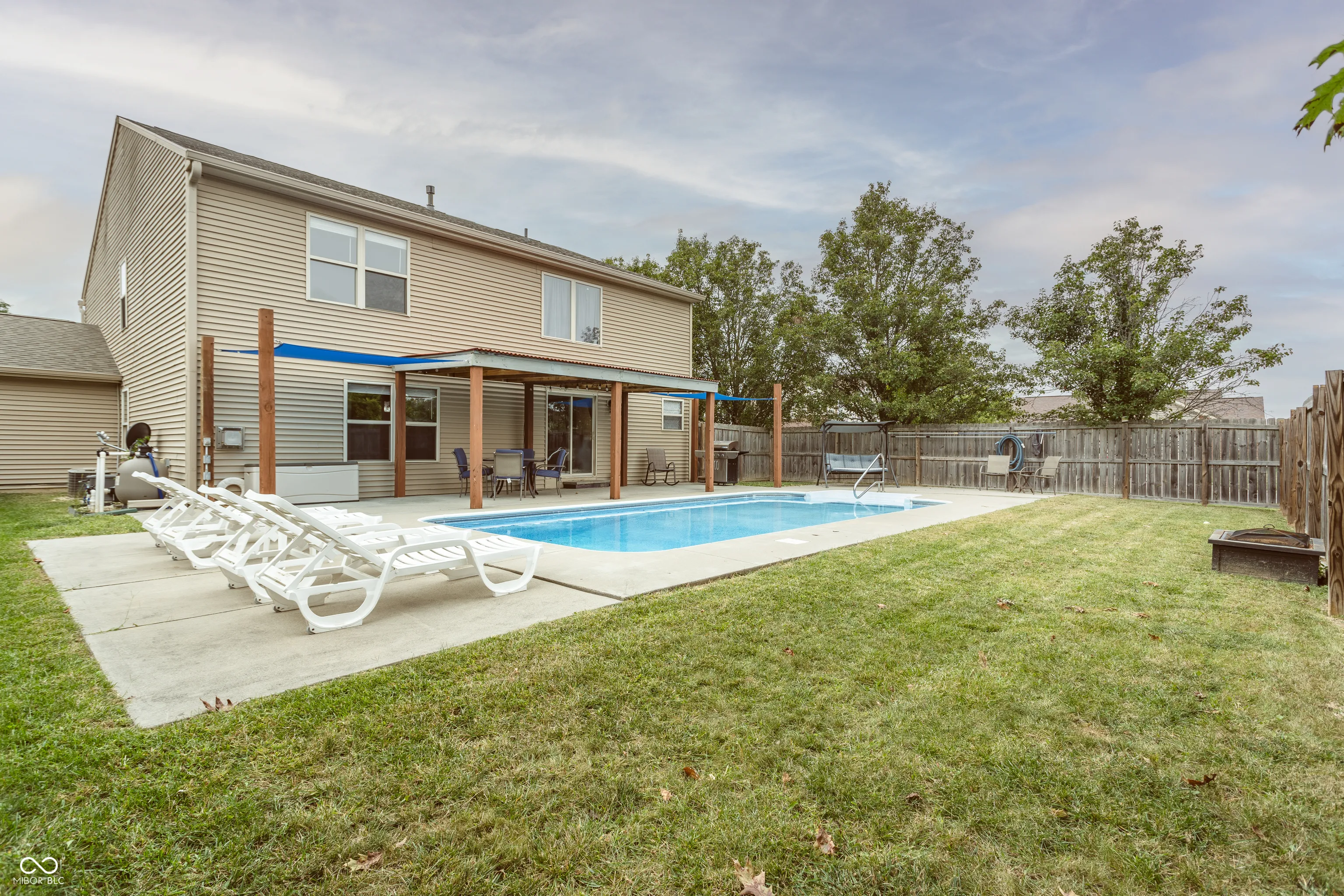 Welcome home to this beautiful, exquisitely maintained, 5 bedroom, 3 bath home featuring a three car garage on a corner lot and a private backyard escape with a full privacy fence and in-ground pool! Nestled at 7083 N Abilene Way, this 5 bedroom/3 full bath offering 3,066 square feet of beautiful living space is just waiting for you! On the inside, enjoy an abundance of common space to relax and enjoy with a living room, dining room, open kitchen, a breakfast room area, and two family rooms, one on each level. The main floor family room boasts a gas log fireplace for those chilly nights! Also offered on the main floor is a full bathroom, a bedroom or a nice office space, and laundry. Up the stairs, you’ll be greeted by the family room loft area leading to four additional spacious bedrooms, all with walk-in closets, and two full baths. The massive primary suite with vaulted ceilings features a garden tub, a new full shower stall, a large double sink vanity, and two walk-in closets. On the exterior, enjoy your private, fully fenced-in backyard oasis featuring a large covered patio area and an in-ground pool. The remaining side and front yards feature well-manicured flower beds with mature trees adding to your privacy and comfort. Recent updates include a three dimensional 50-year shingle roof, gutters and downspouts (2023), Water Heater (2023), Refrigerator (2023), Dishwasher (2020), new or newer flooring throughout, updated bathrooms, lighting fixtures, and more! All kitchen appliances, custom blinds, and curtain rods stay with the home. All this conveniently located within the established Austin Trace neighborhood and the great school district of Mt. Vernon Schools; this home is close to great shopping/restaurants/other amenities as well as an easy commute to Hamilton Town Center, Fishers and Indy.