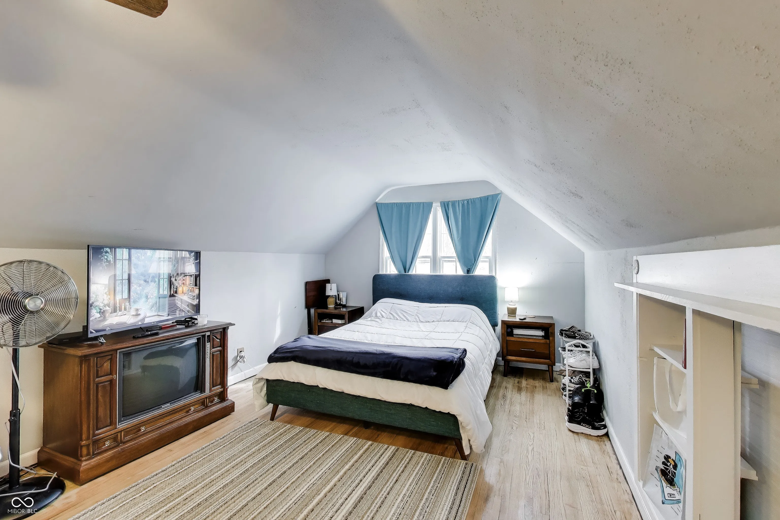 This beautifully updated three bedroom Traditional American home is perfectly situated at the end of a quiet street just minutes from the excitement of downtown Indianapolis. From the expansive covered front porch to the refined interior details every inch of this property is designed for modern comfort. The main level offers a sophisticated living room with crown molding and newer wide plank flooring leading into a beautifully remodeled eat in kitchen with updated cabinetry and generous counter space. Two comfortable bedrooms are located on the main floor while the upper level provides a spacious third bedroom retreat with unique character and abundant natural light. Original hardwood floors reside under the main level carpet and are showcased throughout the upper level. The large unfinished basement offers extensive storage or workshop potential and the fully fenced backyard provides a private outdoor oasis with a storage shed mature trees and professional landscaping with seasonal perennials. With incredibly low property taxes and a prime location near local parks and trails this move in ready home is an exceptional opportunity for any buyer looking for quality and value.