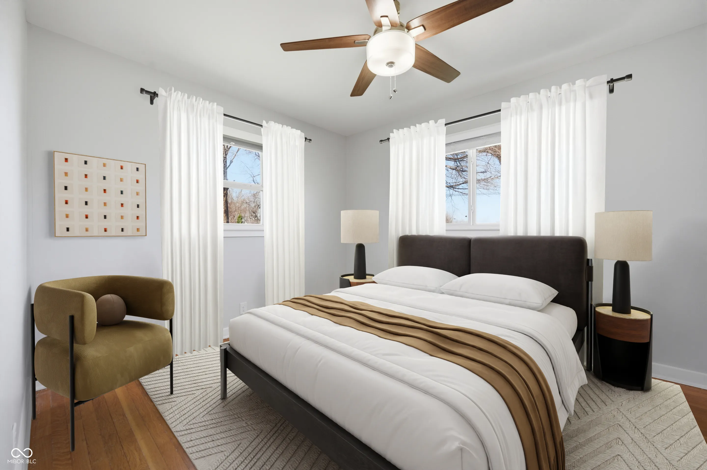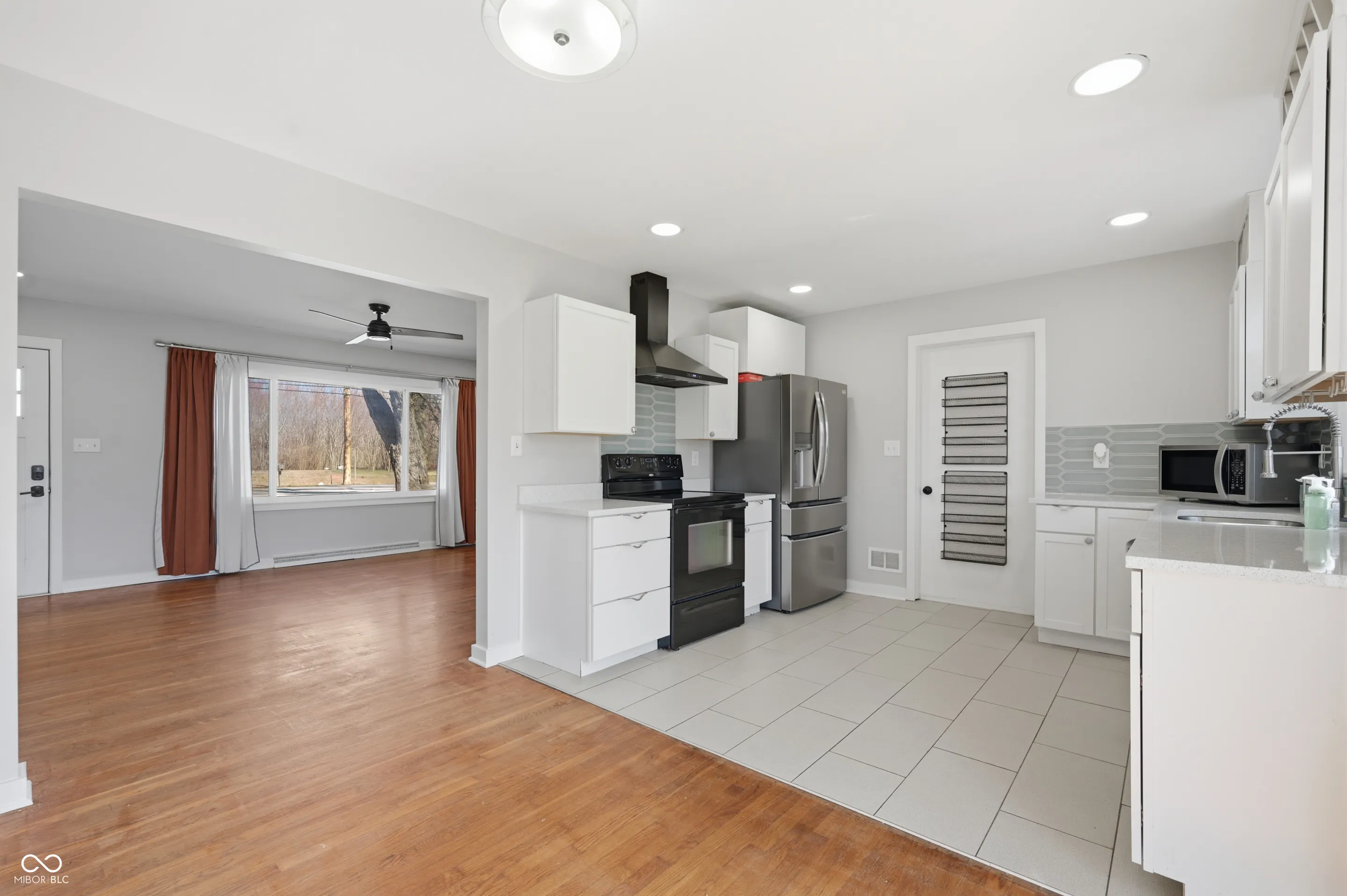 Welcome home to this stunningly updated mid-century ranch offering 3 bedrooms, 1 bath, 1,671 sq ft and an incredible workshop space. Step inside to a sun-filled living room with refinished original hardwoods, fresh paint, recessed lighting and a modern ceiling fan. The remodeled eat-in kitchen impresses with crisp white shaker cabinetry, quartz-style counters, eye-catching glass tile backsplash, tile flooring, stainless appliances and sliding doors that open to the expansive fenced backyard-perfect for pets, play and outdoor entertaining. Three comfortable bedrooms feature hardwood or plush carpet, neutral colors and updated ceiling fans. The spa-like bath has been completely renovated with a large white vanity, solid-surface top, upgraded fixtures and wood-look tile flooring. A standout feature is the bright rear flex studio with terrazzo-style flooring, multiple windows and its own mini kitchenette-ideal as a home office, hobby room, gym or teen hangout. Additional highlights include an oversized attached garage with laundry, storage shed, newer windows and mechanicals (per prior listing data), and low-maintenance stone exterior. Located in a desirable southside neighborhood near the University of Indianapolis, I-65, local parks, restaurants and everyday conveniences, this meticulously maintained home blends modern style with everyday functionality at an exceptional value.