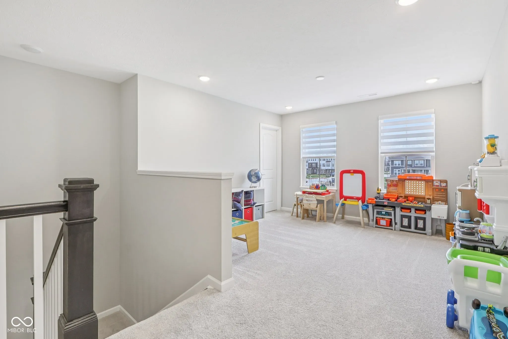 Move-in ready 5 bedroom home for sale in Carmel, Indiana located in the sought-after Ambleside community, featuring a finished basement, main level bedroom, and over $100,000 in upgrades. Built in 2024, this home offers 3 separate living areas ideal for modern living, entertaining, and multi-generational needs. The main level features an open-concept layout with a spacious living room, fireplace, and a designer kitchen with quartz countertops, 42-inch cabinetry and a full gas built-in appliance package including cooktop, chimney hood, and wall oven with microwave, plus a butler’s pantry for added prep space and storage. The breakfast area and dining room provide flexibility for everyday living and hosting, while the main-level bedroom with full bath is perfect for guests, a private office, or in-law quarters. The covered patio extends your living space outdoors, creating an easy flow for relaxing or entertaining. Upstairs, a versatile loft offers a second living area and separation between the owner’s suite and 3 additional bedrooms. The primary suite features a spacious layout, walk-in closet with custom shelving, dual vanities, and a spa-inspired bath with an oversized tiled walk-in shower, along with upgraded finishes including quartz and granite surfaces, rectangular sinks, comfort-height toilets, and wood-look tile details. The finished basement adds even more living space with a large recreation area and full bathroom, ideal for a home gym, media room, or play space. Additional highlights include an upstairs laundry room, luxury vinyl plank flooring throughout the main areas, mudroom dropzone, modern black accents, and a cohesive, designer-selected palette throughout. The home is equipped with smart home technology, Zinga’s Blinds, enhanced with 40+ LED lights, TV prewire, decorative switch upgrades, and Energy Star efficiency. This home offers transferable builder warranties including 2-year, 5-year, and 10-year coverage for added peace of mind.