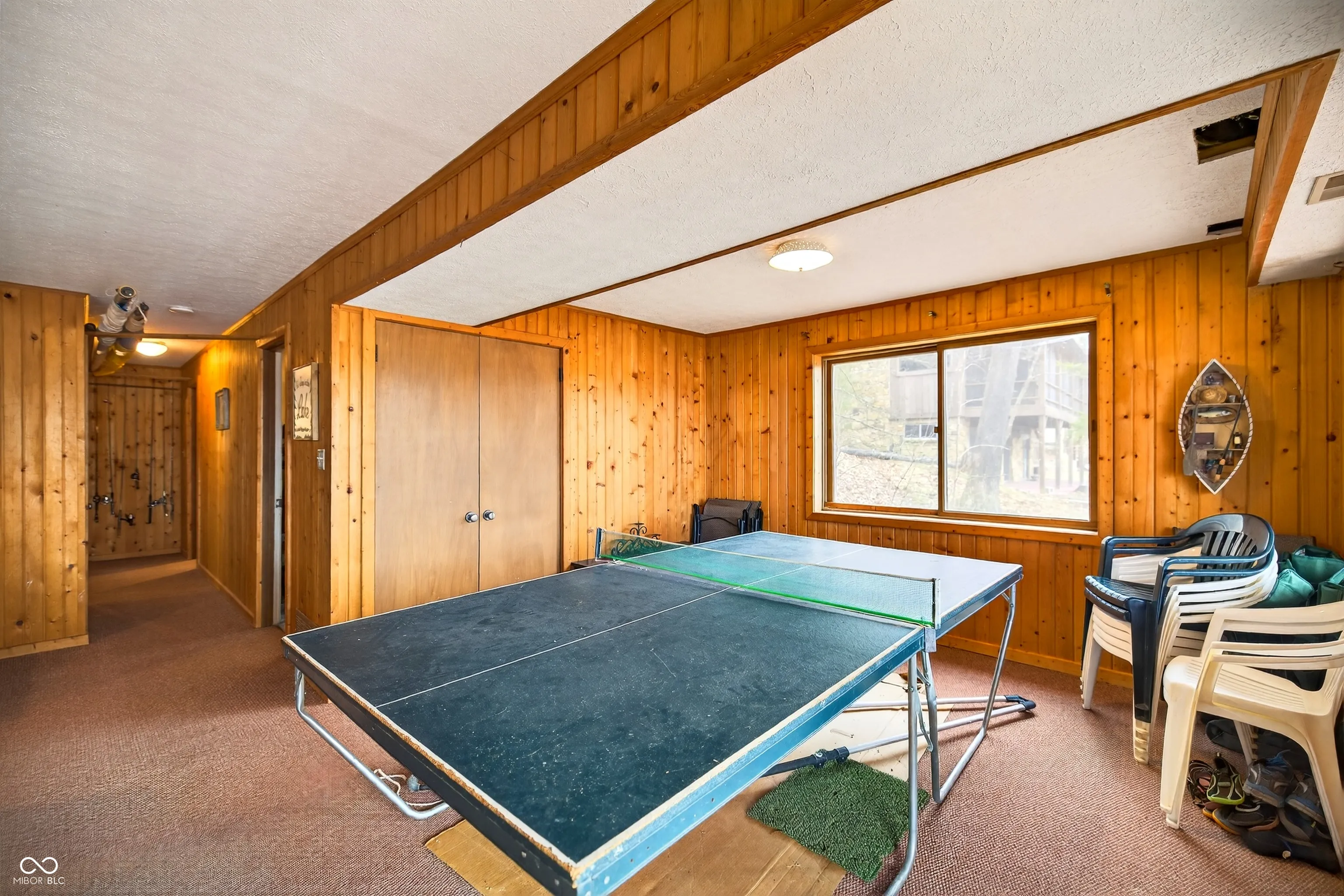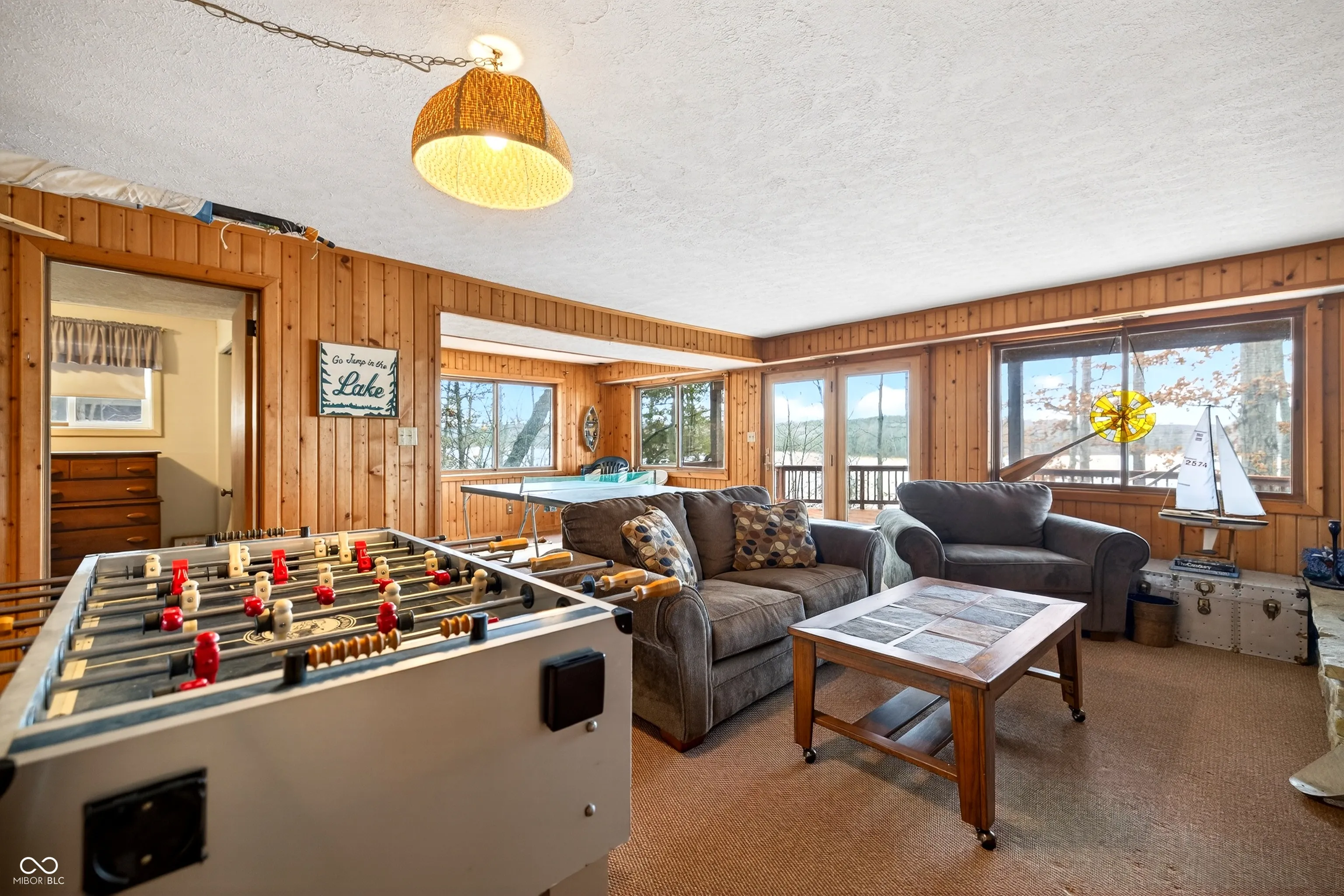 Tucked along the shoreline of Lake Monroe, this charming Swiss chalet-style retreat offers the relaxed lake lifestyle buyers dream about, complete with a coveted boat slip at the neighborhood dock. Just bring a swimsuit, this home is being sold turn-key! Spend summer mornings on the water and wind down in the evenings around a lakeside campfire beneath the trees. Situated in Salt Creek Estates in Monroe County, the home is surrounded by the wooded hills and natural beauty that make this area of Southern Indiana so special. The 4-bed, 2-bath ranch captures the timeless feel of a classic lake cabin. Warm wood interiors, exposed beams, and two stone fireplaces create inviting gathering spaces, while large windows frame peaceful views of Lake Monroe. The walkout lower level provides additional living and recreation space, ideal for hosting guests after a day on the water. Whether you’re looking for a weekend getaway or comfortable year-round living, this property offers a rare opportunity to enjoy lake access just outside your back door while living less than 30 minutes to Bloomington or downtown Nashville.