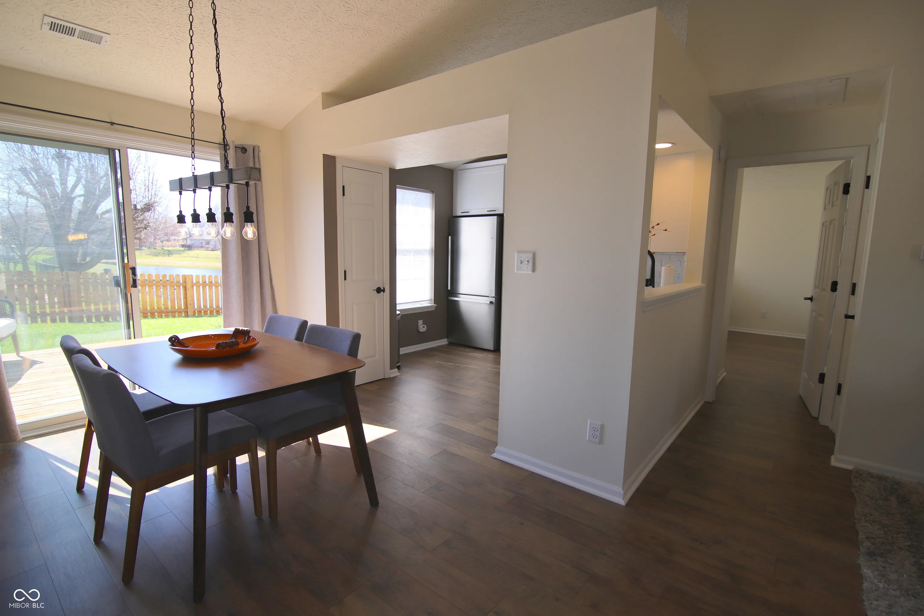 For those homebuyers seeking affordability, distinction,quality&location. Stylish contemporary 1-lev ranch w/scenic pond views&completely fenced pet-friendly rear yard is distinguished by extraordinary architectural feat&exquisite detail. (HOA fee $200 annual!) The min you walk into this immac split 2bd,2full ba home you get an overwhelming sense of space&openness. Home uses lge windows(kit too),13’cathed clgs(even kit),x-wide entr into kit along w/lge open view into GR,wall-to-wall ovsz patio doors in DR, lge transom above entr&GR dimensional wall paneling all add to spaciousness! Home’s SW expos&multifaceted archit endeavor maximizes consistent natural light-brighter int sure to elevate your well-being, productivity&connection to outdoors. Open concept flows entr to GR to DR to kit. Hse screams designer.Whole home transformation 2023 adding value&lowering energy cost:both BAs,kit,ensuite w/barn door,water htr’2024,42″Shaker Cabs,granite tops,farm sink,SS appl,backspl,wtr lux lam flrs,PotteryBarn color scheme,lighting,vanities,plumb.fix,door hard,wash/dryer,lge wood dk,wood fence.Prem.lot-Tranquil panoramic views of pond. Great space to unwind w/fam&friends.From the rustle of leaves in the wind to the vibrant color of blossoms swaying in the sun. Nestled on safe/private no-through St.Unprecedented convenient location 2 min to Allisonville&116 St.5-10 min to yr-round festivities,unique attract,developing Nickel Plate Distr.local markets,24 parks(142 mi of nature&recreation trails),RiverGlenCountryClub, shopping, dining,maj employers. .6mi-3.0mi to all award-winning HamiltonSoutheastern Schools.EZ access SR37,I69&I465. 25 min to downtown Indy& 45 min to Indianapolis International Airport. Property taxes are very reasonable and the HOA fee is only $200 annual! See unabbreviated property description under the “Additional Information” tab.