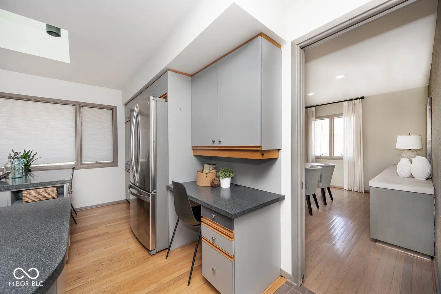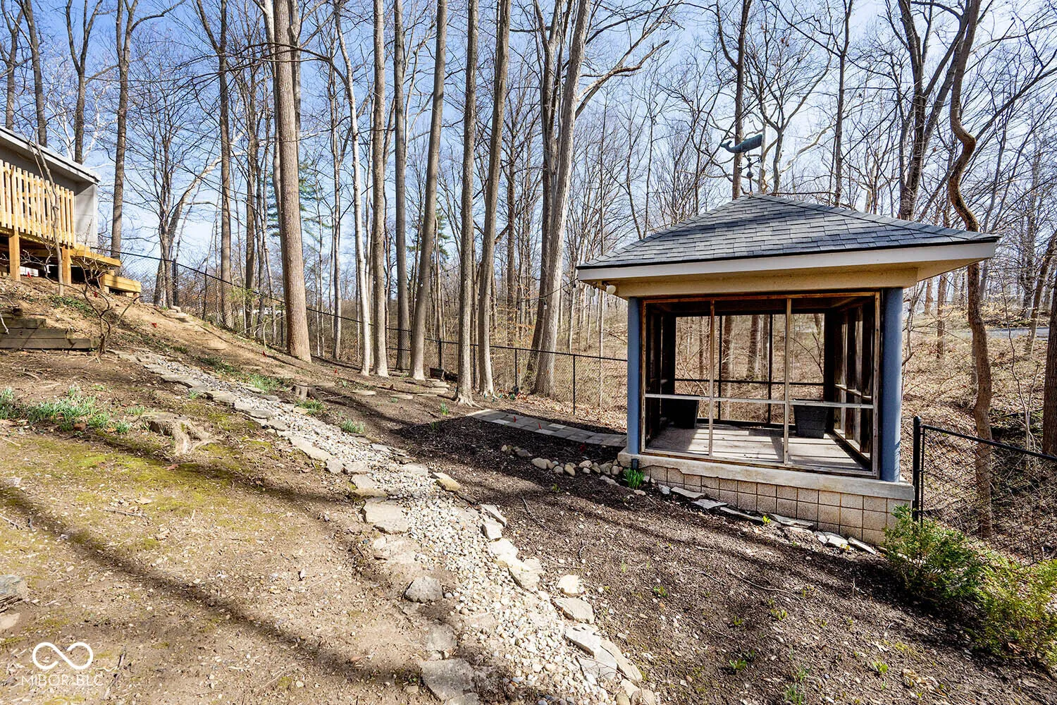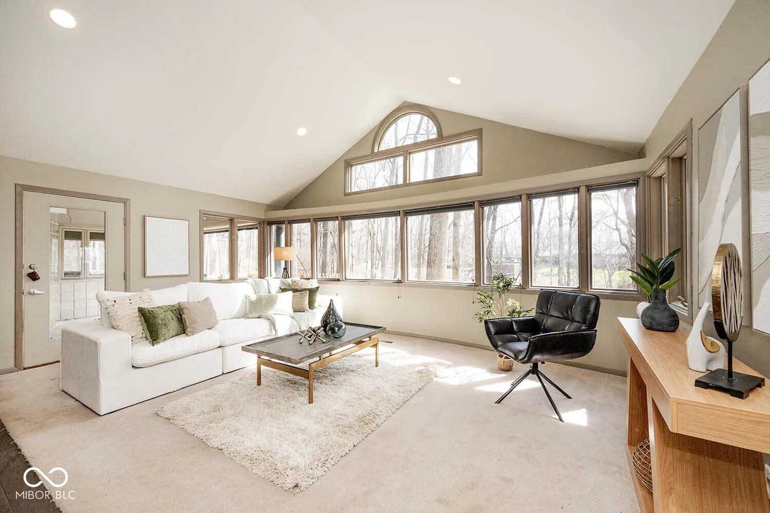 Tucked away on a premier wooded lot in the desirable Devonshire III & VI neighborhood, this one-of-a-kind private retreat offers a rare blend of mid-century design and Danish-inspired architecture. Surrounded by mature trees, the home provides a peaceful setting while delivering distinctive style and thoughtful updates throughout. This 3-bedroom, 2 full bath ranch features over 3,00 square feet highlighted by a spectacular great room with a wall of windows and vaulted ceiling that brings the beauty of the outdoors inside in every season. The home has been freshly painted in a warm sage-gray palette and showcases hardwood floors with complementary carpeting, creating a warm and inviting atmosphere. The sleek, modern kitchen is equipped with stainless steel appliances, stylish cabinetry, and abundant built-ins, while the formal dining room and private office provide flexible spaces for entertaining or working from home. A cozy main-level loft with a two-sided fireplace offers the perfect spot to relax with a good book. The spacious primary suite includes multiple closets and a large walk-in shower, double sinks, heated floors, while the newly updated guest bathroom adds modern comfort for visitors. Additional highlights include a lower-level exercise/workshop area, mudroom, washer and dryer hook up on main level and lower level, plus oversized 2-car garage with durable epoxy flooring. Outdoor living is just as impressive with covered patios, new deck, fire pit, skylights, and a charming gazebo/screen porch, all overlooking the fenced backyard-ideal for enjoying the tranquil surroundings and cool evenings. A truly unique architectural gem in one of the area’s most sought-after neighborhoods, offering privacy, character, and timeless design.