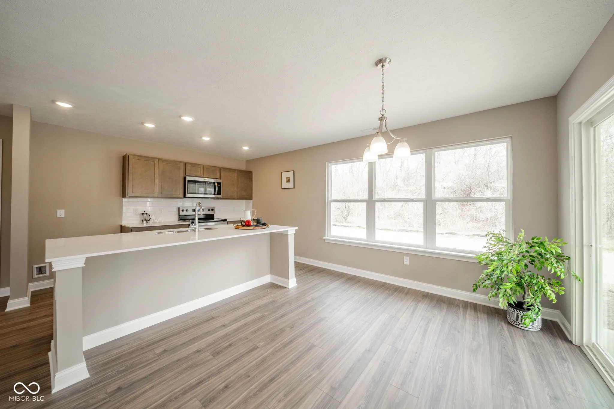 Welcome home to 402 Luellen Drive, a brand-new gem crafted by Bridgenorth Homes. Showcasing the highly sought-after Bristol floor plan, this 3-bedroom, 2-bathroom residence offers 1,469 square feet of beautifully designed, functional living space. Step through the arched entryway and into a bright, inviting open-concept layout bathed in natural light from an abundance of windows. The spacious living area flows seamlessly with the dining room and a modern kitchen built for entertaining. The kitchen features sleek solid surface countertops, an undermount sink, a walk-in pantry, and a large center island with bar seating. Just off the dining area, you’ll find a covered porch-the perfect spot for enjoying your morning coffee or winding down in the evening.The smart split-bedroom floor plan ensures privacy. The primary suite serves as a true retreat, boasting a generous walk-in closet and a beautiful en suite bathroom complete with a vanity and zero-entry shower. Two additional spacious bedrooms share a beautifully appointed second full bathroom. Additional interior highlights include a separate, dedicated laundry room for everyday convenience and a massive 3-car attached garage providing ample space for vehicles, storage, or a workshop. Located in a lovely, newly developed community, residents enjoy access to a brand-new clubhouse, walking trails, and close proximity to the local YMCA. Don’t miss your chance to be the very first owner of this pristine home!