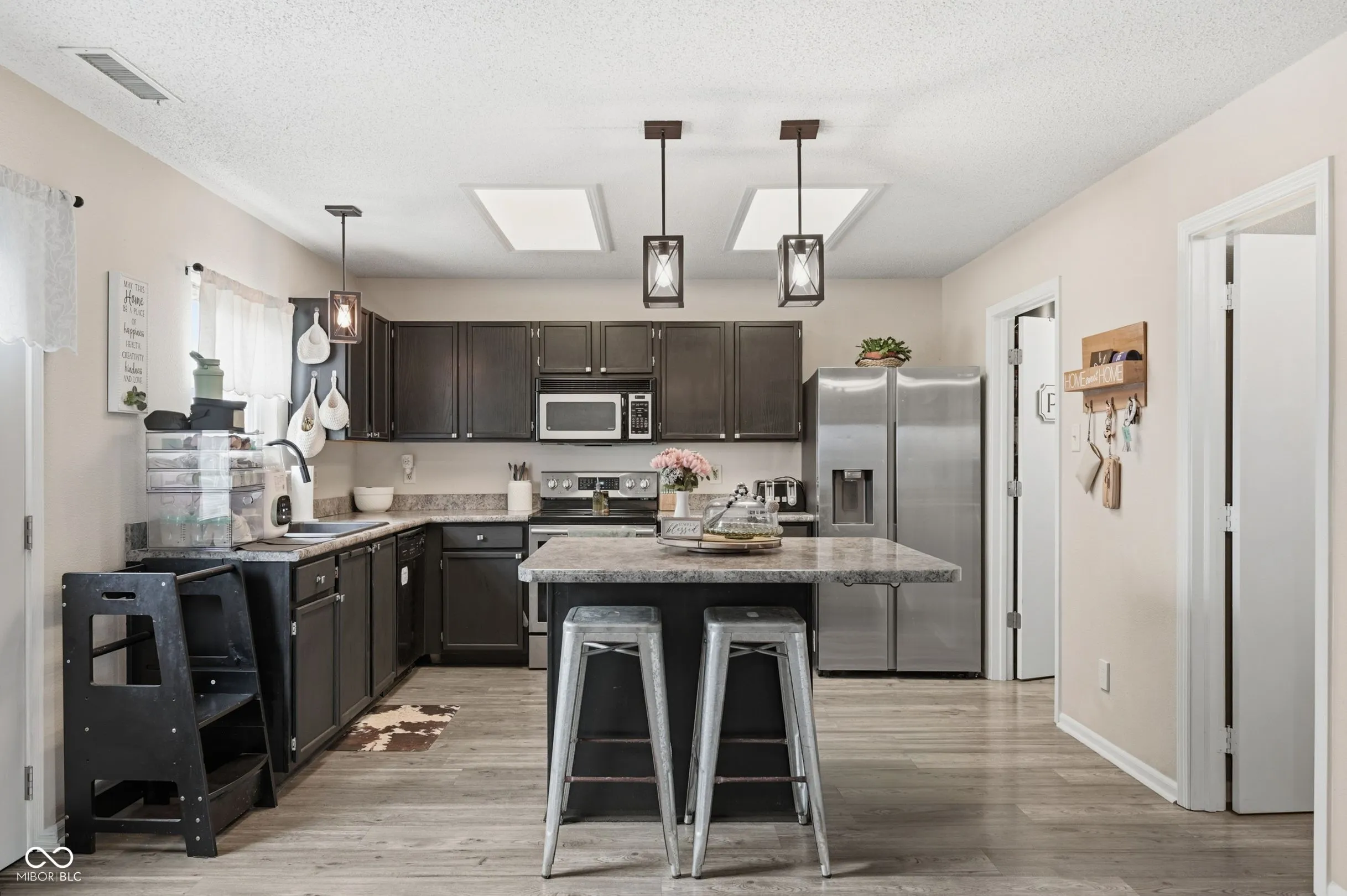 An attractive property in great condition awaits at 345 Sunburst LN, GREENWOOD, IN, USA, offering a distinctive single-family residence experience. The heart of this residence, the kitchen, is thoughtfully designed with shaker cabinets and a stylish backsplash, creating an inviting atmosphere for culinary pursuits. A large kitchen island provides ample space for preparing meals or enjoying casual conversations, complemented by a convenient kitchen bar. Natural light streams into this space from a skylight, enhancing its bright and airy feel throughout the day. Among the two full bathrooms, one features a walk in shower, offering a refreshing and accessible bathing experience designed for comfort. This expansive single-family residence encompasses 2035 square feet of living area across two stories, providing generous accommodation with three bedrooms, two full bathrooms, and an additional half bathroom. The open floor plan cultivates an airy and unconfined living environment, perfect for daily routines and entertaining. Outside, the property sits on a substantial 7187 square feet lot, featuring a fenced backyard that provides a private outdoor retreat within a desirable residential area. Inside, the inclusion of a dedicated laundry room adds to the practical ease of daily living. This residence offers a harmonious blend of thoughtful design, spacious interiors, and practical amenities, ready to enrich a discerning homeowner’s lifestyle.