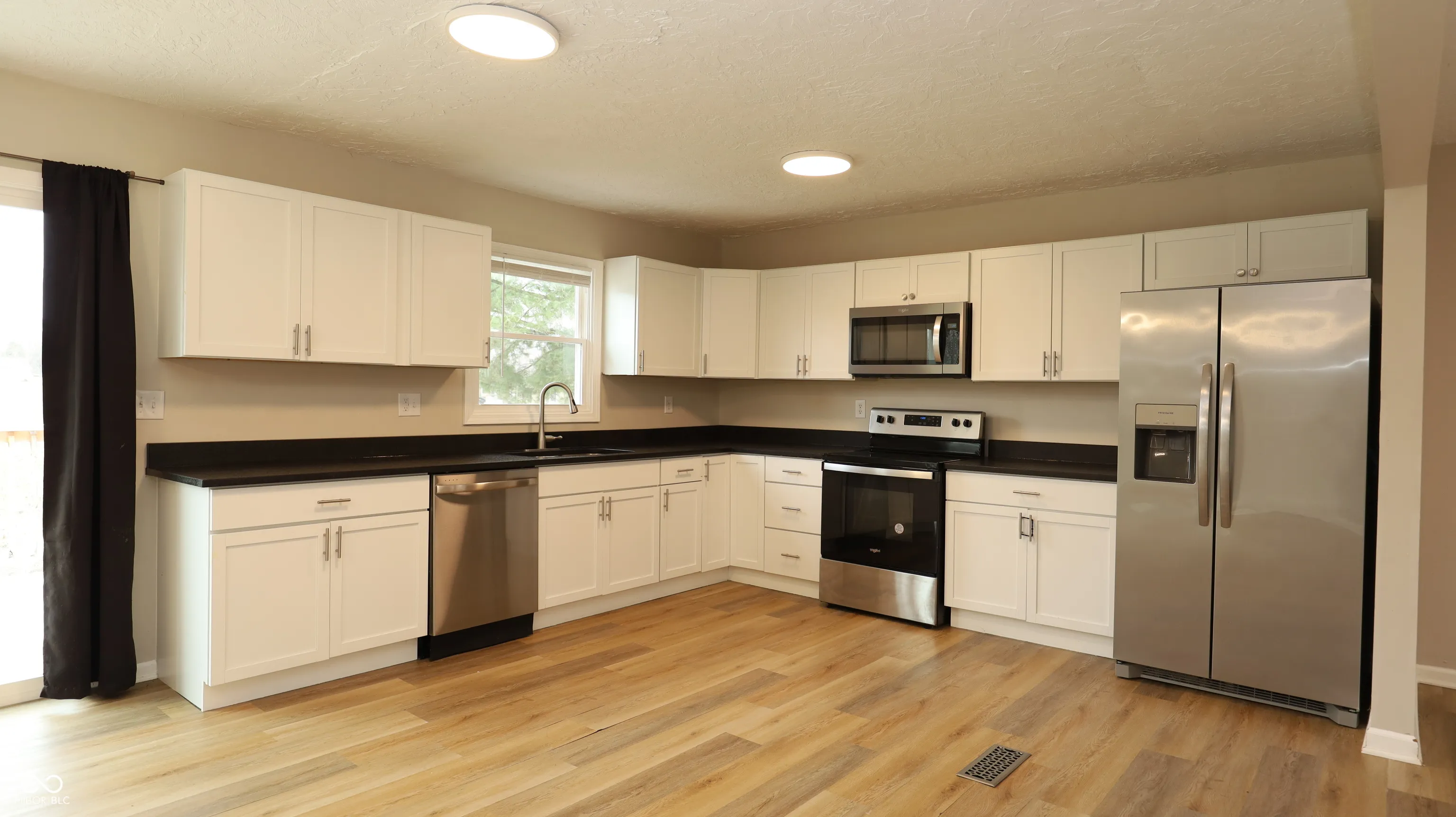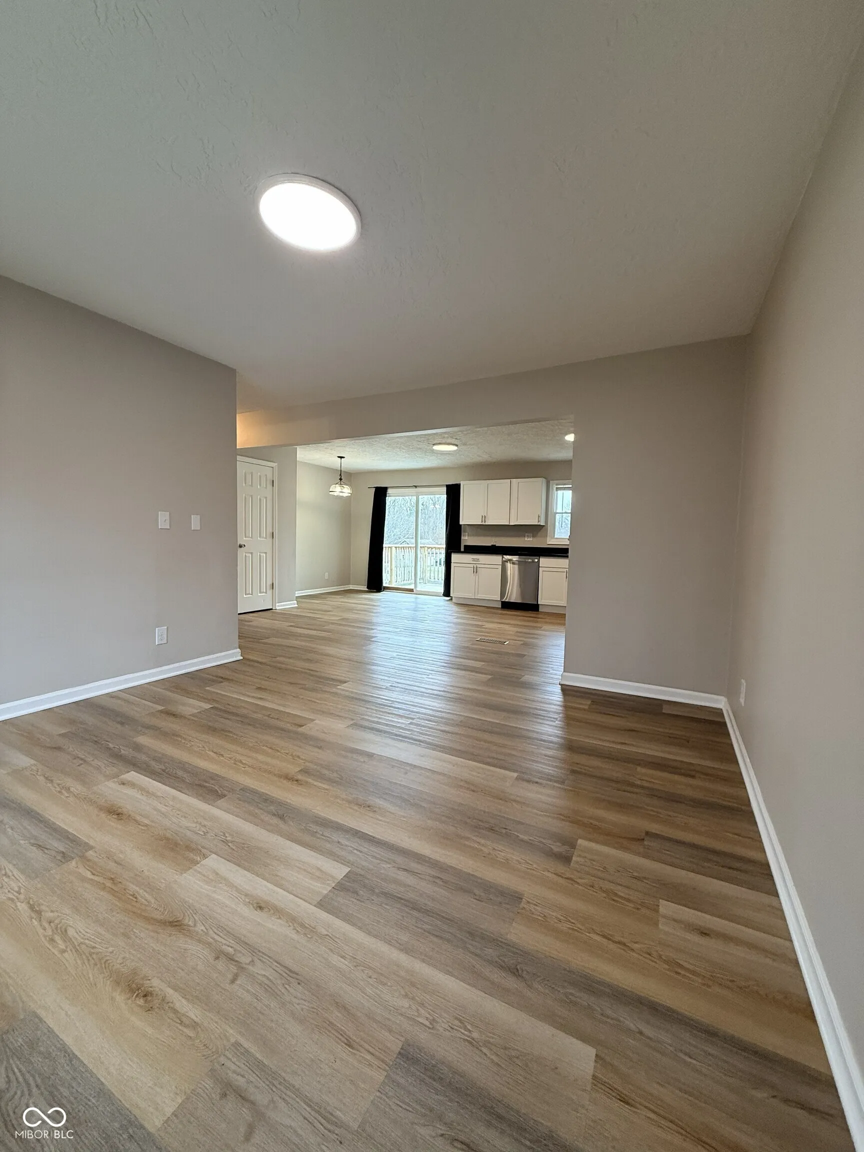This updated home in Elwood sits on a spacious lot that offers the peaceful tranquility of living just outside the city. The interior features laminate flooring throughout the main living areas and the property is move-in ready. The floor plan offers a great functional flow with a bright living room that leads into a kitchen and dining area built for daily life. Just off the kitchen, a private back deck provides a great spot for outdoor dining or entertaining. The bedroom arrangement is ideal for those looking for separation of space with the primary bedroom and two additional bedrooms located on the upper level while a fourth bedroom is situated on the lower level. This lower level also features a large second living area or family room, making it a perfect setup for a home office, guest space, or a playroom. Outside, the manageable corner lot offers plenty of room for outdoor activities and includes an attached two-car garage for parking and extra storage. Located in the Elwood Community School district with no HOA restrictions, this home provides the freedom to enjoy your property in a quiet, rural setting. It is a solid, well-maintained house that provides the square footage and updates needed to move in and start living immediately.