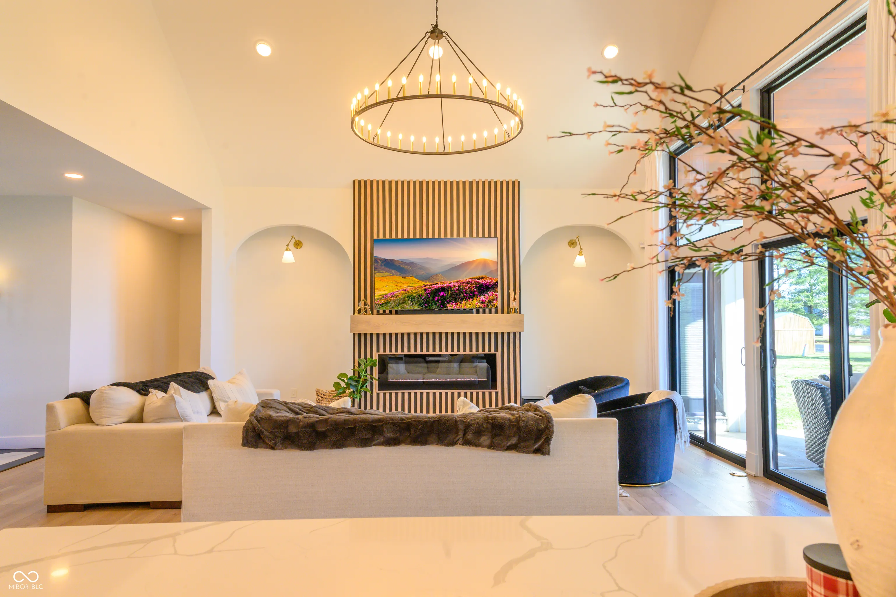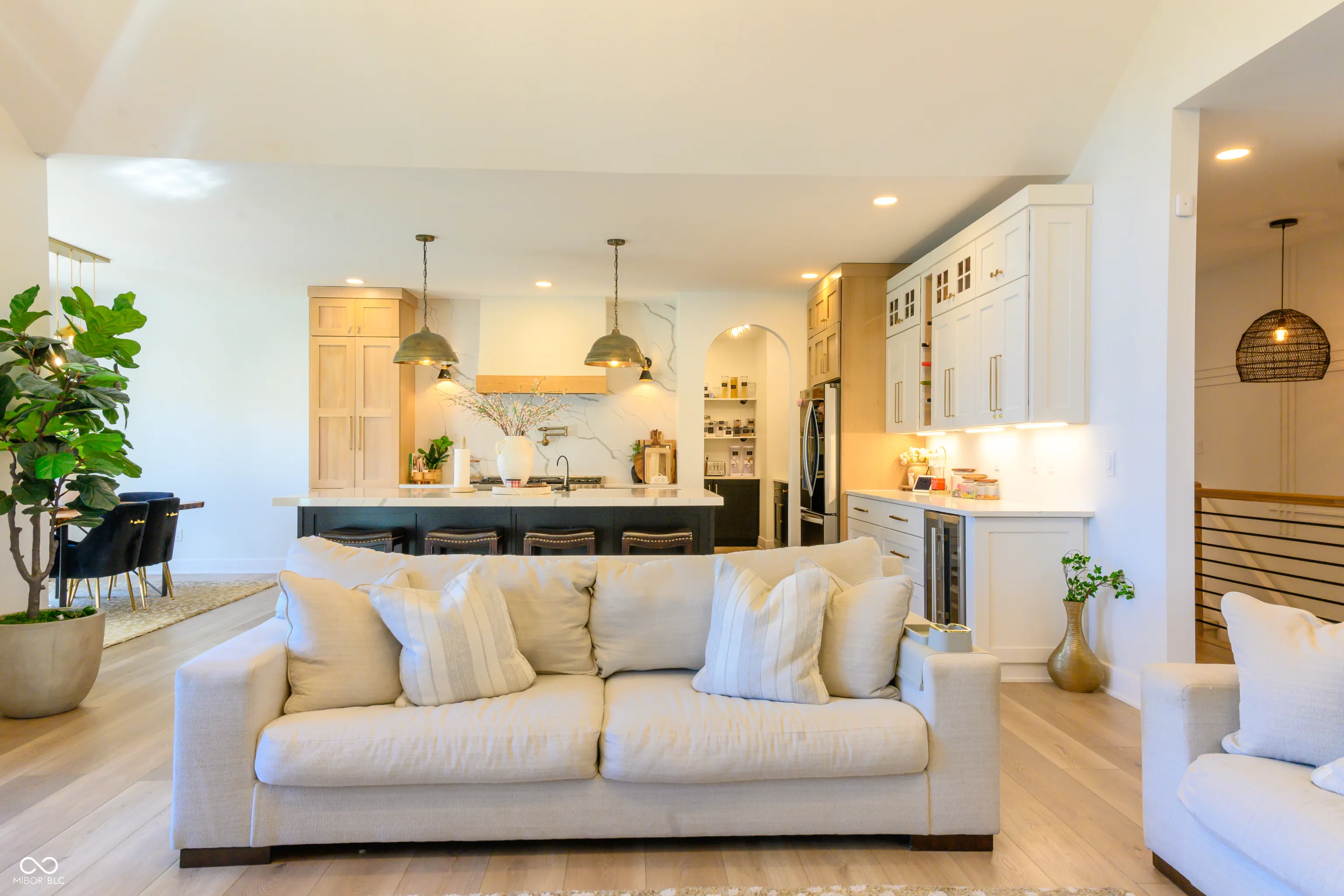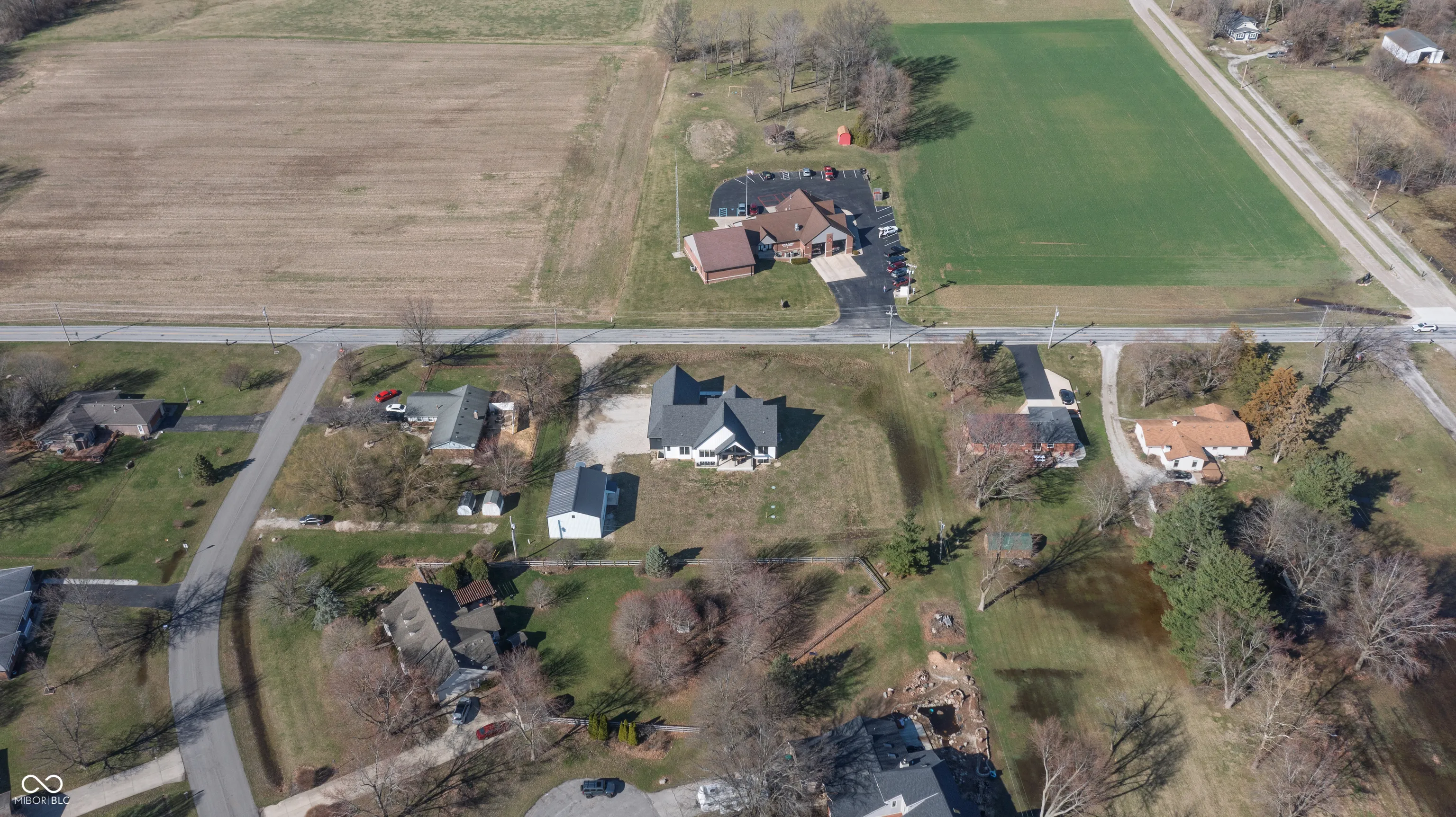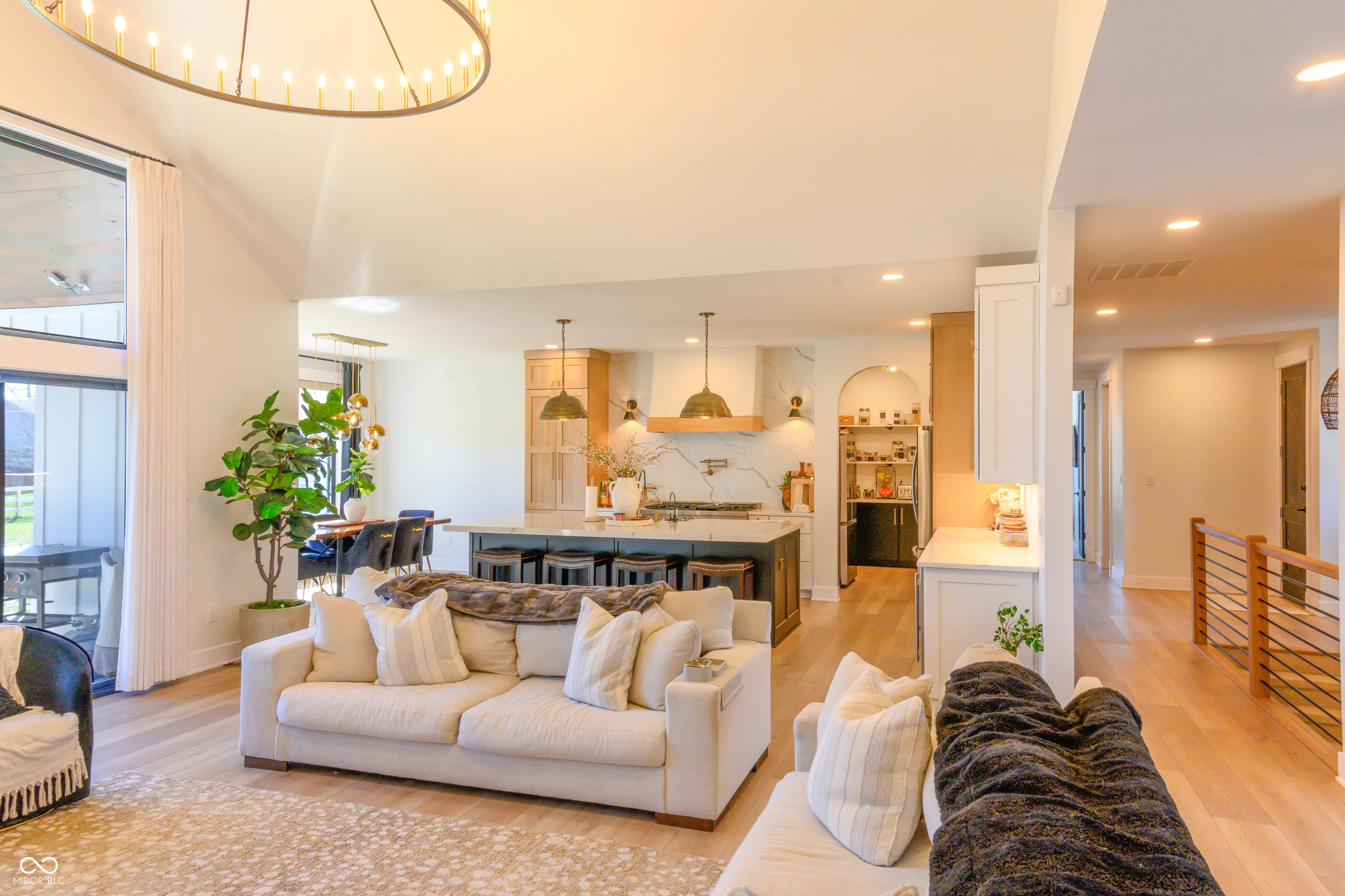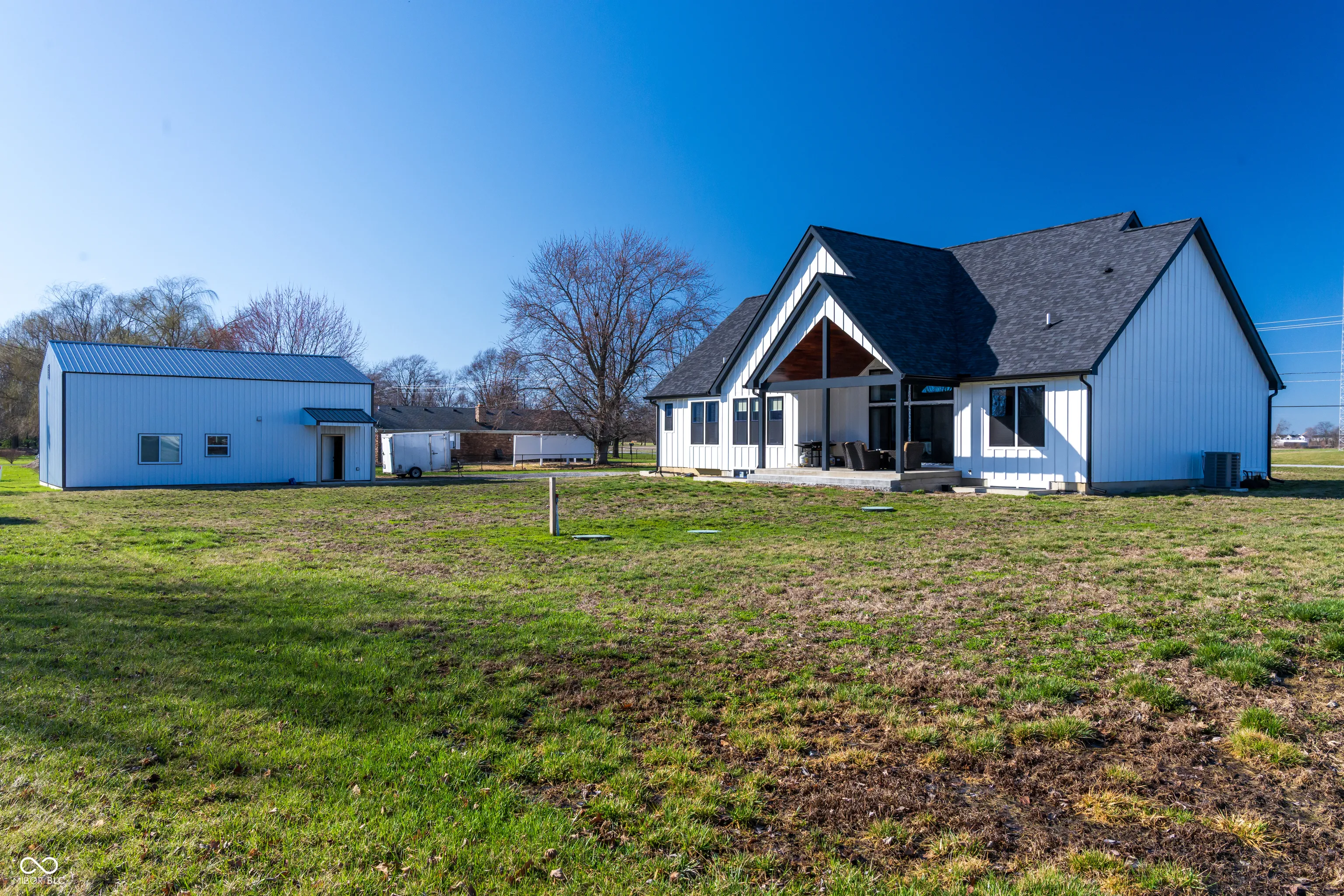 Why build when this 2022-built, move-in-ready ranch checks every box? Set on over 1.12 acres with no HOA, this 5-bedroom, 3.5-bath home offers 3,303 finished square feet and 5,082 total – combining designer finishes with the space and freedom of country living. The open-concept layout showcases a vaulted Great Room with modern electric fireplace flowing into a chef’s kitchen outfitted with a professional gas range with pot filler, quartz countertops, large island/bar, coffee bar/pantry, wine cooler, custom cabinetry, and brushed gold accents – all appliances included. The primary suite offers a tray ceiling, and luxe bath with double vanity, walk-in shower, and soaking tub. Additional highlights include an attached 3-car garage with dog wash station, covered porch, and covered patio perfect for entertaining. The full basement – one-third finished and already plumbed for a bar/kitchen and bath – is loaded with potential. And the pole barn with studio apartment is a rare bonus, versatile enough for a home business, guests, hobbies, or equipment storage. Exceptional! Don’t miss this one!