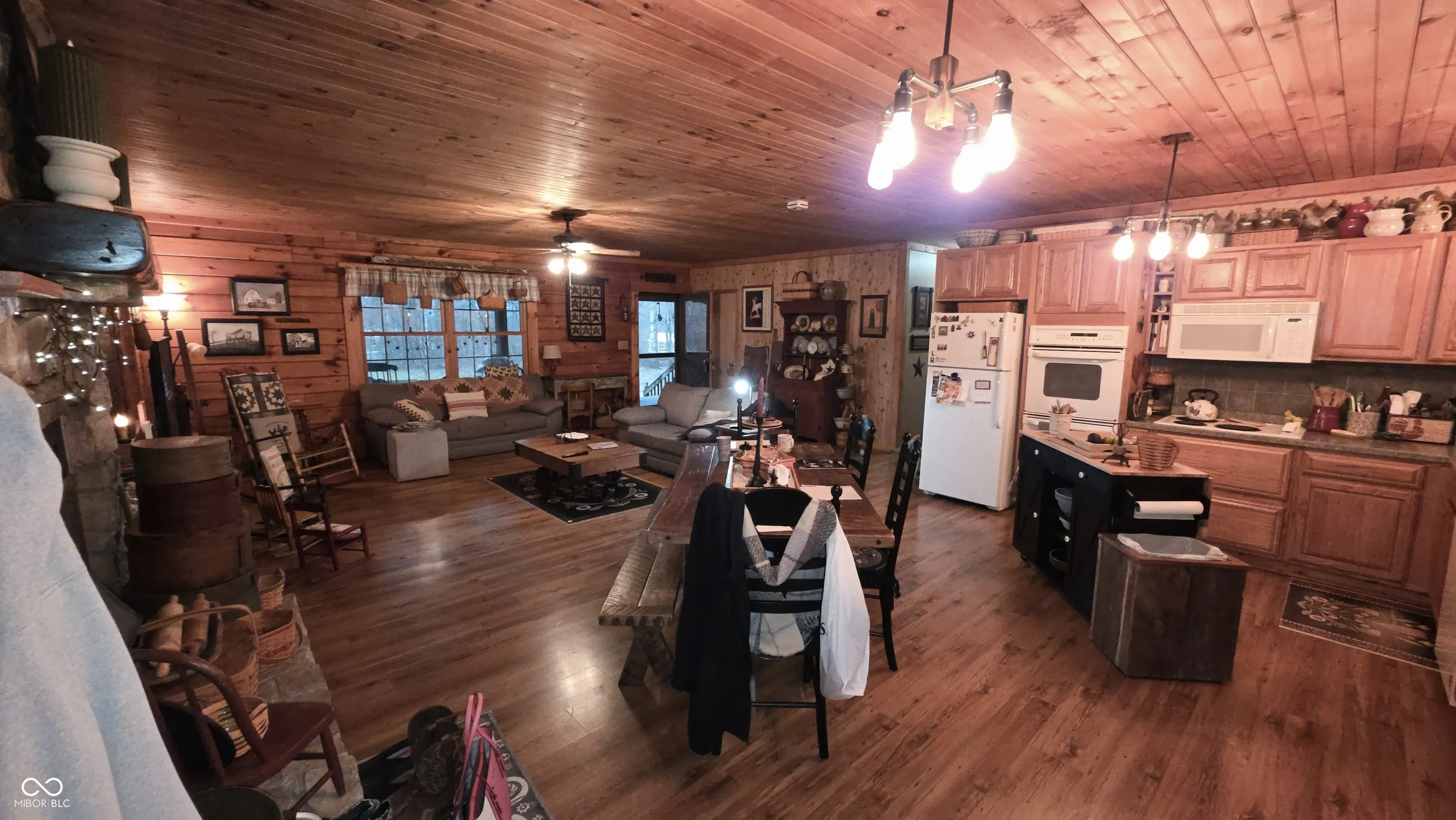 Welcome to 964 West Rabbit Run in Martinsville – your own private park-like retreat nestled on 5 beautiful wooded acres. This charming 3-bedroom, 2-bath log cabin offers approximately 1,800 square feet of warm and inviting living space surrounded by nature. The spacious great room features a stunning stone fireplace, creating the perfect gathering space. The updated kitchen includes modern appliances and flows seamlessly into the main living area, while hardwood floors add rustic character throughout the home. Enjoy peaceful outdoor living from the full-length covered front porch overlooking the picturesque property, plus additional side and rear decks that provide serene wooded views in every direction. Recent updates include the HVAC system and kitchen appliances, offering comfort and peace of mind. During cooler months, cozy up by the fireplace with a warm drink and enjoy the tranquil setting. The property also features a large gravel driveway with ample parking, a detached two-car garage, and a storage shed – ideal for hobbies, equipment, or additional storage. If you’ve been searching for privacy, natural beauty, and the charm of log cabin living, this exceptional property delivers a rare opportunity to own your own slice of peaceful country living while still being convenient to town amenities.