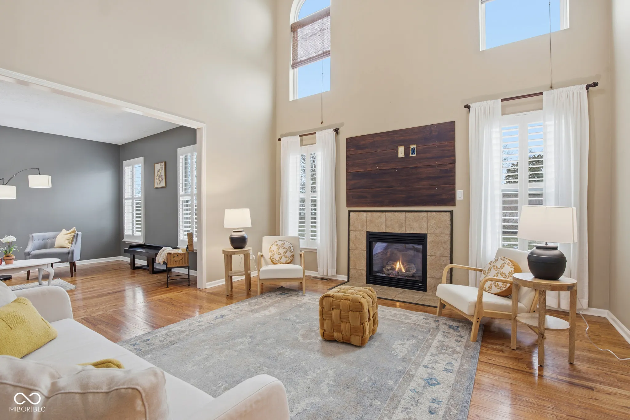 Welcome to this beautifully maintained home in The Ridge at Hayden Run in The Carmel Clay Schools District, featuring a dramatic two-story great room, hardwood floors throughout the main level, a dedicated home office, eat-in kitchen with gas stove, and a finished basement with multiple flexible living spaces designed for comfortable living and entertaining. The main level also includes a formal dining room and an inviting layout that flows naturally into the spacious great room. Upstairs, a charming balcony stairwell leads to the bedroom level with freshly updated carpeting throughout. The finished basement expands the home with a game room, living room, and additional sitting area, separated by partition doors for flexible use. This level also features an egress window, half bath, custom murals, a fun nook tucked beneath the stairs, and features stylish stained concrete floors- offering a modern look with exceptional durability. Recent updates include a new water heater, one-and-a-half-year-old HVAC system, and newly installed sump pump system, along with an updated hall bath and cosmetic enhancements throughout. Outdoor living includes a covered front porch and rear patio, and the home backs to a small rural homestead offering a touch of countryside character along the edge of the neighborhood. Residents of Ridges at Hayden Run enjoy community amenities including a pool and a fantastic Carmel location AND Carmel Clay Schools.