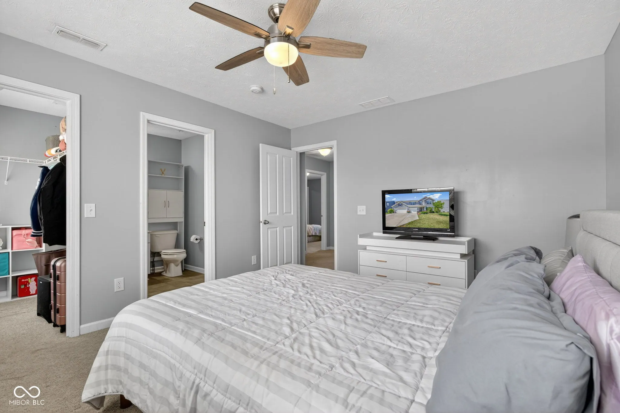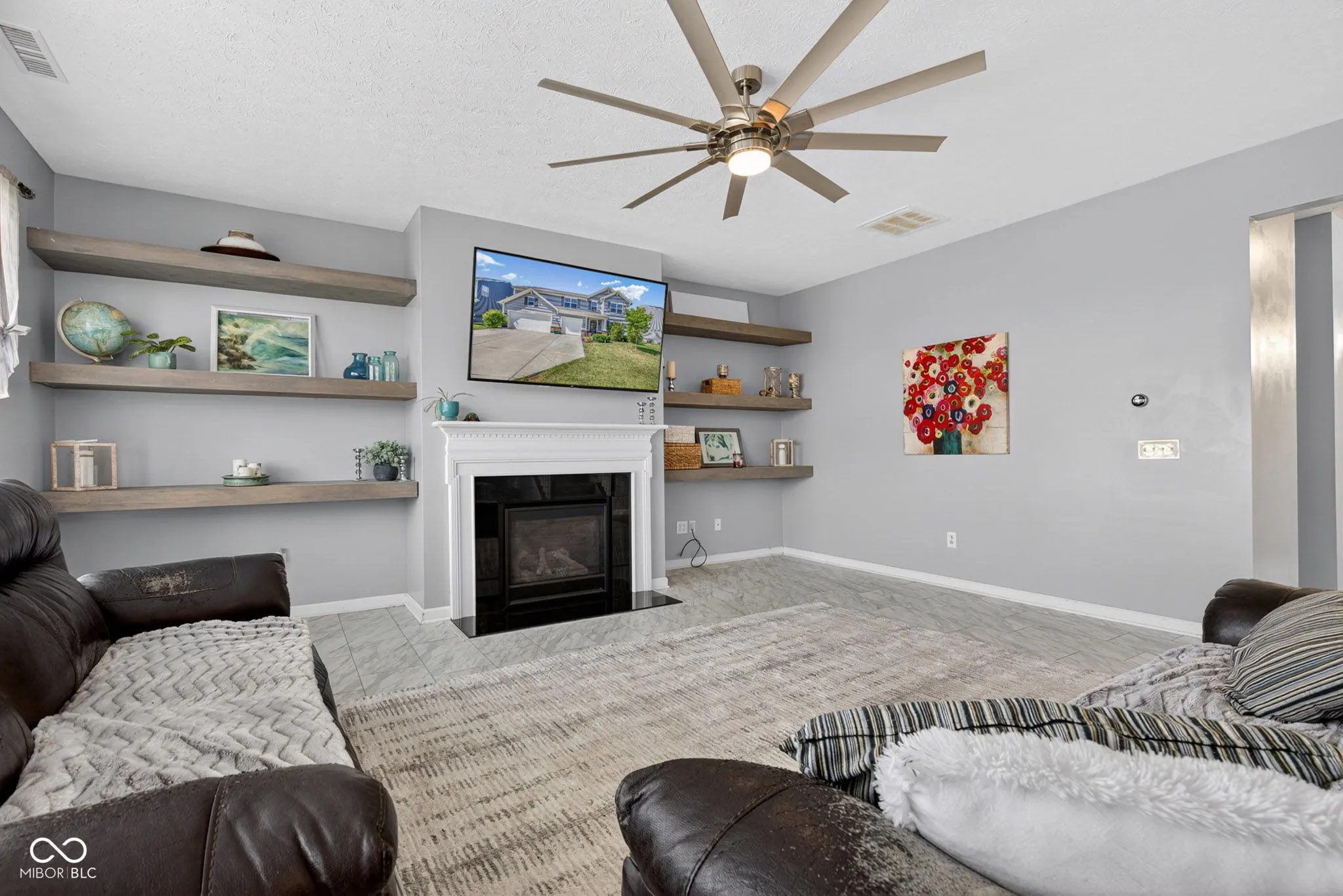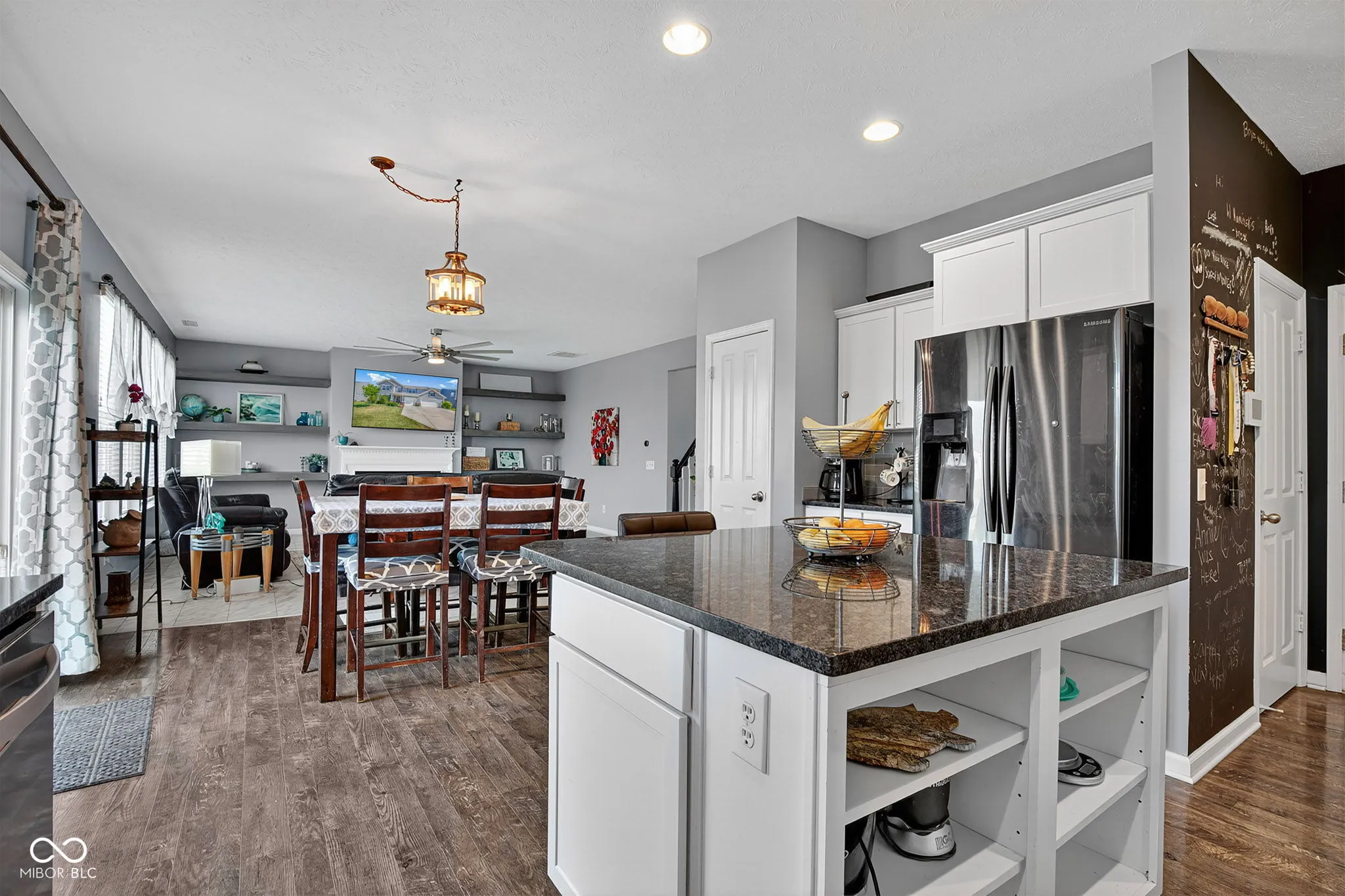 Welcome to this spacious and beautifully designed 5-bedroom, 3.5-bath 3 car garage home located on a scenic waterfront lot in sought-after Franklin Township. Brand new carpet 2026. Fresh paint throughout 2025. The impressive great room delivers open concept living at its best. Living room complete with gas fireplace and built in shelves flows into a gourmet kitchen featuring stainless steel appliances with double ovens, two pantries perfect for a family living, a center island breakfast bar that any host would want when entertaining. Dedicated office space downstairs. Upstairs, you’ll find four generously sized bedrooms, each with its own walk-in closet, plus a versatile oversized loft for extra living space upstairs away from guests and a laundry room on the 2nd level for added convenience. The primary suite offers a serene retreat with a tiled walk-in shower and double vanity, tray ceilings with a ceiling fan. A main-level fifth bedroom is on the first floor perfect for guests or a a playroom that would keep kids toys out of the living room.. Step outside to fully fenced backyard enclosing a concrete patio with a charming gazebo-perfect for relaxing or entertaining. Additional highlights include mature landscaping, and quick access to local schools, shopping, and major interstates including I-74, I-465, and I-65. Just minutes from charming downtown Wanamaker where the favored Milk and Honey coffee shop is located. Don’t feel like cooking – no problem order take out from Baan Thai Bistro or pizza from The Ordinary! Perfect location for any family.