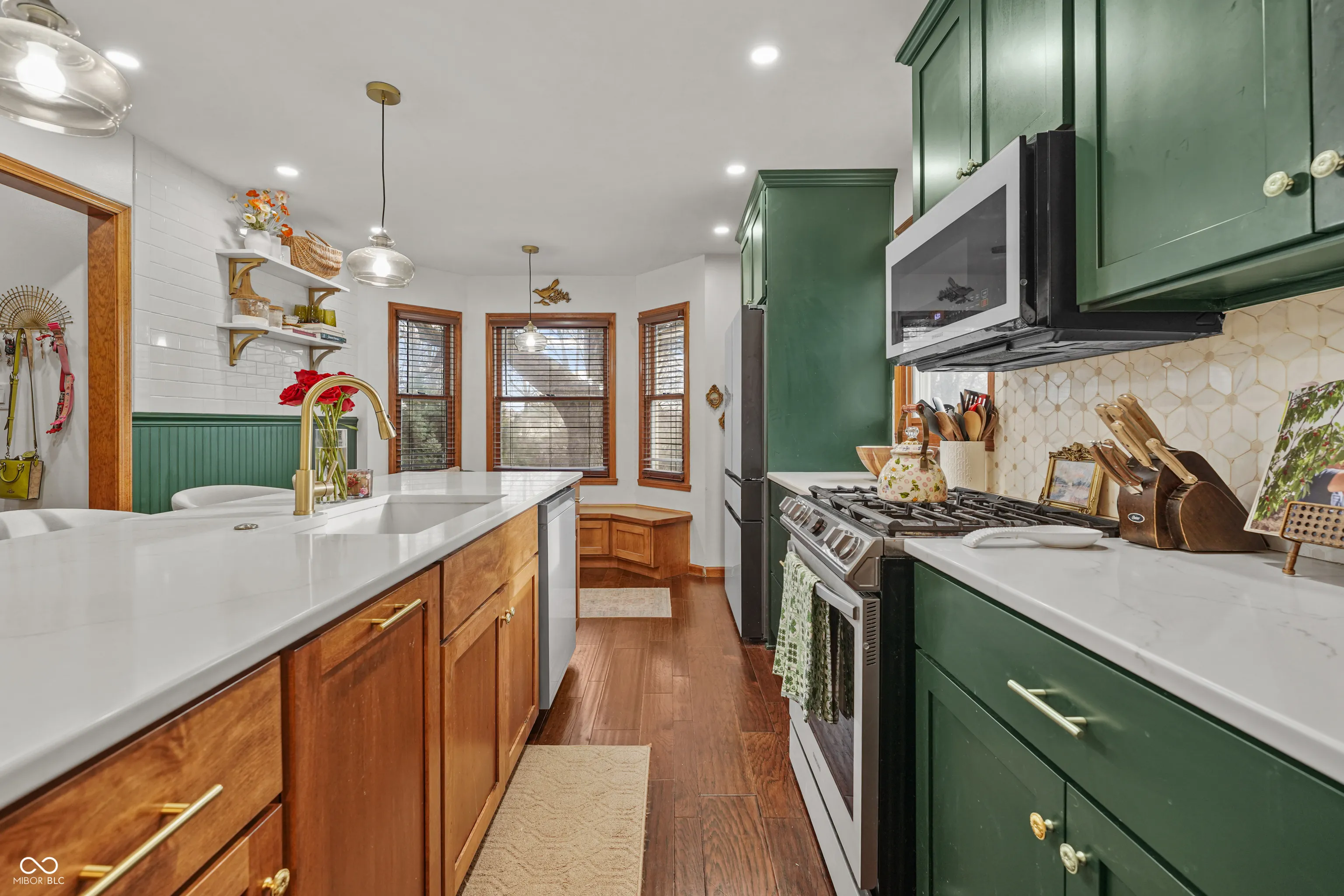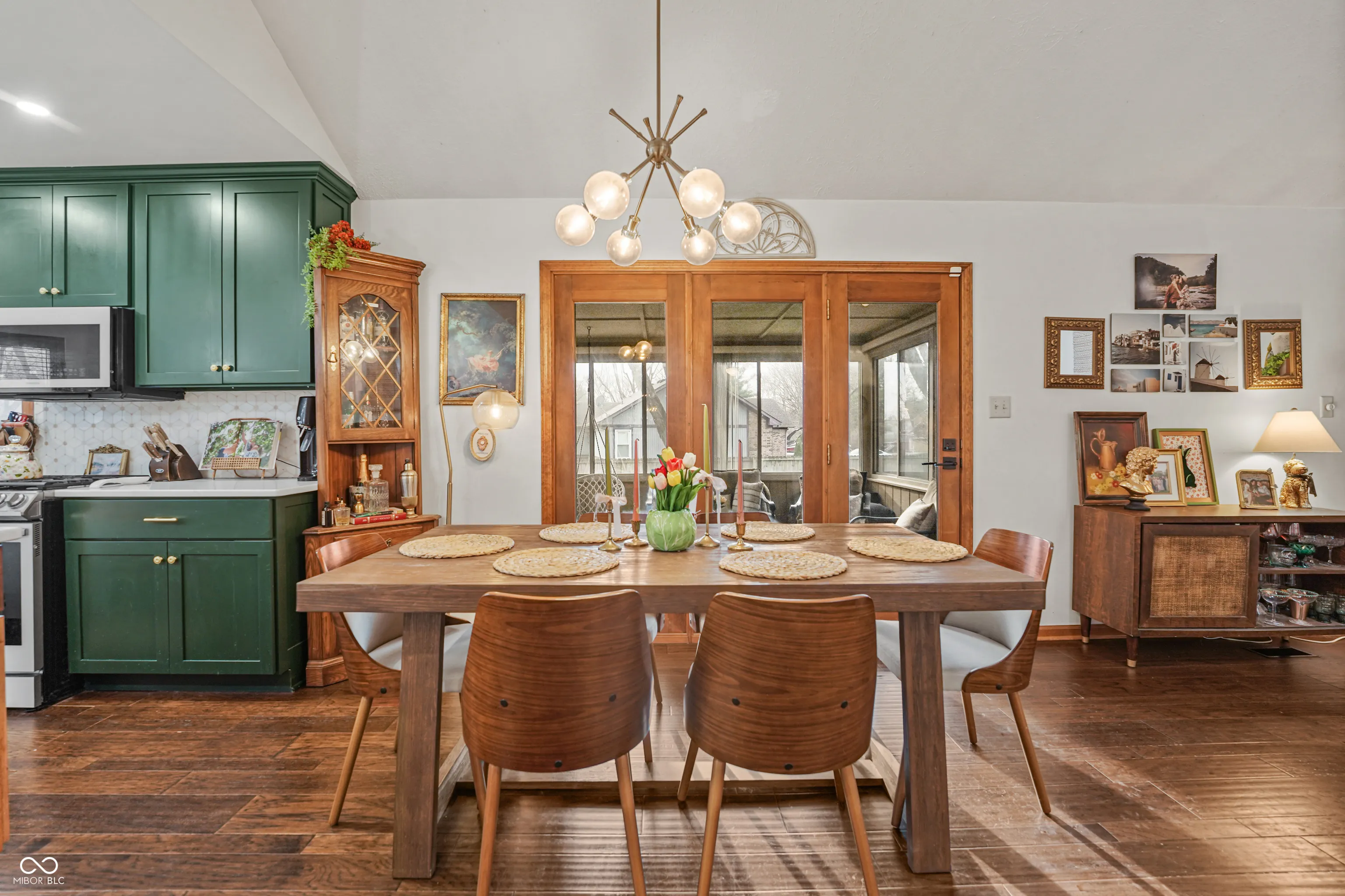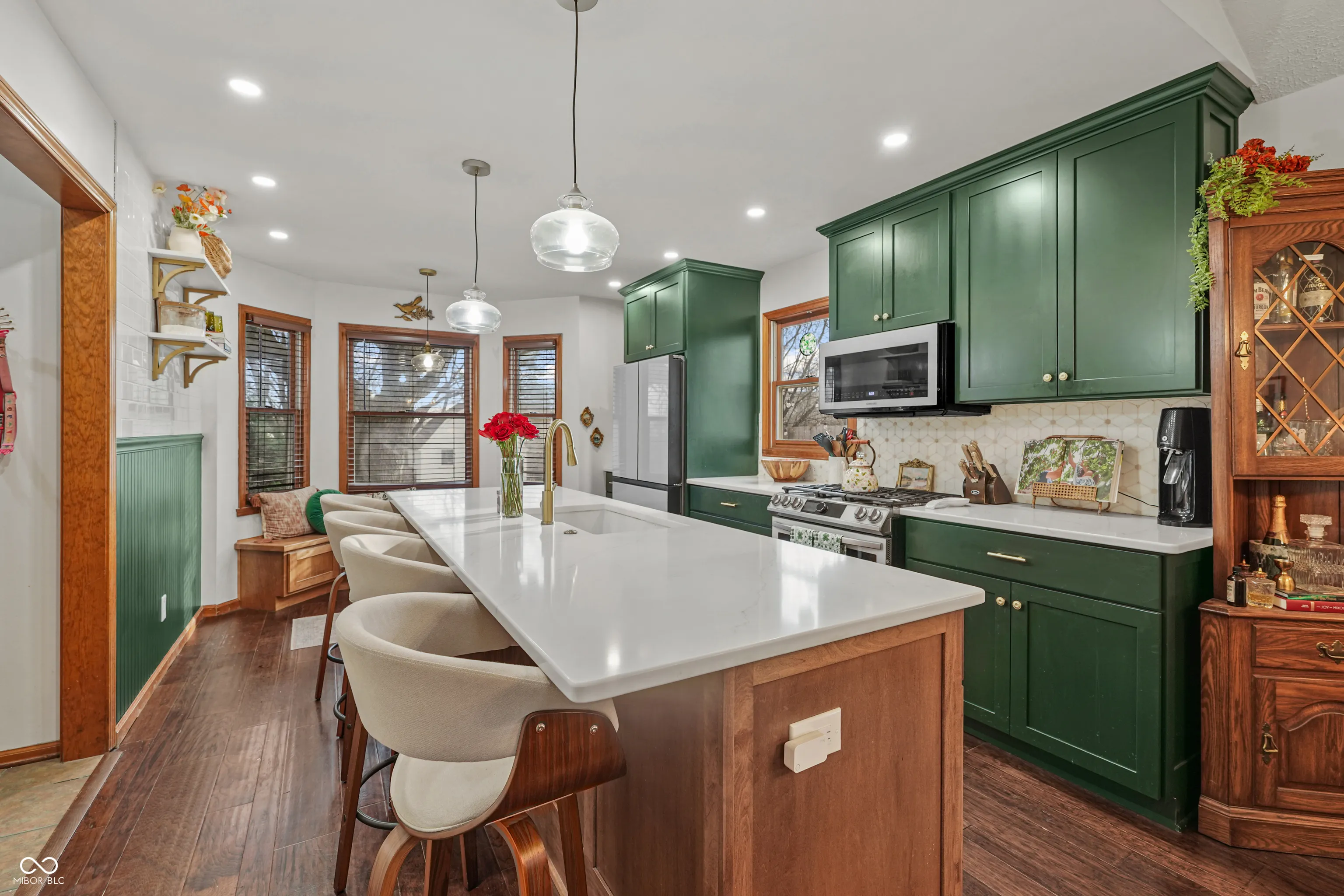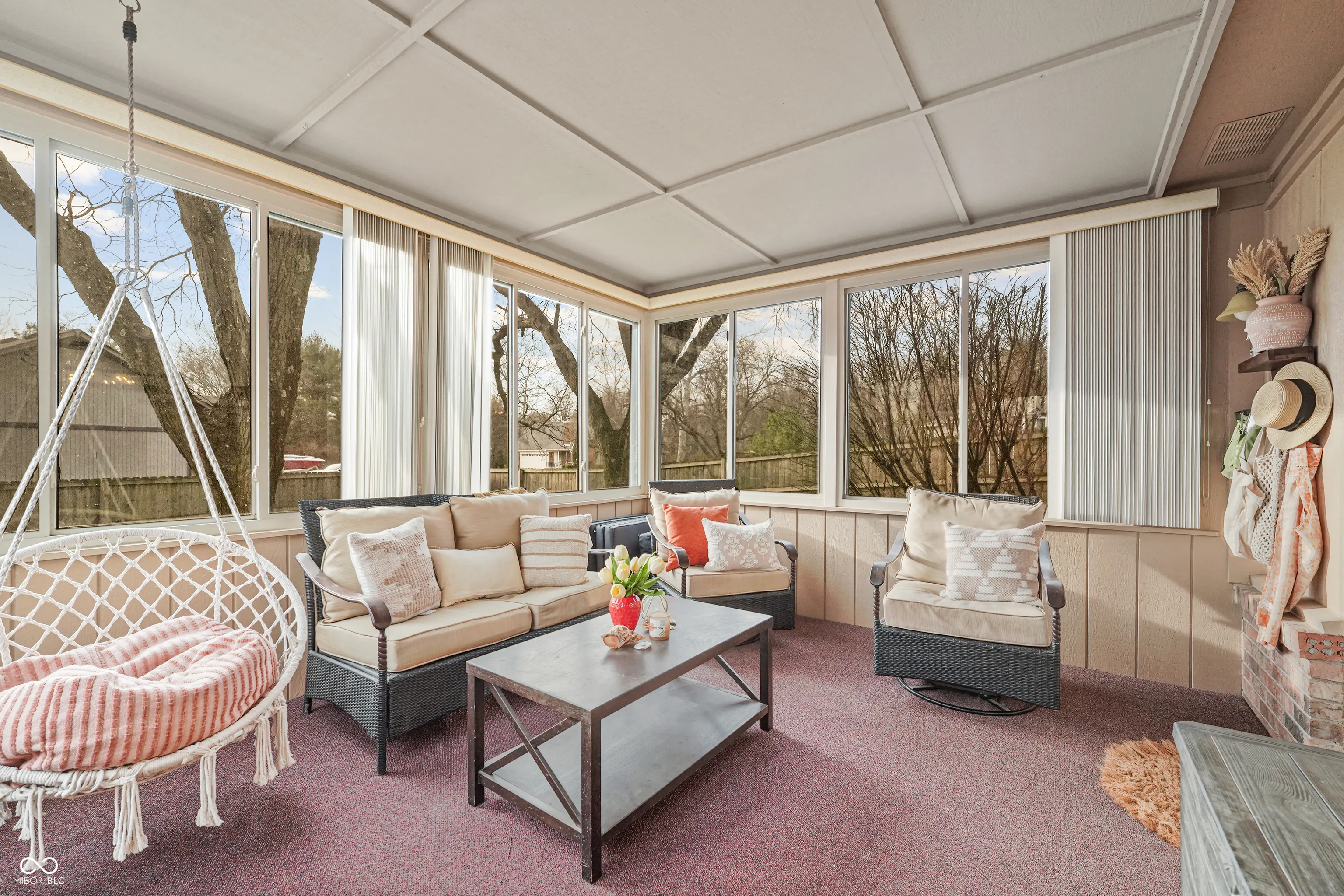 Welcome to a beautifully maintained single family home located within the highly sought after Center Grove Community School district. This 3 bedroom, 2 bathroom home offers 1,674 square feet of thoughtfully designed living space with an open concept layout ideal for both everyday living and entertaining. The kitchen serves as the heart of the home featuring stone countertops, shaker style cabinetry, a custom backsplash, and a large center island perfect for cooking, gathering, and casual dining. Natural light pours in from skylights while a warm wood accent wall adds character and charm. The spacious living room features vaulted ceilings with exposed wood beams and a cozy fireplace that creates an inviting atmosphere. Skylights enhance the open feel and bring in additional natural light throughout the main living areas. The primary suite includes a walk-in closet and an updated bathroom with a beautifully tiled walk-in shower designed for comfort and relaxation. Each additional bedroom also includes walk-in closets providing excellent storage. A dedicated laundry room adds convenience to the functional layout. Situated on a large .62 acre lot, the outdoor spaces provide multiple areas for relaxation and entertaining including a sunroom, spacious deck, patio, and outdoor dining area. The fenced backyard features a fire pit and a hot tub installed in 2025, creating the perfect setting for outdoor gatherings. Recent improvements totaling over $45,000 include wood flooring, new carpet, primary bathroom updates, exterior home paint, driveway replacement, kitchen renovation, and a new hot tub installed in 2025. This Greenwood location offers convenient access to major employers, shopping, and healthcare including Franciscan Health Indianapolis, Community Hospital South, and IU Health Methodist Hospital. Easy access to Interstate 65 and State Road 135 makes commuting to downtown Indianapolis, & Greenwood Park Mall