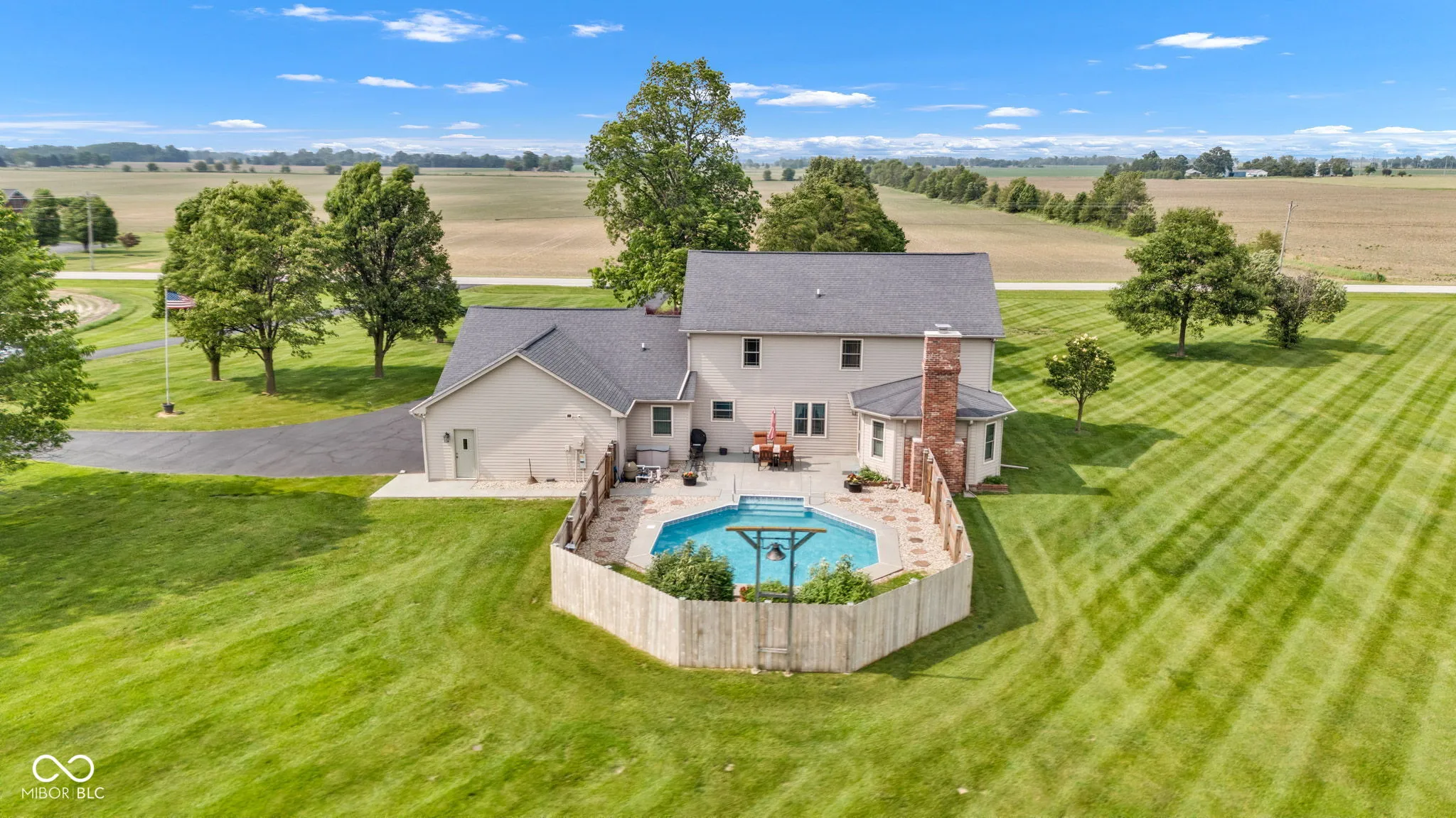 Welcome to this beautiful country retreat, perfectly situated on over 7 acres of peaceful countryside. This meticulously maintained two-story home offers the ideal blend of comfort, space, and privacy-and features great bones, providing a wonderful opportunity for the next owner to make it their own. The spacious kitchen features a center island, making it perfect for entertaining and gathering with family and friends. The inviting family room with a cozy fireplace opens to the backyard, where you’ll find a stunning in-ground pool surrounded by nature, creating the perfect setting for relaxing summer days. With multiple living areas throughout the home, there is plenty of space to spread out, entertain, or simply unwind. Upstairs, you’ll find generously sized bedrooms that offer both comfort and flexibility for family or guests. This home has seen several notable updates and improvements, including geothermal heating and cooling installed in 2010, Renewal by Andersen windows installed in 2010, 2012, and 2014, Rhino Shield exterior paint, and a new roof on both the home and barn in 2017. Additional features include 300 amp electrical service to the home and 100 amp service to the barn, newer attic insulation, a sump pump with dehumidifier, and fresh interior paint. The barn provides endless possibilities for hobbies, storage, or future projects, while the expansive property offers plenty of room to roam and enjoy country living. Conveniently located with easy access to the new Lilly campus, Indianapolis, and Lafayette, this property offers the tranquility of the countryside with excellent accessibility. This exceptional property is ready for its next owner to add their personal touch and make it their own.