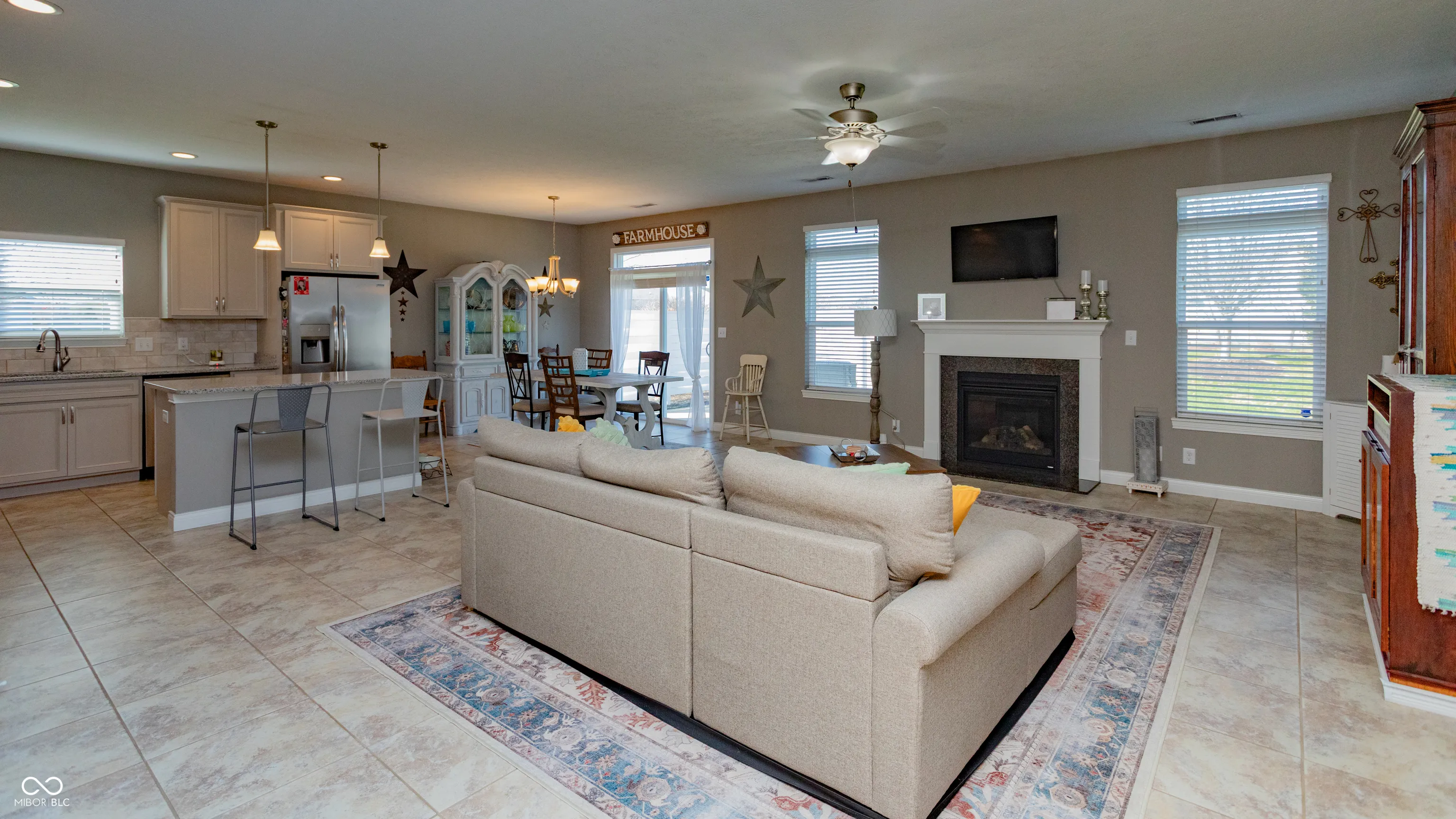 Low-maintenance 3-bedroom home for sale in Hartwood Village, West side community. This split floorplan home features 9-foot ceilings, tile flooring, and a gas log fireplace. The contemporary kitchen includes custom cabinets with crown molding, solid surface countertops, under-cabinet lighting, stainless steel appliances, pantry, and large island with seating. The owner’s suite offers a tray ceiling, walk-in California closet, dual-sink vanity, and walk-in tile shower. Additional perks include spacious laundry with folding table, mudroom, private patio, full yard irrigation, Nest thermostat, water softener, and security system. HOA handles all lawn care and green space maintenance. Conveniently located near I-65 and US-52, perfect for West Lafayette homebuyers seeking style, comfort, and convenience.