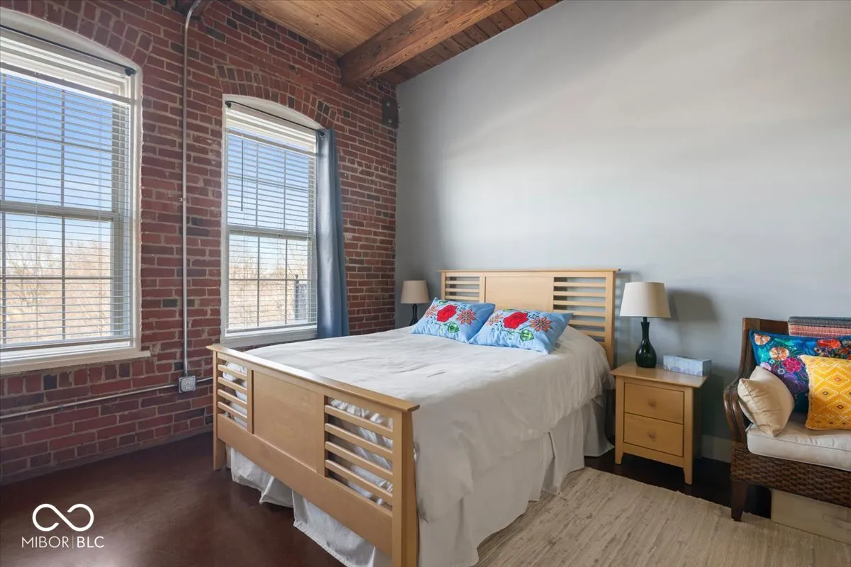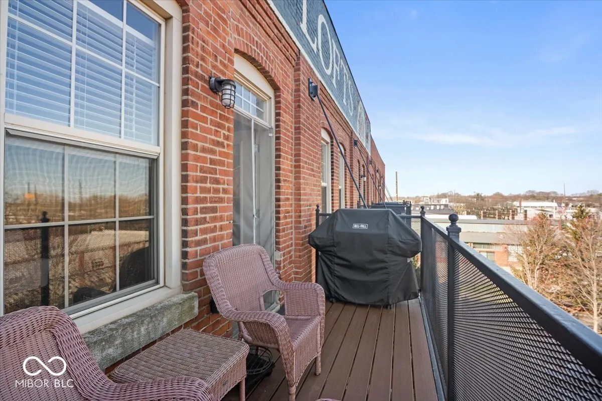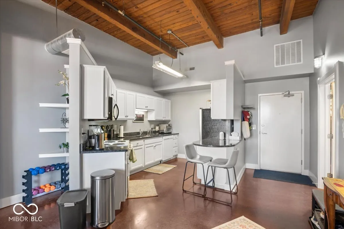 Exceptional opportunity to own an updated loft condominium at historic H. Lauter Lofts, ideally located just about one mile from downtown Indianapolis and moments from the Indianapolis Cultural Trail, Monument Circle, Lucas Oil Stadium, White River State Park, IU Indianapolis, the Indianapolis Zoo, dining, nightlife, and entertainment. This industrial-style condo blends authentic character with modern comfort, featuring soaring 12-foot ceilings, exposed brick walls, original wood beams, polished concrete floors, and open-concept living filled with natural light. The updated kitchen offers stainless steel appliances, solid surface countertops, generous cabinetry, and peninsula seating overlooking the spacious great room, creating great flow for everyday living and entertaining. The bedroom continues the loft aesthetic with warm architectural character, while in-unit laundry, a modern bath, and private balcony add convenience and comfort. Residents enjoy secure fob-controlled access, elevator service, reserved parking, gated entry, low-maintenance HOA living, and a fenced dog park in this pet-friendly community. Ideal for owner-occupants, professionals, downsizers, or investors seeking a lock-and-leave urban lifestyle, this rare offering combines historic architecture, modern updates, and walkable access to some of Indianapolis’ most sought-after destinations.