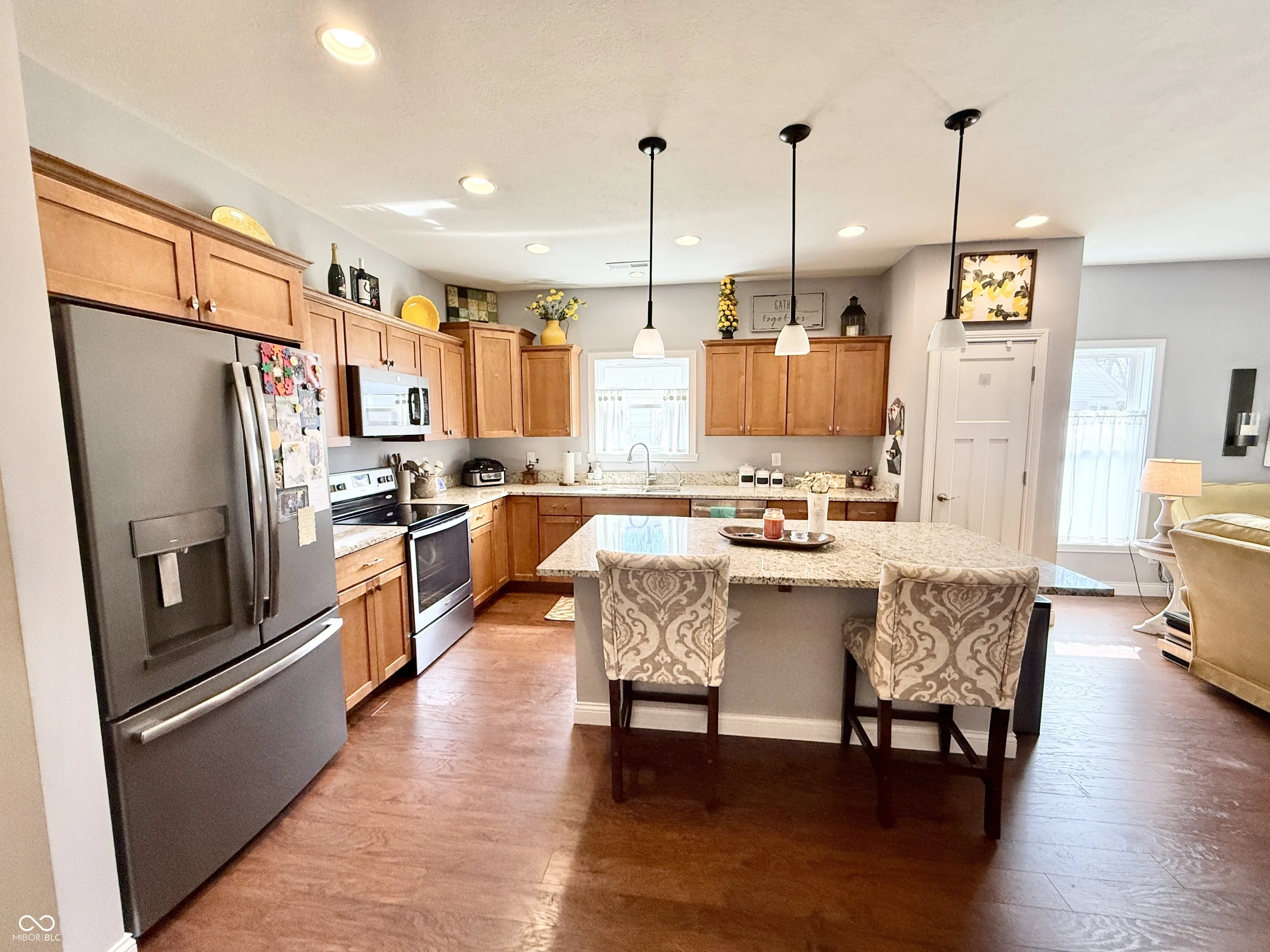 Lovely “like new” and move-in ready Center Grove condo available within the highly sought after Shepherds Grove community. BEST lot location in the neighborhood, backing up to gorgeous wooded area w/ privacy fence, which can be enjoyed year round from the covered back porch. Listed as a 2-bedroom unit, BUT there is a wonderful option for a large 3rd bedroom/den/craft room that simply does not have an egress window. Two full baths, dedicated laundry room (washer/dryer stay), gorgeous updated kitchen, separate dining room, and a wide-open 1,735sqft layout with high ceilings that offer a luxurious feel throughout. Generously sized primary bedroom located at back of home offering view of woods, ensuite with double sink vanity, and large W/I closet. Two-car attached garage! The easy, maintenance-free lifestyle you get as a member of the Shepherds Grove community is just the cherry on top of this delicious sundae. Dig in!