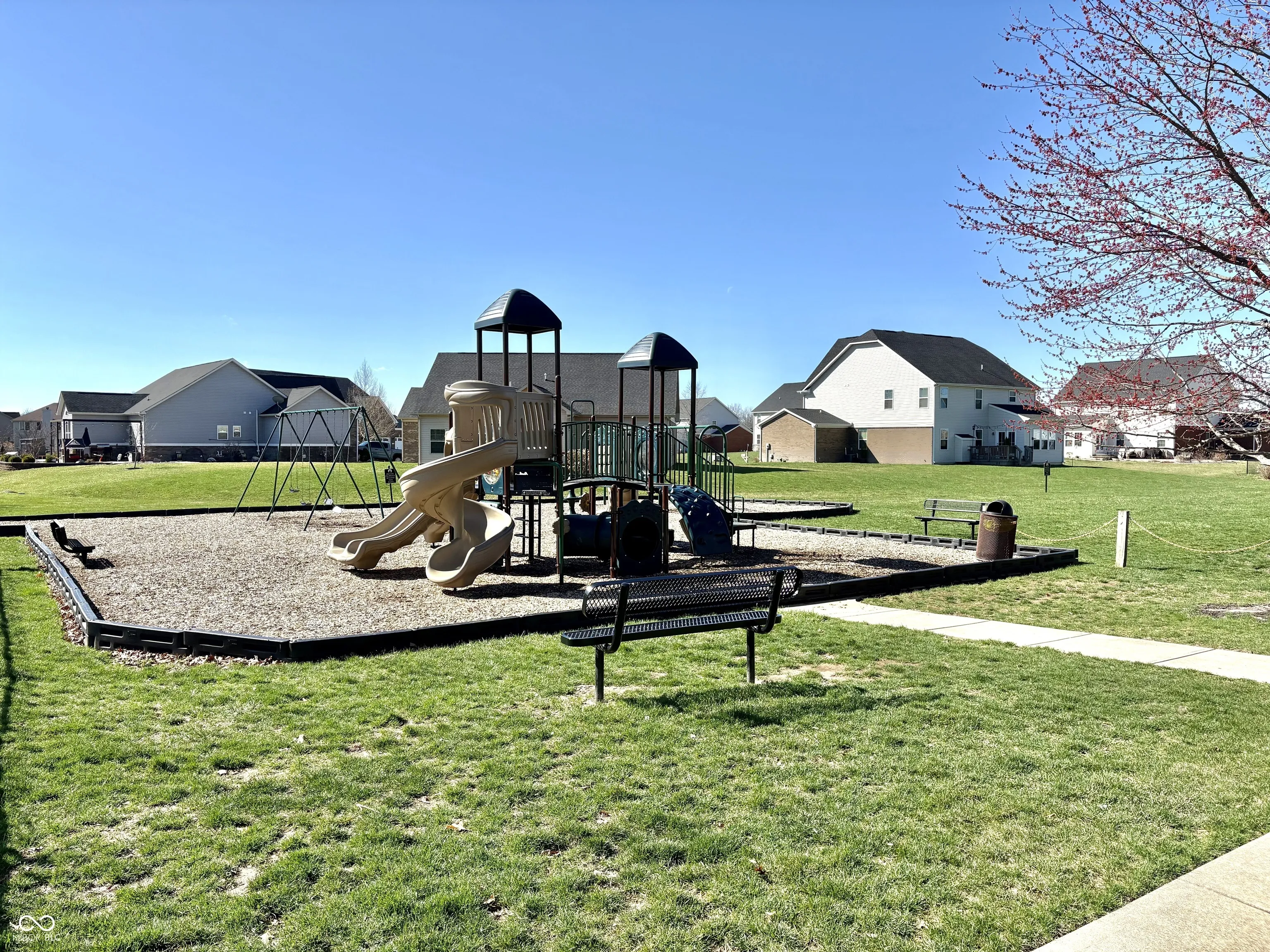 Nestled in the Center Grove School district, this 5 bedroom home is ready for a family to make it their own. This Trails at Woodfield property is conveniently located minutes from parks, walking trails, shopping, restaurants and neighborhood pool. Home is full of features you’ll love like a welcoming covered front porch, 9ft 1st floor ceilings, 1st floor guest suite and a formal dining room. Kitchen is fantastic with stainless steel appliances, upgraded maple cabinetry with 42 inch uppers, granite island and countertops complimented with tile backsplash and pantry for storage. Enormous primary suite with large private bath having double bowl vanity, soaking tub, separate shower, water closet and walk-in closet. 3 additional upstairs bedrooms each with a walk-in closet, a centrally located hall bathroom and huge loft perfect for children’s items off the main level. Expanded 2 car garage with opener and keyless entry system. Plenty of outdoor space on the 12×14 concrete patio and completely fenced in backyard great for kids and pets. Yard completely landscaped and ready to blossom for the spring. You’ll love the multiple playgrounds, basketball court, community pool and neighborhood clubhouse. 12 min to I-65, 10 min to Greenwood Park Mall and 25 min to the Indianapolis airport.