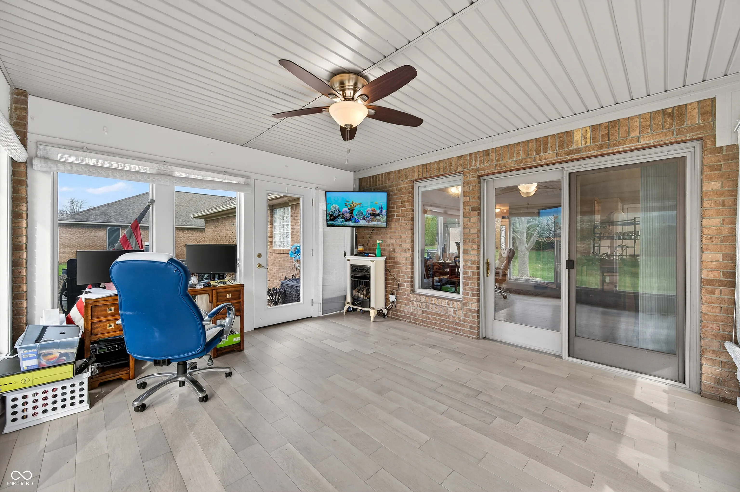 Well-maintained 2-bedroom, 2-bath ranch home offering comfortable single-level living in the desirable Roosevelt Park neighborhood on Columbus’ east side. The home features an open great room with vaulted ceiling that flows into the dining area and kitchen. The kitchen provides ample cabinet space, generous countertops, and stainless appliances with convenient access to the dining area. A large all-weather sunroom adds additional living space and is surrounded by windows overlooking the backyard, making it ideal for a home office, sitting room, or year-round relaxation. The primary suite includes a walk-in closet and private bath with dual vanity, soaking tub, and separate shower. The second bedroom and full bath are positioned to function well as a second primary suite or in-law quarters, offering flexibility for guests, multi-generational living, or extended stays. Additional features include an attached two-car garage, dedicated laundry room, generous storage and closet space, and abundant natural light throughout. The Roosevelt Park HOA provides lawn care and snow removal, creating an easy **low-maintenance living** option in a convenient east-side location near shopping, dining, and city amenities.