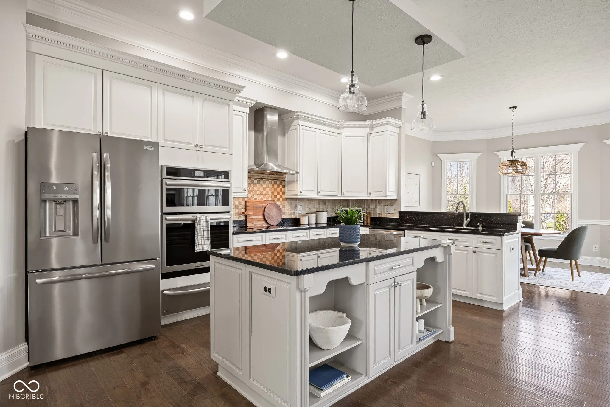 Refined elegance meets grand scale living at this European-inspired brick estate in the esteemed Village of WestClay. Classical symmetry, arched windows and sweeping balconies create timeless grandeur. From the moment you enter, a wrought iron staircase sets the tone for the craftsmanship found throughout. The dramatic two-story living room is a true showpiece, featuring coffered ceilings and a breathtaking wall of windows that floods the home with natural light, creating an airy, sophisticated ambiance. At the heart of the home, a dual-sided fireplace is framed by custom built-in bookcases and detailed millwork. Designed for elevated living, every space feels thoughtfully curated. The kitchen is positioned centrally between the formal dining room and the sun-drenched breakfast nook and offers an expansive center island, breakfast bar and brand new appliances. The home also features two stately private offices, each richly appointed with floor to ceiling bookcases. This exceptional property boasts six spacious bedrooms, each with its own private en-suite bath, offering comfort and privacy for family and guests alike. With two primary suites, including a main-level retreat, this home offers flexibility and convenience rarely found. Expansive double-decker balconies provide the perfect setting for morning coffee, evening gatherings, or simply taking in the serene surroundings. Situated on over half an acre, the backyard offers endless possibilities to bring any dream to life. A rare offering that seamlessly blends grandeur, functionality, and sophisticated design – this is the epitome of luxury real estate.