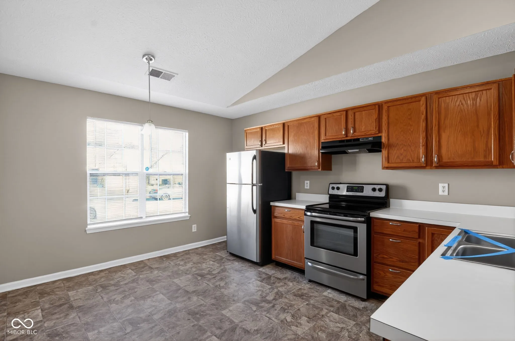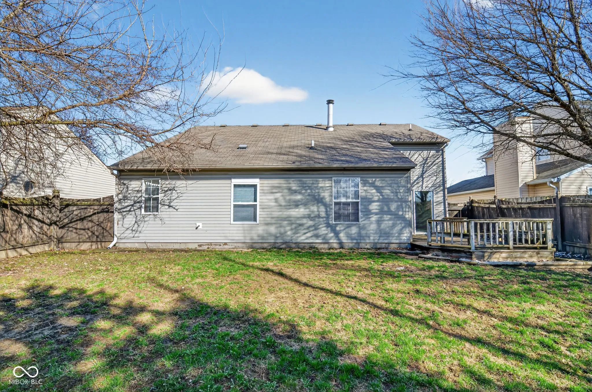 Charming ranch-style home featuring classic brick siding, an attached garage, and a spacious fenced backyard. The home offers a bright and inviting living area with vaulted ceilings, soft carpeting, and a cozy tile fireplace that serves as the centerpiece of the main living space. The kitchen features wood-finish cabinetry, light countertops, stainless steel appliances, and decorative lighting, creating a functional and welcoming space for cooking and entertaining. Multiple bedrooms provide comfortable living areas, including a primary suite with vaulted ceilings, a walk-in closet, and an ensuite bathroom featuring a double vanity, garden tub, and separate shower. Enjoy outdoor living on the wooden deck overlooking the fenced backyard-perfect for relaxing or entertaining. Additional highlights include a laundry room with cabinet storage, an attached garage with opener, and ample storage throughout the home.