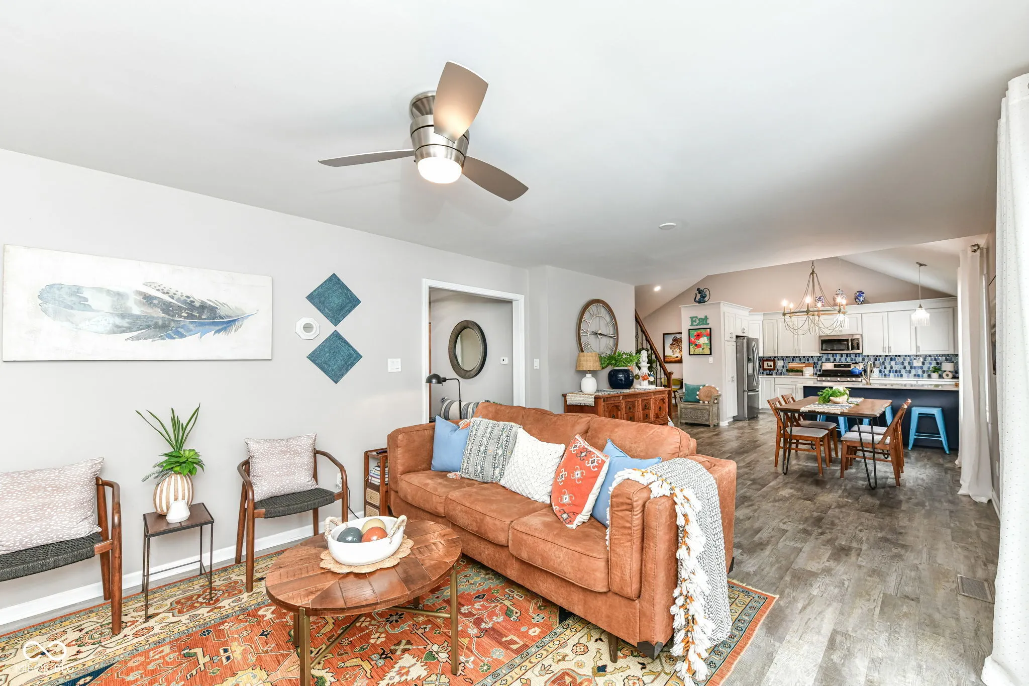 Location, location, location! Welcome to this beautifully updated well-maintained home in Stonehedge Estates. Located on a corner lot in a quiet cul-de-sac, this home offers a bedroom and a full bathroom on the main, a lovely gathering space with a combined dining/family room and a thoughtfully designed kitchen with stunning shades of blue backsplash and white quartz countertops. The kitchen island offers an extra dining area, with a charming living room rounding out the space. Relax on your back deck with views of your enchanting backyard divided by a peaceful, trickling stream. A beautiful wrought iron staircase with wood stairs and tiled risers leads you to the upper level. Upstairs boasts 3 nice size bedrooms and 2 full bathrooms with a large walk-in primary closet. All of this in an amazing location with walkability to Clay Terrace, The Monon, Greyhound Plaza and quick access to US-31N and Keystone Parkway. WOW, need I say more. Book your showing today!