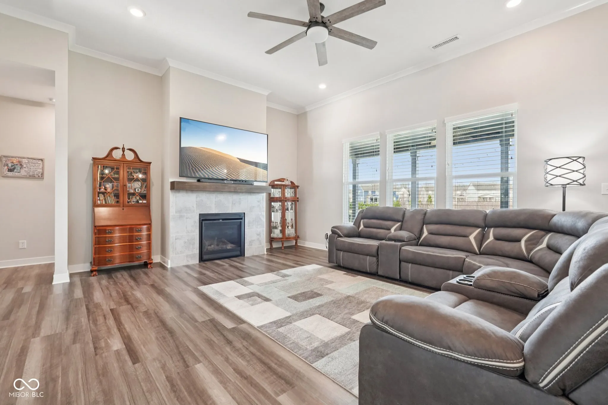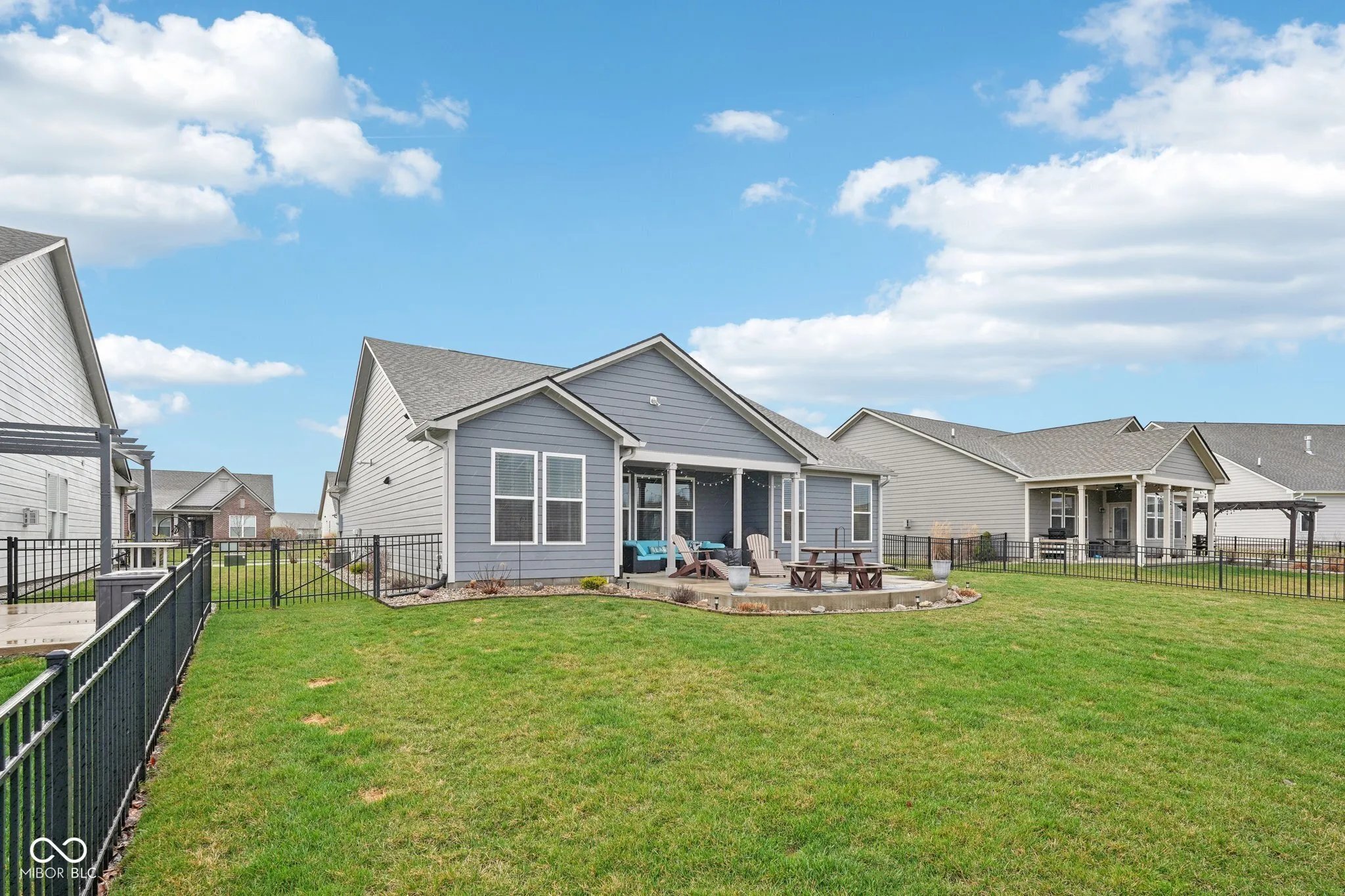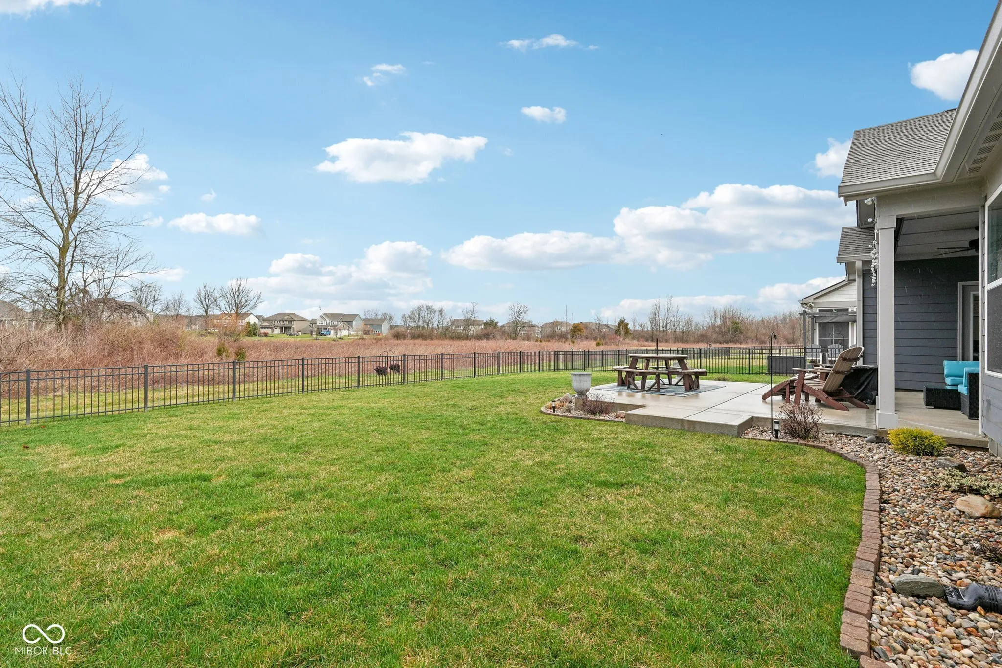 Welcome home to this beautifully upgraded 3-bedroom, 2-bath ranch located in a desirable low-maintenance Center Grove community. Perfectly positioned on a premium lot backing protected land, this home offers peaceful views and exceptional privacy with no rear neighbors. Inside, the open and inviting layout features abundant builder upgrades throughout. The spacious living area is highlighted by 11-foot ceilings with crown molding and a cozy gas fireplace, creating the perfect space to relax or entertain. The thoughtfully designed floor plan flows effortlessly into the gourmet kitchen and dining area, making everyday living both comfortable and functional. Step outside to your fully fenced backyard, where you’ll find a large concrete patio ideal for outdoor dining, entertaining, or simply enjoying the tranquil natural surroundings and views. With three spacious bedrooms, two full bathrooms, and the ease of single-level living, this home combines style, convenience, and low-maintenance living in a highly desirable setting. Don’t miss your opportunity to own a move-in-ready home with premium upgrades and one of the best lots in the community.