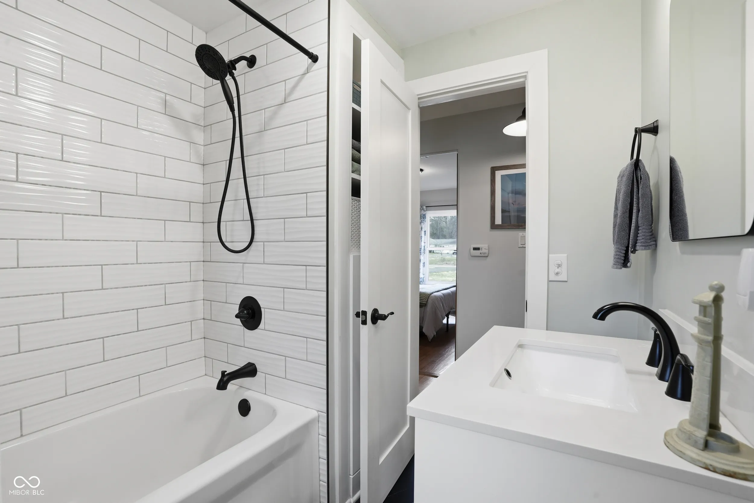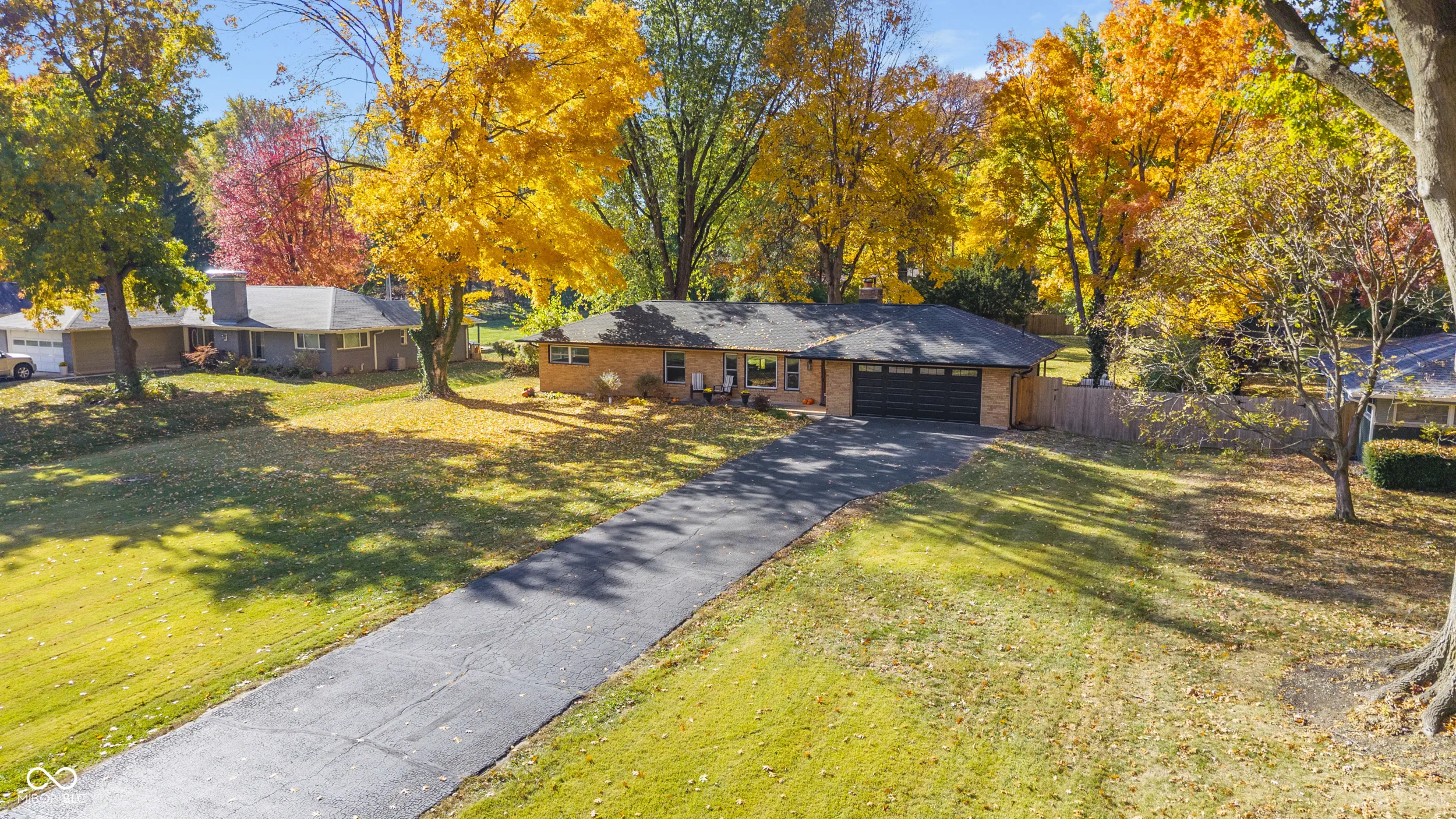 Thoughtfully updated and set on a sprawling 0.78 acre lot in desirable Driftwood Hills, this mid-century brick Ranch perfectly balances timeless character with modern luxury. A charming front porch welcomes you into a sun-drenched living room featuring original hardwood floors, wide baseboards, and marble window sills – centered around a dramatic woodburning masonry fireplace with floor-to-ceiling brick surround. The intelligently renovated floor plan creates a seamless, circular flow, leading into a fully remodeled Kitchen equipped with luxury plank flooring, two-tone, dovetailed, soft-close cabinetry with versatile pull-out drawers, quartz countertops, and premium stainless steel appliances including a gas range and hood. The Primary Retreat boasts new windows, dual step-in closets, and an adjacent spa-like Bath featuring a tub with shower and floor-to-ceiling tile work, removable mounted showerhead, quartz topped vanity, timeless medicine cabinet, and deep linen storage. Additional bedrooms offer rich hardwood flooring, ample closets, and access to a second fully renovated Bath featuring a quartz-topped vanity and modern shower with sliding glass door. Practicality meets style in the oversized finished Garage – ideal for a workshop or storage – which leads to a dedicated Mudroom and Laundry area. The quaint Dining space opens via sliding door to an expansive, fenced Backyard sanctuary – complete with a built-in fire pit, storage barn, and both covered and uncovered patio spaces framed by a private tree line. *NEW*: 2021- Plumbing, Electrical updates, Water Heater, Water Softener, Appliances, Kitchen, 2nd Bath & Mudroom Renovation; 2022- Roof, Gutters, Garage Door; 2024- Windows, Main Bath. This quiet, mature lot offers an incredible location – walking distance to Ironworks restaurants and shops, and just minutes to Keystone at the Crossing and Nora, providing a quiet, private retreat with unparalleled access to the city’s best dining, shopping, & travel routes!