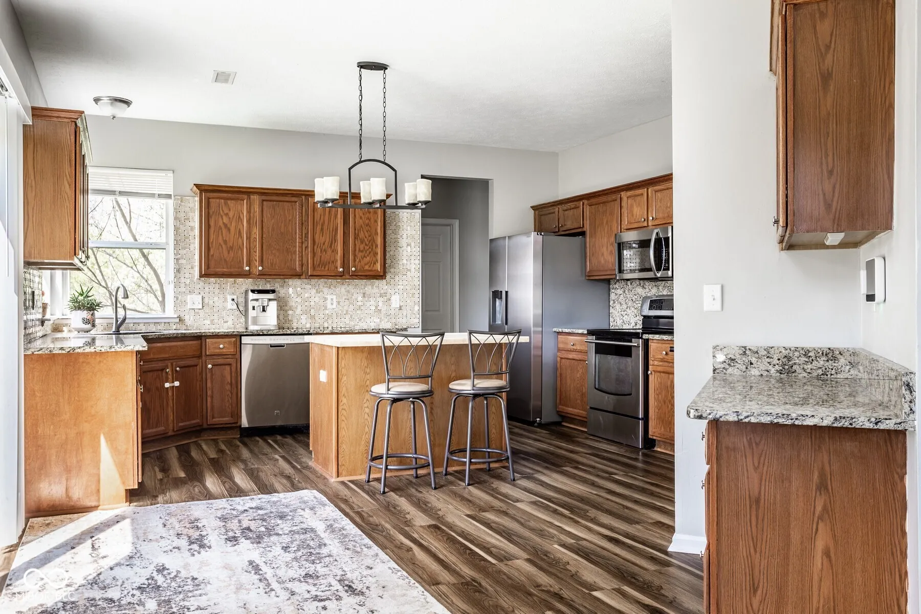 Discover the perfect blend of privacy and daily living at the end of a peaceful, no-through drive. This stunning residence sits on a premium lot, offering a lush, private retreat surrounded by a beautiful side and rear yard. Step through the front door into a soaring two-story foyer that sets an airy, open tone for the entire home. Durable and stylish new vinyl plank flooring flows seamlessly across the main level, providing a modern, clean aesthetic. The heart of this home is the spacious island kitchen-a true showstopper featuring granite countertops, a dynamic tile backsplash, and sleek stainless steel appliances. A convenient butler’s pantry connects the kitchen to the elegant formal dining room, while the kitchen itself flows directly into a cozy family room anchored by a warm gas fireplace and large living room. The upper level is home to four generous bedrooms, offering versatile space for family, guests, or a quiet home office. The primary suite is a true retreat, featuring dual sinks, a standalone shower, a large jetted soaking tub for ultimate relaxation and an expansive walk-in closet providing ample storage. From its striking exterior to its serene, secluded lot, this home delivers a peaceful retreat in a premier neighborhood.