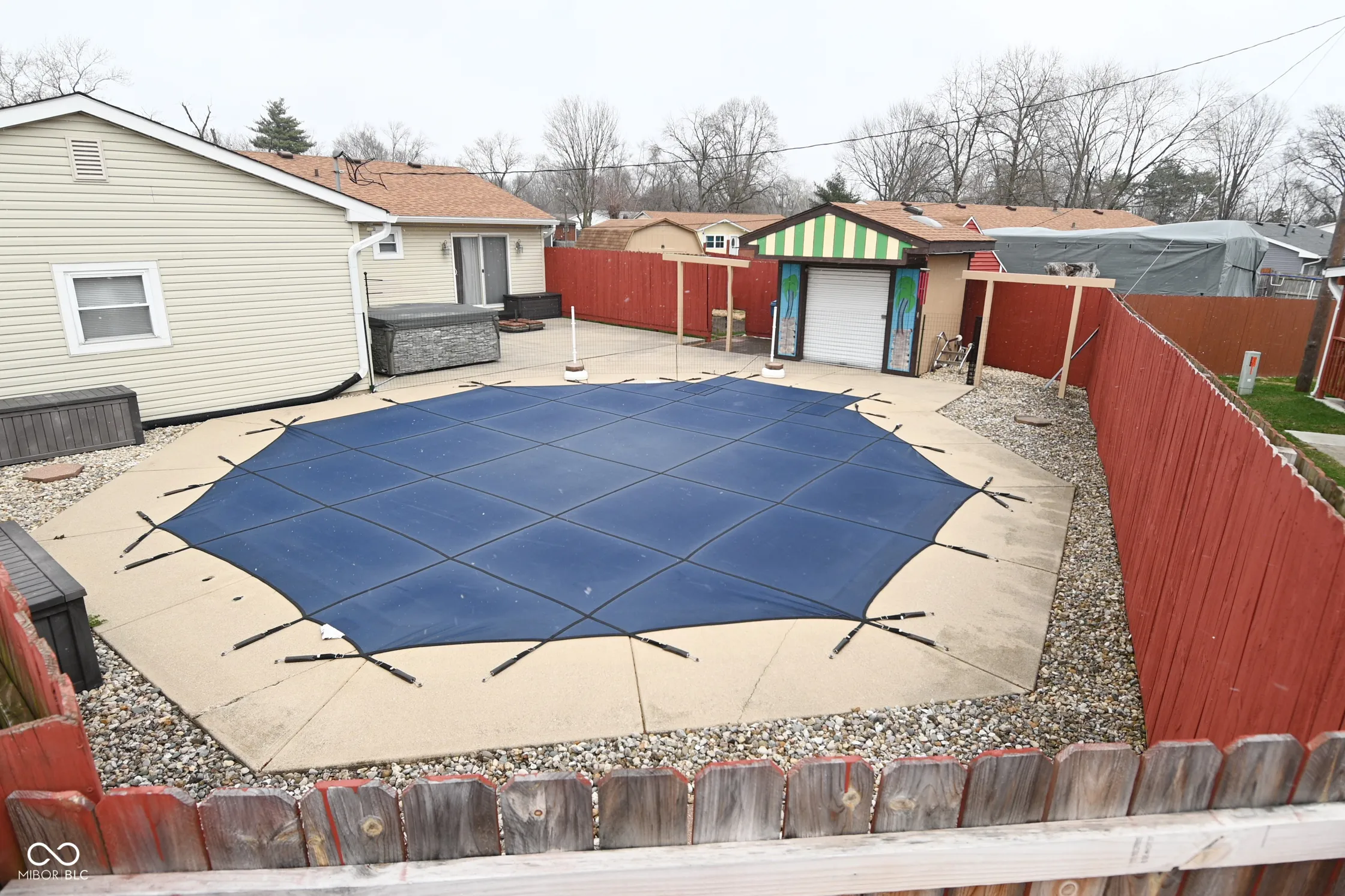 Move in Ready Ranch Home on***HVAC, Central Air, Water Heater, Sump pump, Dehumidifier, Gutters with Guards all in 2025***Updated Baths, New Concrete Driveway**Recent Vinyl windows, and Custom Blinds**Large living Room with original Hardwood flooring***Kitchen is updated and includes Stainless Steel Appliances, Pantry, Breakfast Bar***Master Bedroom has a half bath and patio door leading to the backyard***In the back you’ll find a Home Vacation area – Heated in-ground pool and Deluxe Tiki Bar with stone inlay bar, refrigerator and TV**There is also a Hot Tub, Mini Barn, Fire Pit and storage containers for the pool games and toys**Pool has a new cover and a solar cover**Mini Barn has 2 swings that go on the wooden posts**2 car Garage included a freezer, microwave, mini fridge, and storage cabinets***Laundry Room with Upgraded Stainless Steel Washer and Dryer**Corner Lot is .30 acre, includes telescoping flagpole, Privacy Fenced rear yard**This is a nice one**Can be easily converted back to a 3 bedroom**