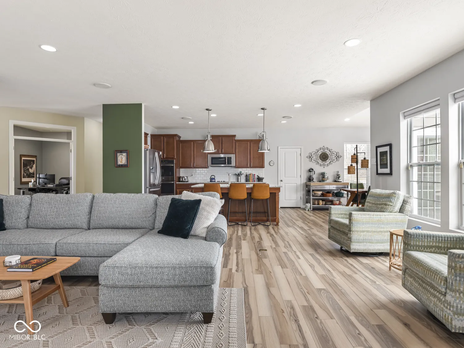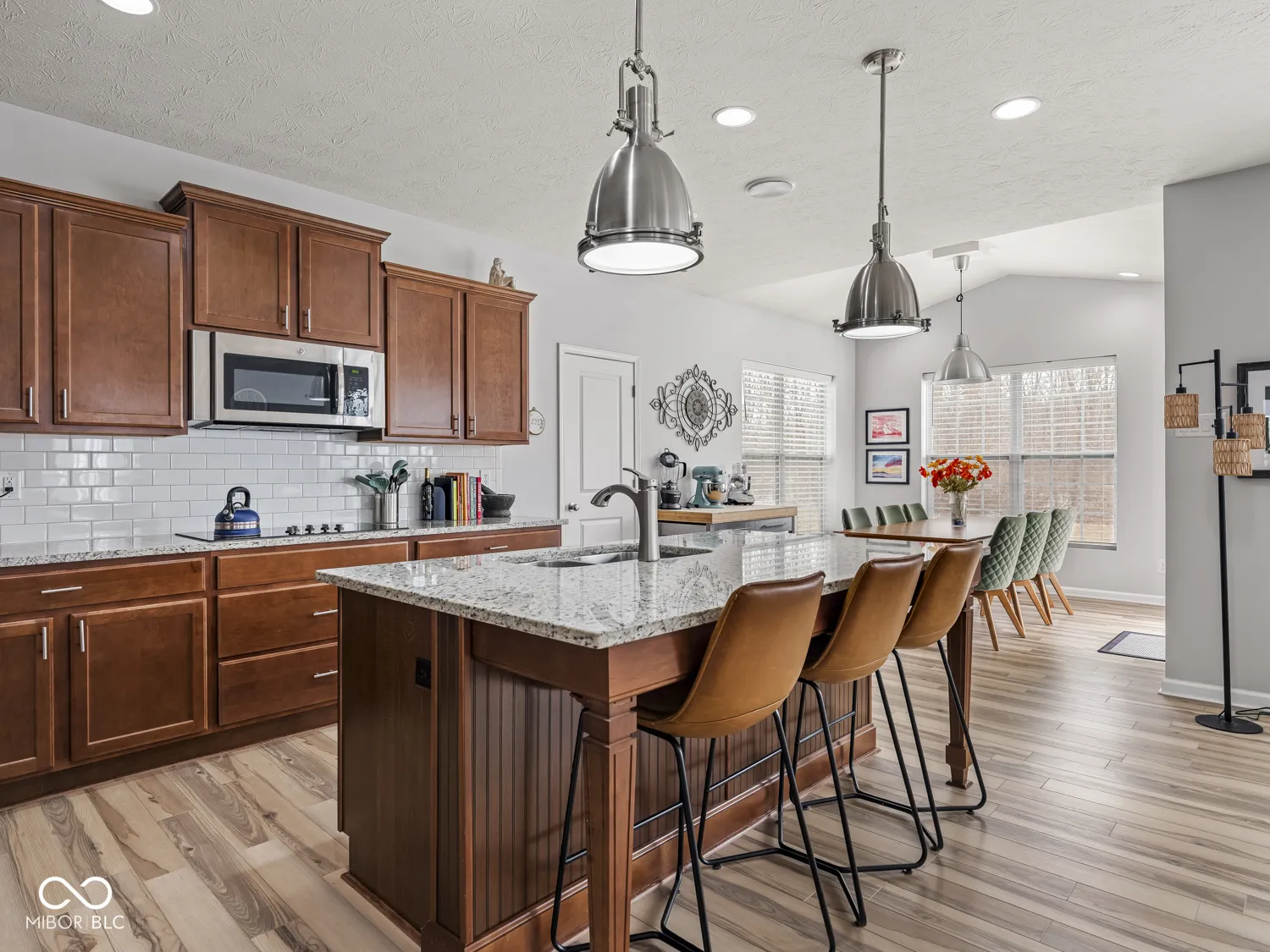 The impeccable ranch you’ve been waiting for, set against tranquil water and nature views! This 4-bed, 3-bath home is perfectly positioned between two scenic ponds and has easy access to the Midland Trace Trail – offering a rare blend of privacy and connectivity. Inside, a bright, airy interior is filled with natural light and elevated by polished, modern finishes throughout. A private home office with French doors sits at the front of the home – ideal for work or quiet retreat. The open-concept main living space is both inviting and functional, featuring a stunning kitchen with an oversized island that flows seamlessly into the dining and living rooms. Step outside through patio doors to a new, expansive Trex deck – perfect for relaxing or entertaining while taking in peaceful water views. The main-level primary suite is thoughtfully positioned to capture the scenery and includes an ensuite bath with double vanity, a walk-in closet, and convenient access to the nearby laundry room. Two additional bedrooms and a full bath are tucked away on the opposite side of the home, offering comfort and privacy for family or guests. The finished basement mirrors the quality of the main level, featuring a spacious rec room with egress window and a custom wet bar complete with ice maker, beverage fridge, and dishwasher – an ideal space for hosting. A fourth bedroom and full bath create the perfect guest retreat. Additional highlights include an oversized 3-car garage with ample storage, mature landscaping, zoned irrigation, and a fenced backyard for pets. Outdoor living is maximized with a covered porch, open patio, and the elevated deck. Located in Slater Run, between downtown Noblesville and Westfield, residents enjoy access to a community pool, clubhouse, playground, sports courts, and scenic trails connecting to the Monon. All within the highly rated Noblesville Schools district. This home truly checks every box!