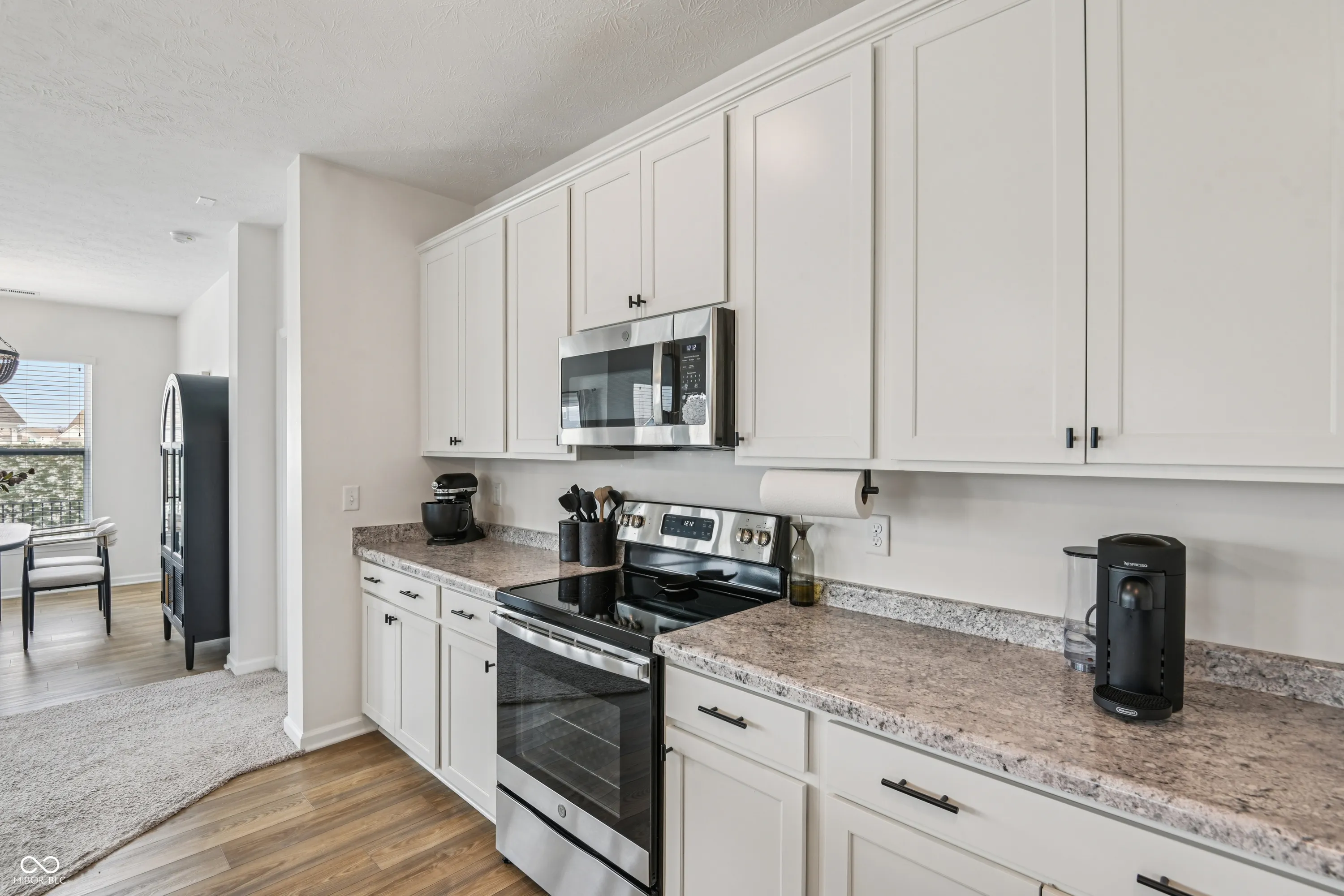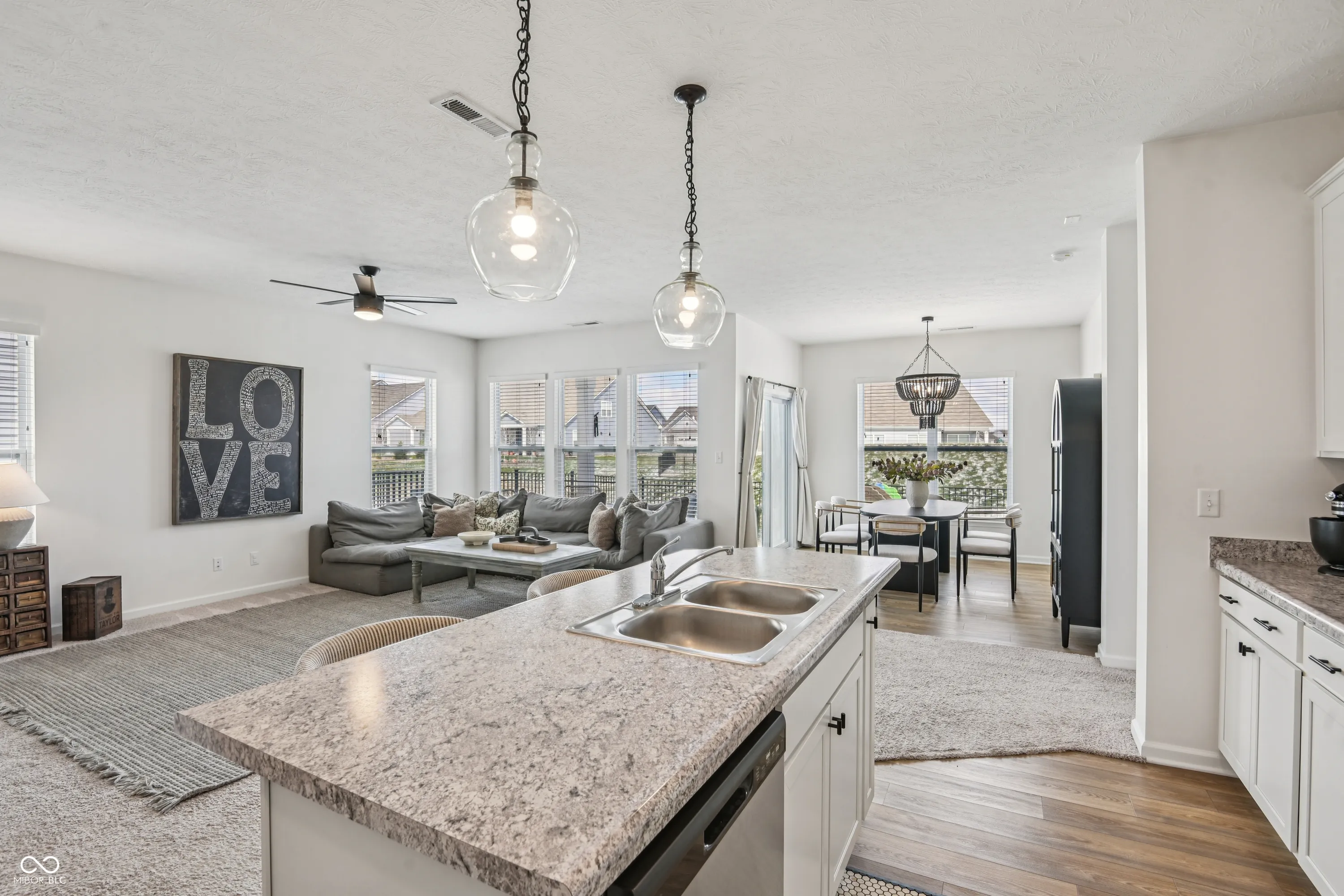 This meticulously maintained, one-story row home in the charming lakeside community of Cicero offers the perfect blend of modern comfort, thoughtful design, and easy living. At the heart of the home, the kitchen shines as a true gathering space-featuring elegant stone countertops, stylish shaker cabinetry, a spacious island, and a prominent breakfast bar. The open-concept layout creates a seamless flow into the main living area, making it ideal for both everyday living and entertaining. The primary suite serves as a private retreat, highlighted by a sophisticated tray ceiling and a well-appointed ensuite bath with a double, Pullman-height vanity. A massive walk-in closet provides abundant storage and adds to the suite’s overall functionality and appeal. Step outside to enjoy both a welcoming front porch and a private patio-perfect for morning coffee or winding down at the end of the day. The fenced backyard offers a sense of privacy and a low-maintenance outdoor space to enjoy. Additional features include a dedicated laundry room for added convenience and a well-designed floor plan that maximizes comfort across 1,707 square feet, with 2 bedrooms and 2 full baths. Built in 2021, this home offers newer construction peace of mind with modern finishes throughout. Enjoy effortless living just moments from Morse Reservoir, all within a quiet and inviting community setting.