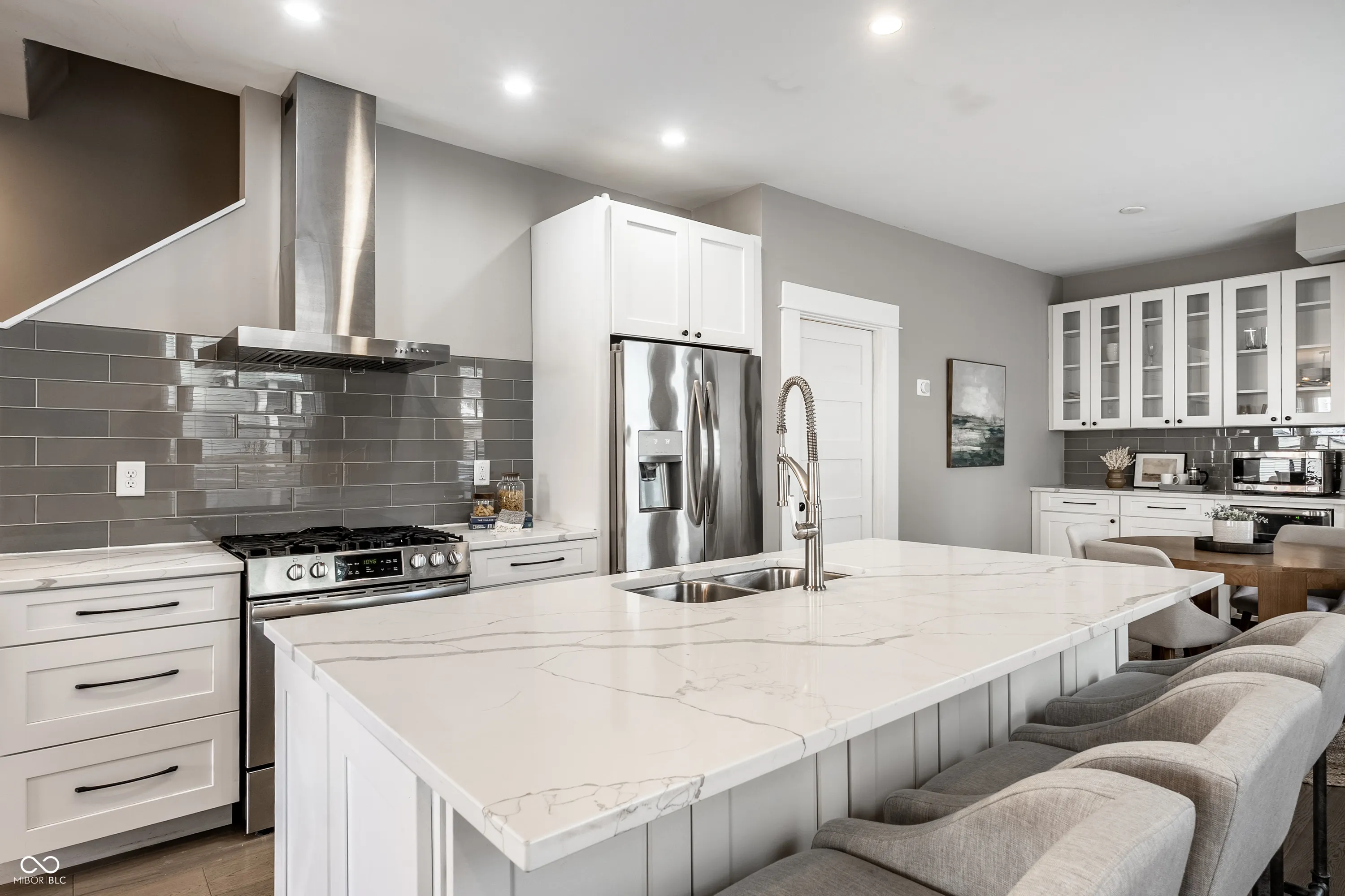 Location, location, location! Walkable to Mass Ave and Bottleworks, this property features the best of the best when it comes to urban living. Open layout with elevated finishes throughout. Kitchen is the heart of the home with large island, Quartz countertops, gas range, hood and beverage area with wine fridge. Hardwood floors throughout main level and tons of storage space in the basement. Upstairs, you will love the large primary bedroom complete with en suite, walk-in closet, built-ins and private deck. Two additional bedrooms, large bathroom and upstairs laundry. Don’t miss the second upstairs deck! Attic offers great additional storage with easy access. Private yard has just enough space to relax without too much maintenance. Attached two car garage rounds out this fantastic property. Your search is over!