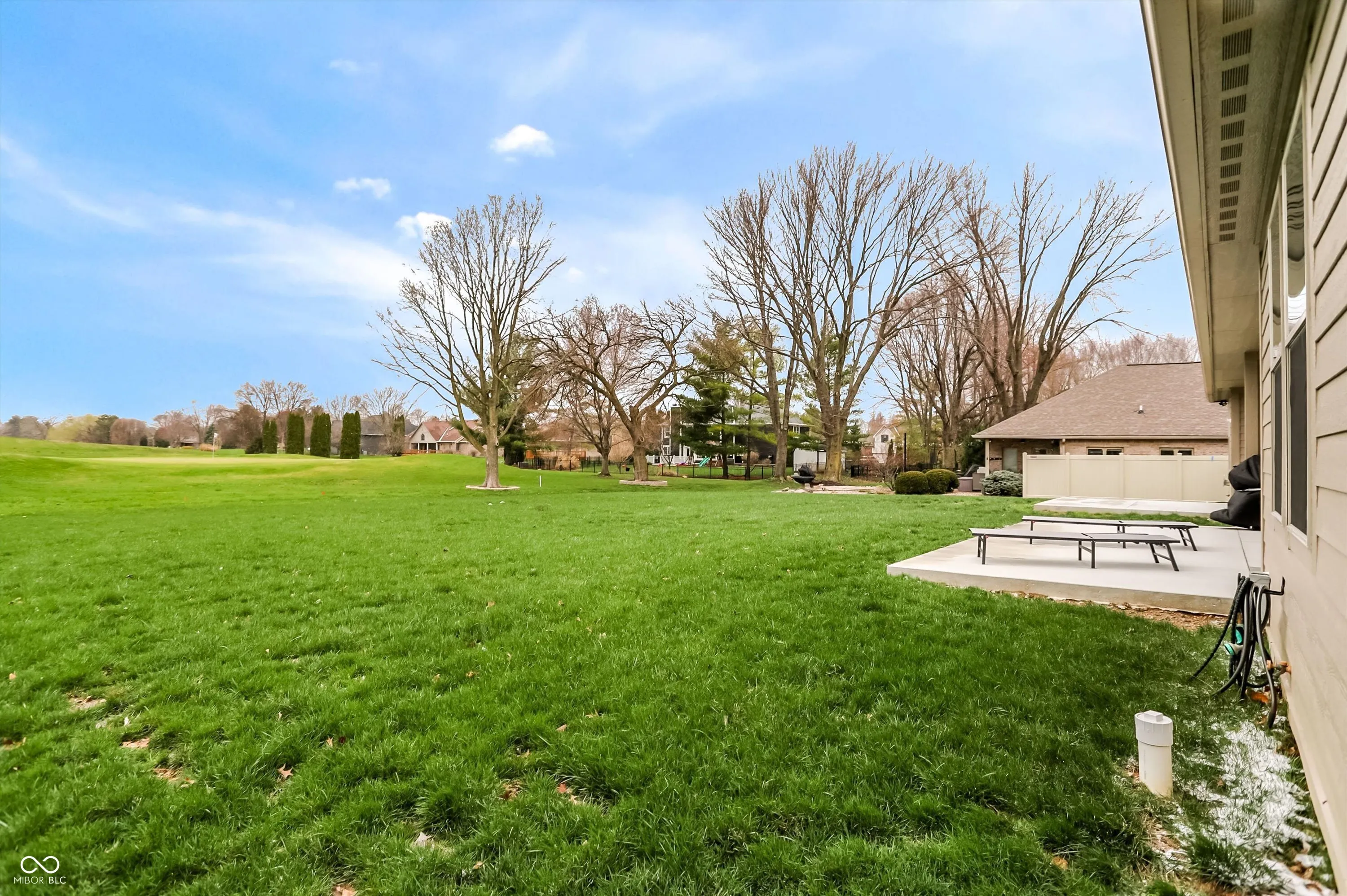 Modern Patio Home Overlooking Hillview Golf Course – Move-In Ready! Built in 2023, this nearly new stunning patio home offers modern comfort and style. Designed for easy living, the open-concept layout features vaulted ceilings and abundant natural light throughout. The kitchen is a showstopper with sleek quartz countertops, a large island perfect for entertaining, and premium finishes that flow seamlessly into the dining and living areas. Both bathrooms also feature quartz surfaces, and the master features a luxurious white marble tile, walk-in shower, adding a touch of luxury to everyday living. Enjoy peaceful mornings or evening gatherings on the brand-new 18′ x 24′ patio while taking in beautiful sunset views of Hole 14 at Hillview Golf Course. The home includes a washer and dryer that convey with the property for added convenience. A finished 2-car garage provides ample storage and functionality, completing this move-in-ready gem. Perfect for those seeking low-maintenance – no lawn mowing or snow removal – living with high-end touches and a prime golf course location. Close to I-65 for a quick 20 minute drive to Indy. Minutes to Franklin Greenway Trails, parks, restaurants, shopping and all things Franklin!