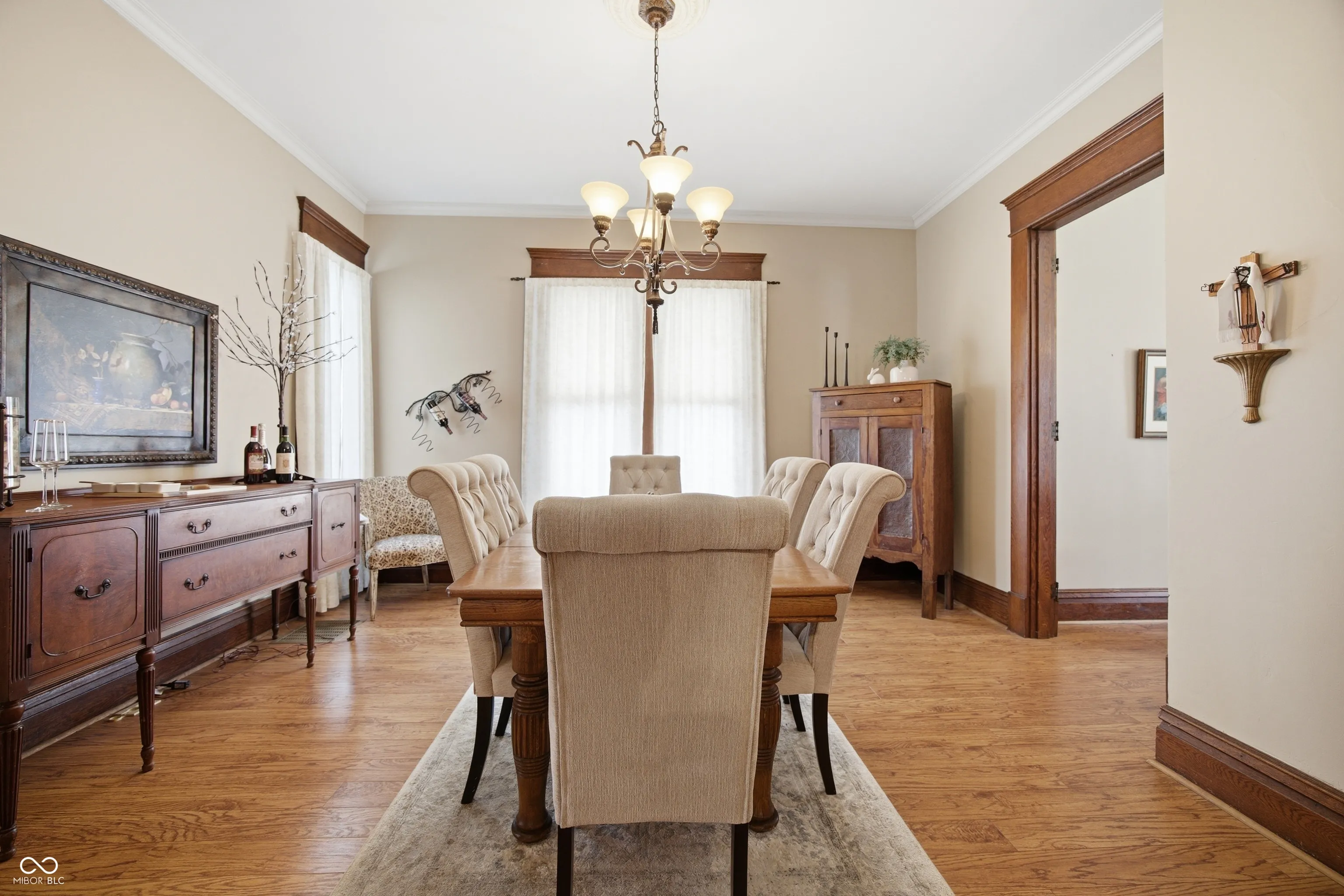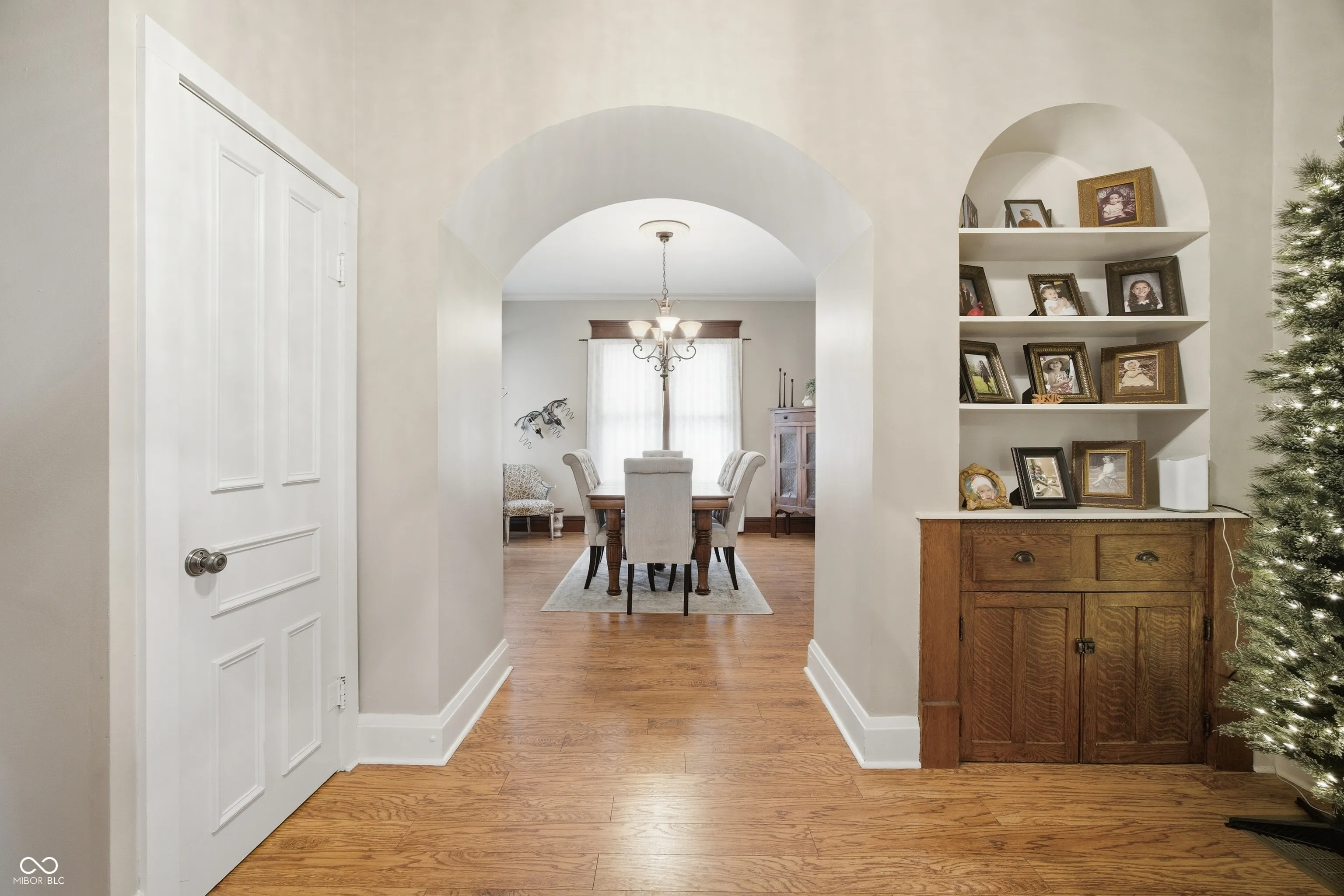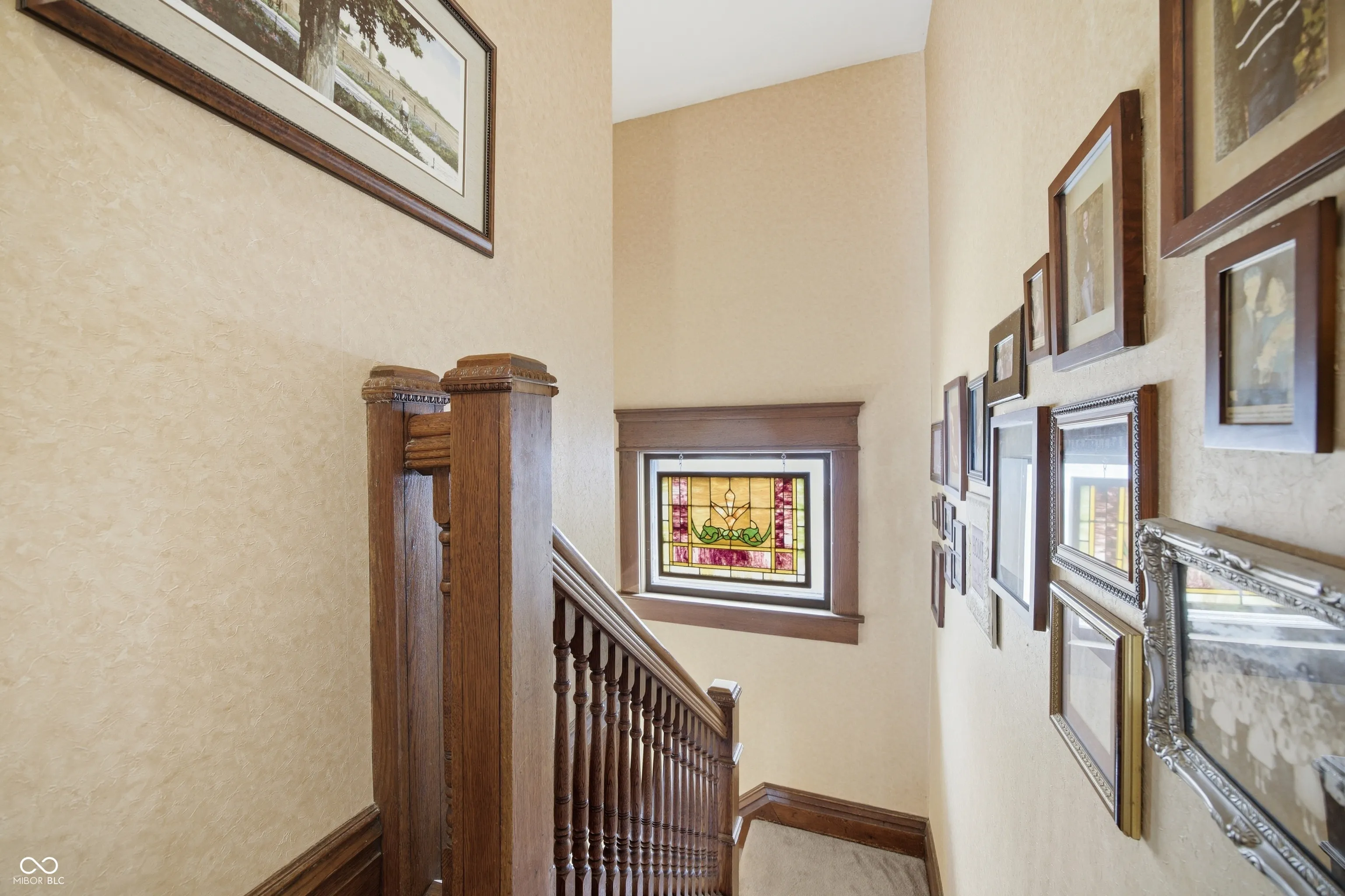 Step into timeless charm with this beautifully maintained traditional two-story home, showcasing stunning woodwork, arched doorways, stained glass windows, and character throughout. As you step onto the front porch, you’re welcomed by an inviting covered sitting area-an ideal spot to relax and unwind. From the moment you enter the welcoming foyer, you’re greeted by a gorgeous wood staircase and an inviting parlor featuring a large picture window-setting the tone for the home’s warmth and elegance. The space flows seamlessly into the formal dining room with a built-in hutch and fully equipped eat-in galley kitchen, perfect for both everyday living and entertaining. To the left of the foyer, the spacious living room offers wall-to-wall built-in shelving and a cozy gas fireplace. Just beyond, a private office provides great natural light, outdoor views, and a generous closet. The main level also includes a convenient laundry room-complete with an upstairs laundry chute-and a full bath featuring a double sink vanity and shower. Upstairs, you’ll find four comfortable bedrooms and a second full bath. Throughout the home, you’ll appreciate thoughtful details like raised ceilings, multiple built-ins, and pocket doors that enhance both character and functionality. The enclosed back porch offers a practical space for everyday use-perfect for hanging coats, storing shoes, and staying organized as you come and go with a small utility sink. Step outside to enjoy the private back deck, enclosed with privacy fencing and accented by flower beds-creating a peaceful setting to relax or entertain-while the open backyard offers additional space to enjoy. Recent updates include windows throughout (within the last 10 years), water heater (2021), and roof, siding, and insulation (2012). This home beautifully blends classic charm with modern-day comfort-ready for its next owner to move in and enjoy.