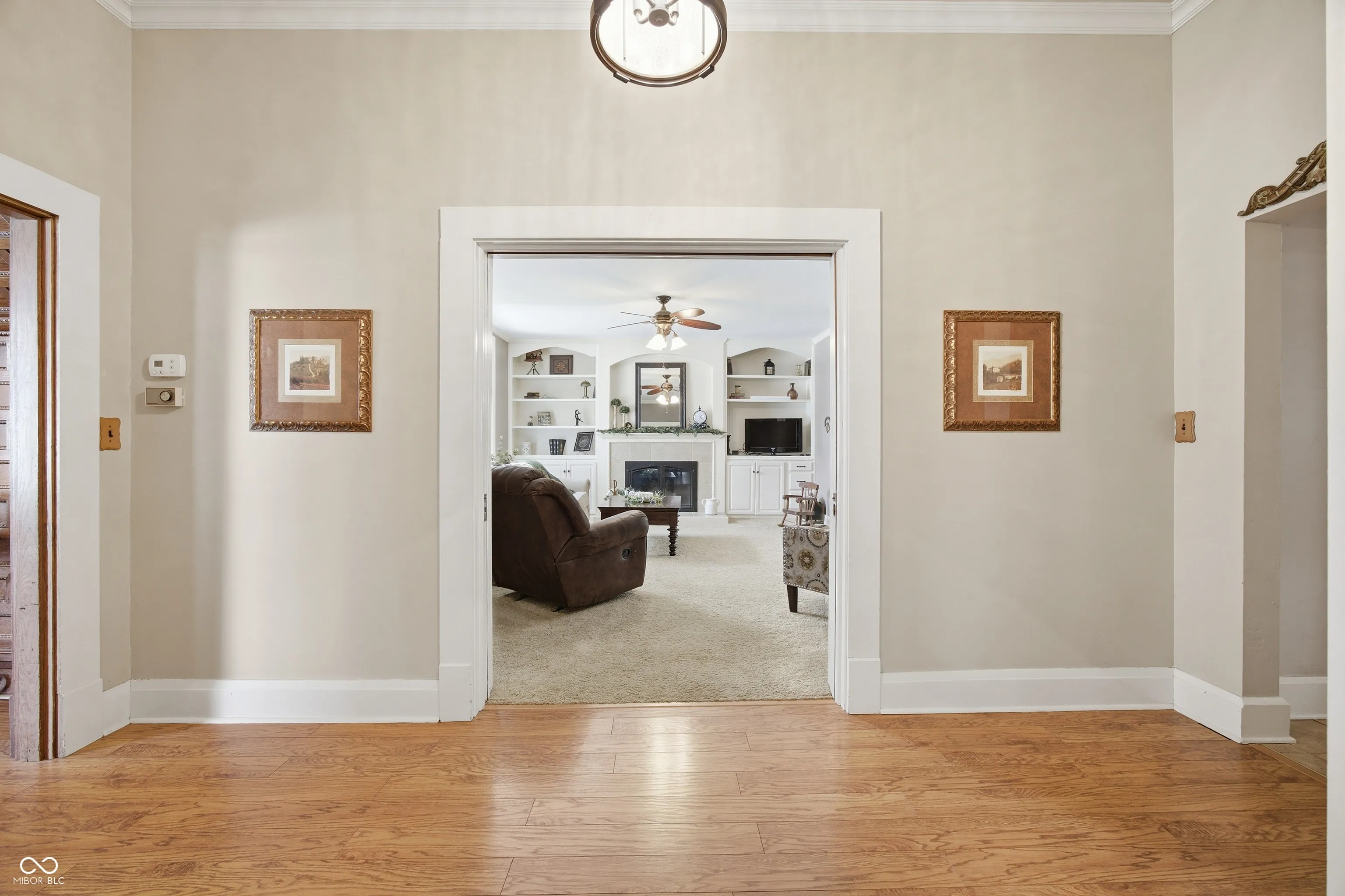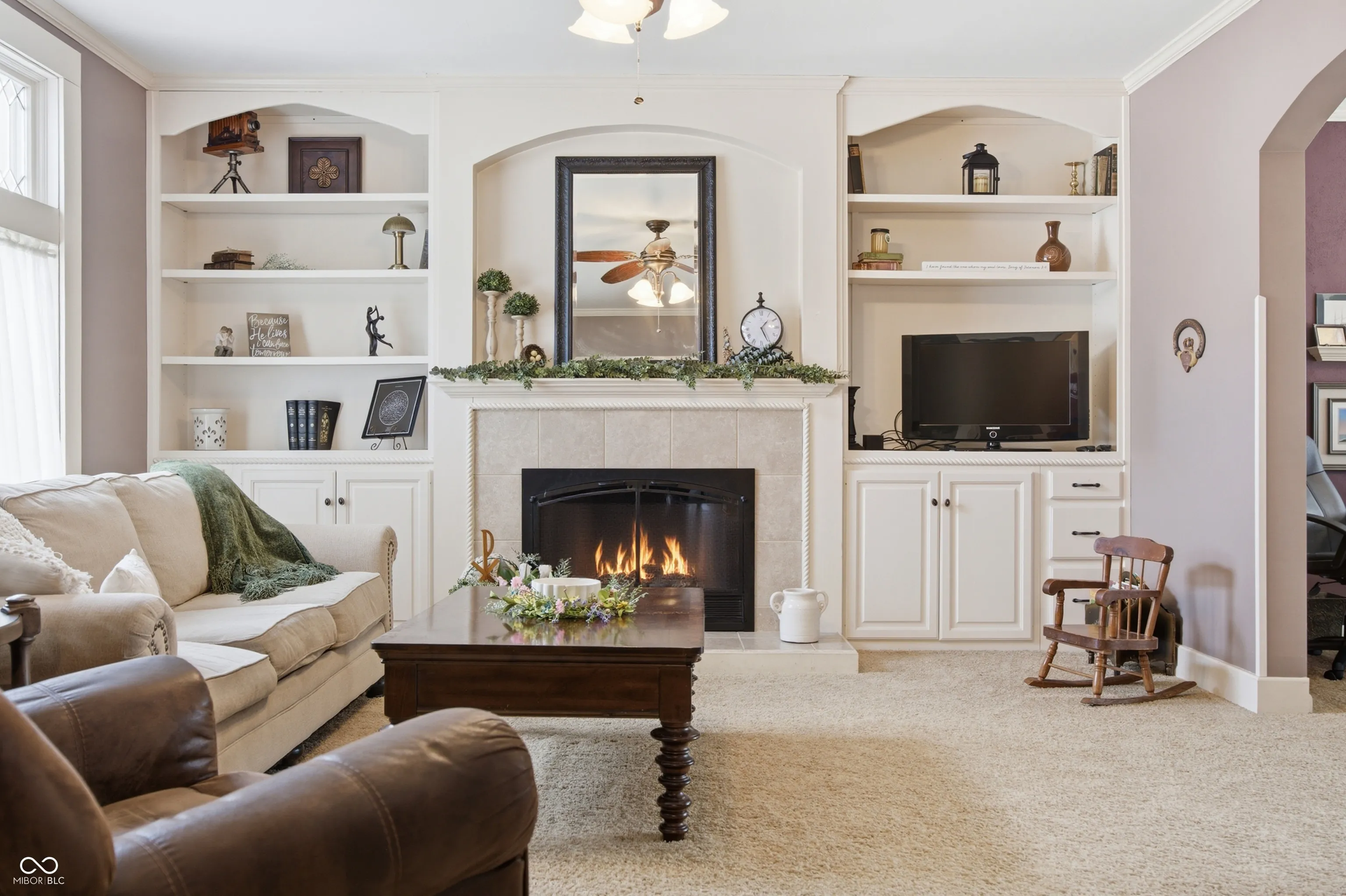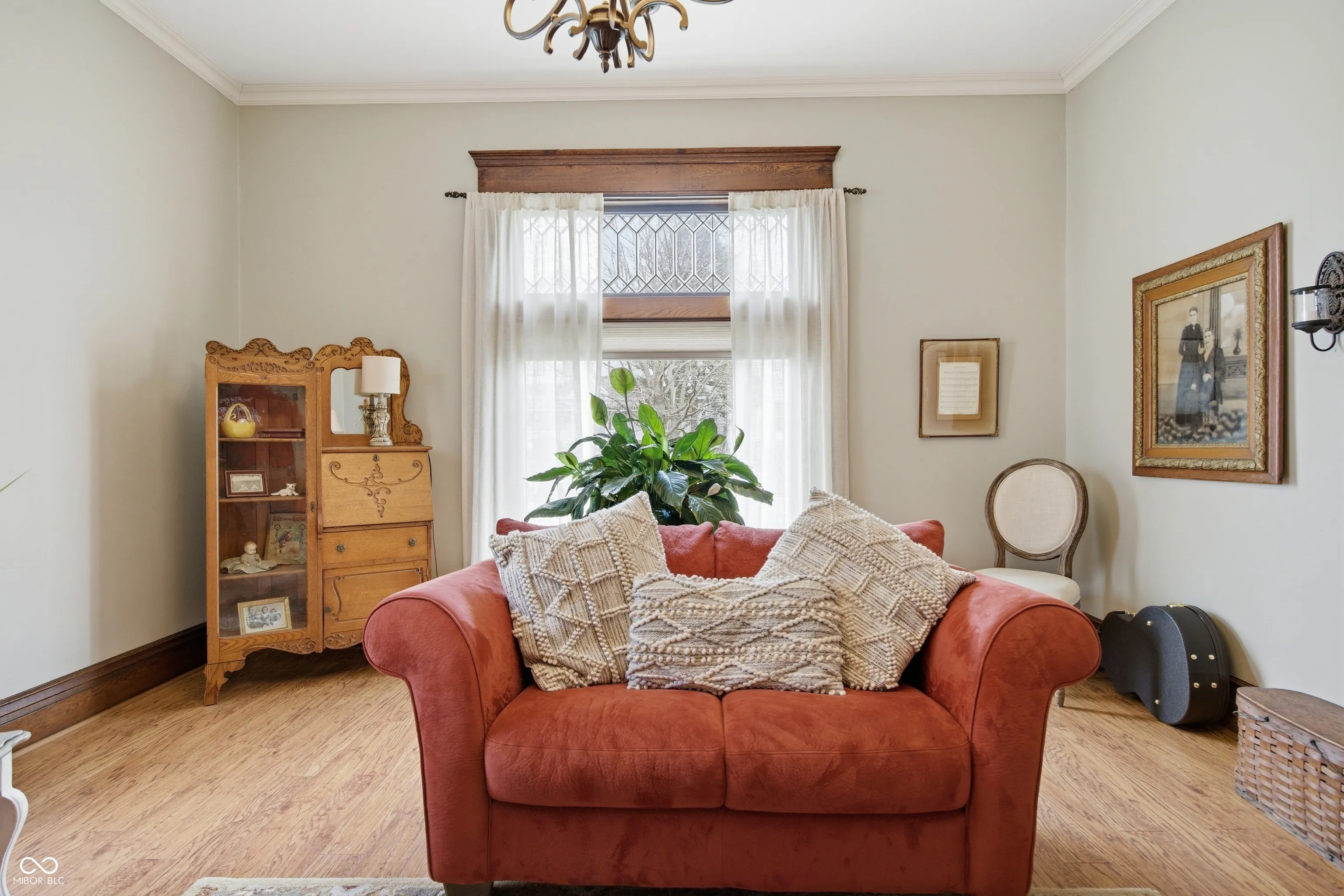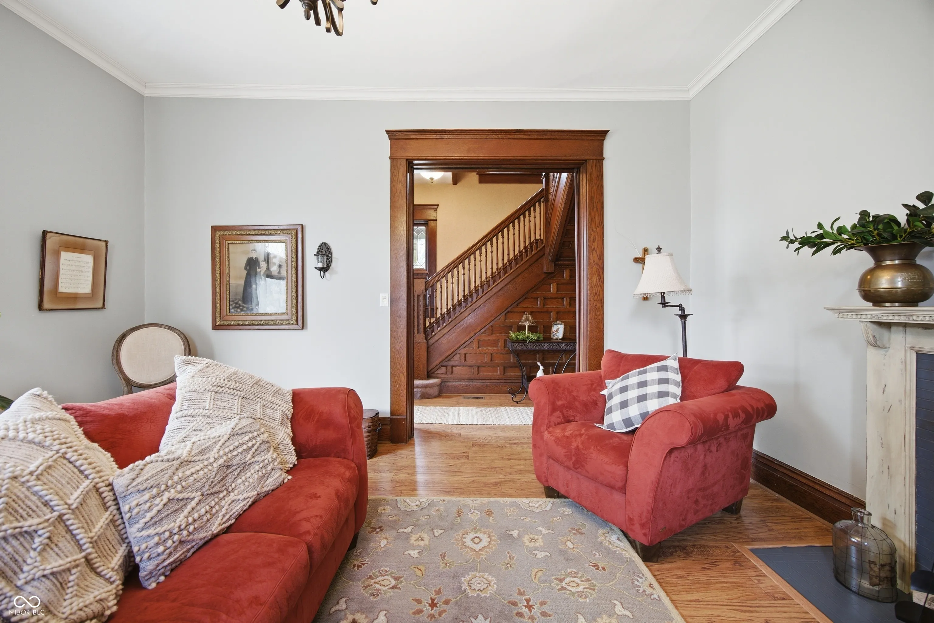 Step into timeless charm with this beautifully maintained traditional two-story home, showcasing stunning woodwork, arched doorways, stained glass windows, and character throughout. As you step onto the front porch, you’re welcomed by an inviting covered sitting area-an ideal spot to relax and unwind. From the moment you enter the welcoming foyer, you’re greeted by a gorgeous wood staircase and an inviting parlor featuring a large picture window-setting the tone for the home’s warmth and elegance. The space flows seamlessly into the formal dining room with a built-in hutch and fully equipped eat-in galley kitchen, perfect for both everyday living and entertaining. To the left of the foyer, the spacious living room offers wall-to-wall built-in shelving and a cozy gas fireplace. Just beyond, a private office provides great natural light, outdoor views, and a generous closet. The main level also includes a convenient laundry room-complete with an upstairs laundry chute-and a full bath featuring a double sink vanity and shower. Upstairs, you’ll find four comfortable bedrooms and a second full bath. Throughout the home, you’ll appreciate thoughtful details like raised ceilings, multiple built-ins, and pocket doors that enhance both character and functionality. The enclosed back porch offers a practical space for everyday use-perfect for hanging coats, storing shoes, and staying organized as you come and go with a small utility sink. Step outside to enjoy the private back deck, enclosed with privacy fencing and accented by flower beds-creating a peaceful setting to relax or entertain-while the open backyard offers additional space to enjoy. Recent updates include windows throughout (within the last 10 years), water heater (2021), and roof, siding, and insulation (2012). This home beautifully blends classic charm with modern-day comfort-ready for its next owner to move in and enjoy.