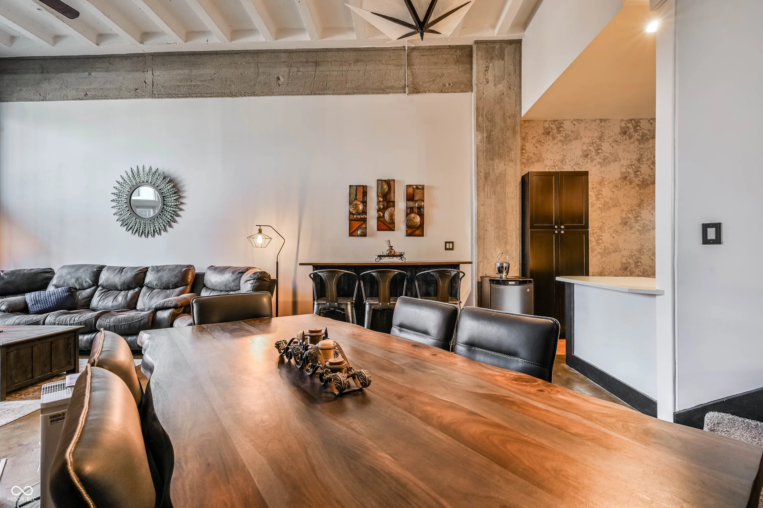 Real Silk Lofts with a View!!! This Amazing condo kept their updates in line with the Industrial look and feel of the Real Silk. This 2BR/2Bath Condo with 14 ft wondows features a great room, dining room, kitchen and sun room. Updates include new carpet in bedrooms custom leather flooring in sun room and kitchen The bathrooms have been totally redone including heated floors. The condo also offers two tandem parking spaces in secured gated lot. PLUS ALL of the Urban Furniture, some additional wall hangings, TV and stand remain with condo. Enjoy the steam room, hot tub, indoor pool and gym without ever leaving the building. Your new condo is located steps away from Massachusetts Avenue and all it offers. This is an amazing condo, come take a look for yourself! Condo Fees include Water, Sewer and Trash