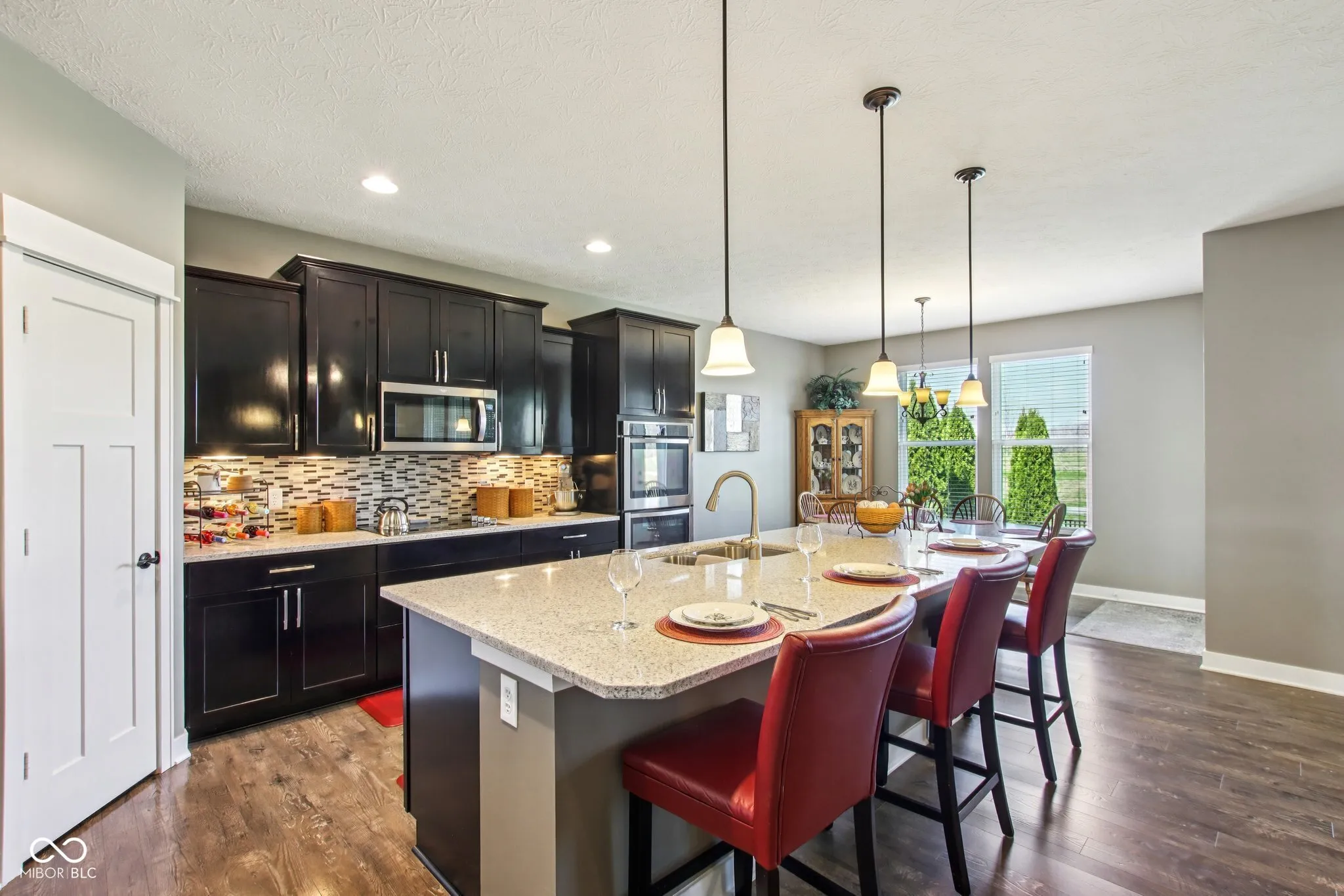 Welcome to this meticulously beautiful ranch home with a finished basement! The heart of this residence embraces an open floor plan, where the great room provides a warm atmosphere with its comforting fireplace and practical built-in shelves, offering both charm and utility. This space seamlessly extends into a kitchen designed for culinary pursuits, featuring elegant quartz countertops, dark cabinets, and a stylish backsplash. A large kitchen island and a convenient kitchen bar provide ample space for gathering, complemented by a stovetop and a double oven for all cooking needs. The bedrooms on the main level are nicely placed with a split floor plan. Creating a private master suite wing with sophisticated tray ceiling and refined crown molding. The ensuite bathroom features a luxurious tiled walk in shower, providing a spa-like experience within the home. A dedicated laundry room and mudroom completes the main level. Encompassing 3,114 sq ft of living area the property also includes a finished basement with a large rec room for movie nights or playing board games. Sharing the 4th bedroom as a workout room and another full bathroom. Also a generous size unfinished area for storage needs. Beyond the interior, an inviting outdoor living space extends the enjoyment of this property, enhanced by a screened in sunroom that overlooks the popular Flat Fork Creek Park. Join a community with walking trails, multiple fish ponds, playgrounds and community pool!