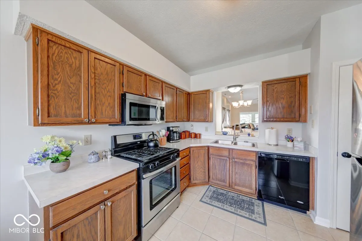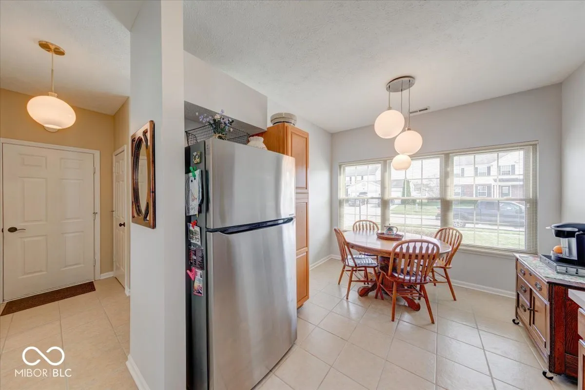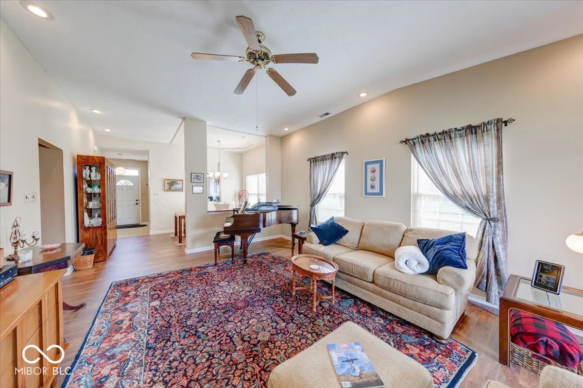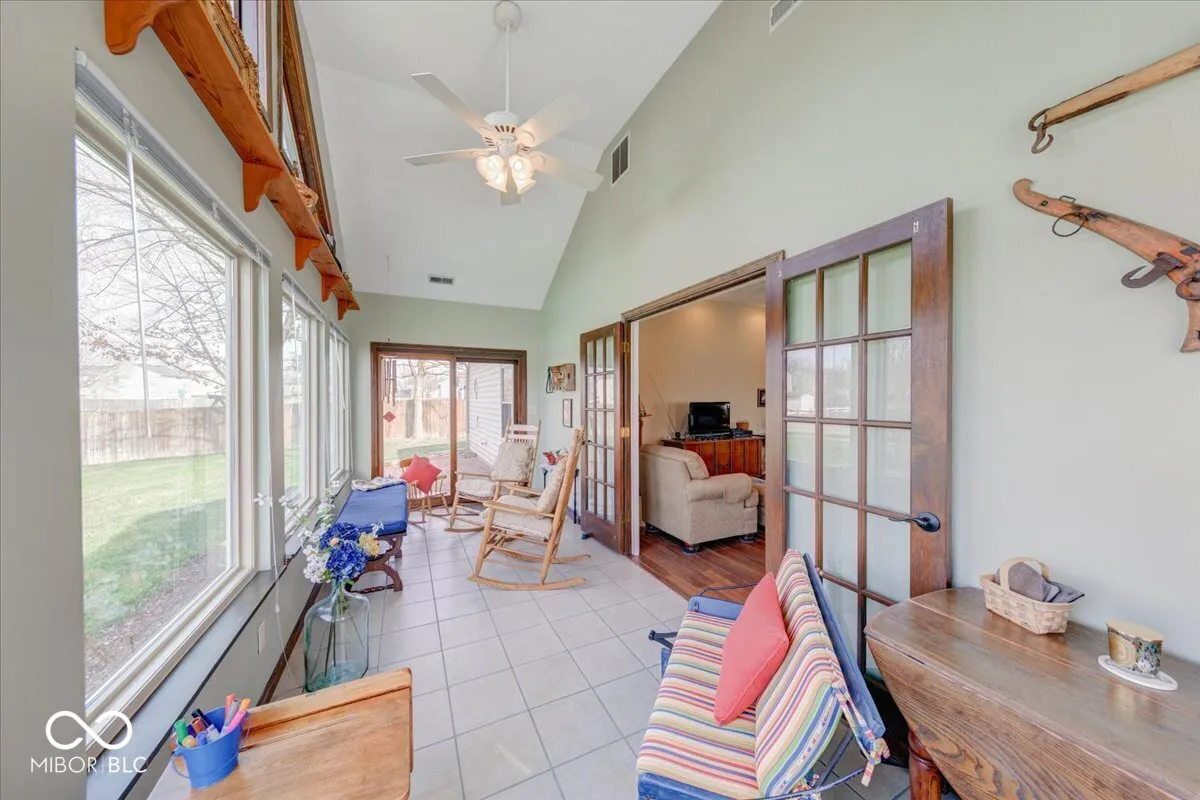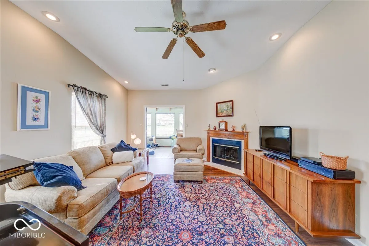 Welcome home to this extremely well-maintained 3-bedroom, 2 full bathroom ranch featuring a beautiful four-season sunroom with vaulted ceiling and peaceful lake view! Nestled in the desirable Clearbrook Lakes community, residents enjoy access to a 10-acre spring-fed lake-perfect for swimming, floating, fishing, and non-motorized boating including kayaking, paddleboarding, and more. Step inside to a welcoming foyer with a coat closet that leads into the bright eat-in kitchen, complete with a breakfast nook and convenient serving window. The kitchen offers stainless steel appliances including a gas stove, new garbage disposal, under cabinet lighting, updated countertops, a deep sink, ample cabinetry, and a pantry for extra storage. The elegant dining room showcases a trey ceiling and offers flexible use as a home office, playroom, or additional living space. The spacious living room features a cozy gas fireplace-perfect for relaxing evenings at home. You’ll love the four seasons sunroom, ideal for enjoying your morning coffee or unwinding with serene water views. Both the sunroom and the entire home feature newer Pella windows, offering excellent energy efficiency and sound reduction. The large primary suite includes a vaulted ceiling and walk-in closet, while the generously sized guest bedrooms also offer great space and storage. Additional updates and features include: French doors leading to the sunroom, 6-panel doors throughout, New laminate flooring, New LG refrigerator and microwave, New front (Bee) and patio (Pella) doors, Exterior wood painted (2021), Added attic insulation (2021), Newer garage door, HVAC replaced in (2016), Updated interior and exterior lighting, New chimney cap, Water softener, Finished garage with built-in shelving. Enjoy a walkable neighborhood just minutes from Greenwood Middle and High Schools, shopping, dining, and major commuter routes I-65, US-31 and SR-135, with easy access to downtown Greenwood and Indianapolis.