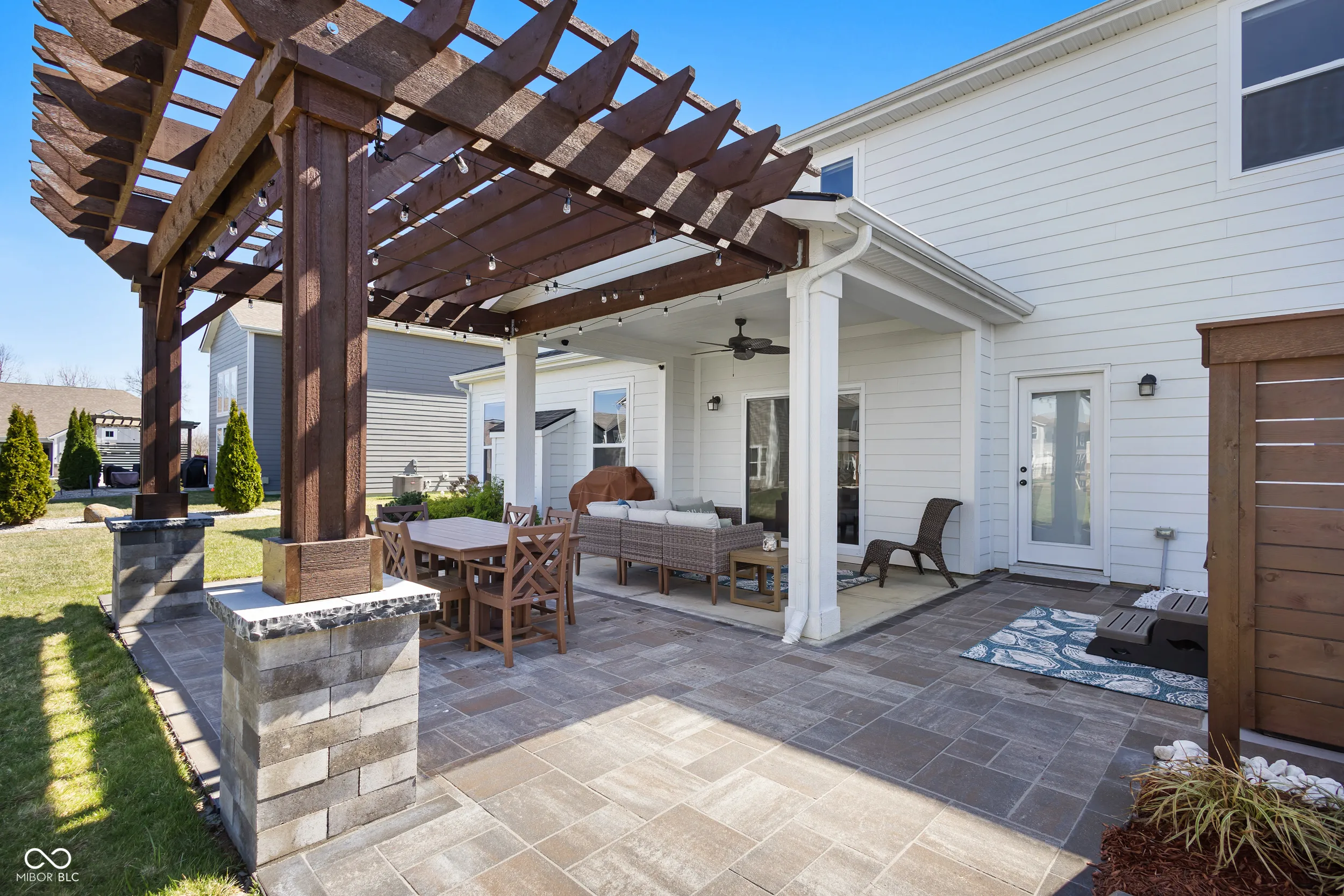 Welcome to this beautifully designed home located in a highly desirable area with top-rated Brownsburg schools. Offering the perfect blend of comfort, style, and functionality, this spacious four-bedroom, 2.5-bath home has everything you’ve been searching for. Step inside to discover hard surface flooring throughout the main level and a thoughtfully designed open layout. The great room featuring a gas fireplace flows seamlessly into the gourmet kitchen, creating an ideal space for both everyday living and entertaining. The kitchen is a true centerpiece, featuring an oversized island, double ovens, a gas stove with range hood, and a tile backsplash. Additional main-level highlights include a dedicated office and a convenient mudroom, perfect for keeping daily life organized. Upstairs, the primary suite offers a luxurious retreat with a large bathroom complete with double sinks, a tiled shower, and a huge walk-in closet. Each of the additional bedrooms also includes large or walk-in closets, providing ample storage throughout the home. Step outside to enjoy your own private oasis. The outdoor living space includes a covered patio, pergola, and hot tub-perfect for relaxing or entertaining year-round. The home also features a three-car garage and a beautiful front view with no houses directly across the street, offering added privacy and curb appeal. Irrigation system keeps the lawn clean and green. Close to Eagle Creek Park, trails, golf, AND there is a community pool and playground. This home truly has it all-space, style, and an unbeatable location.