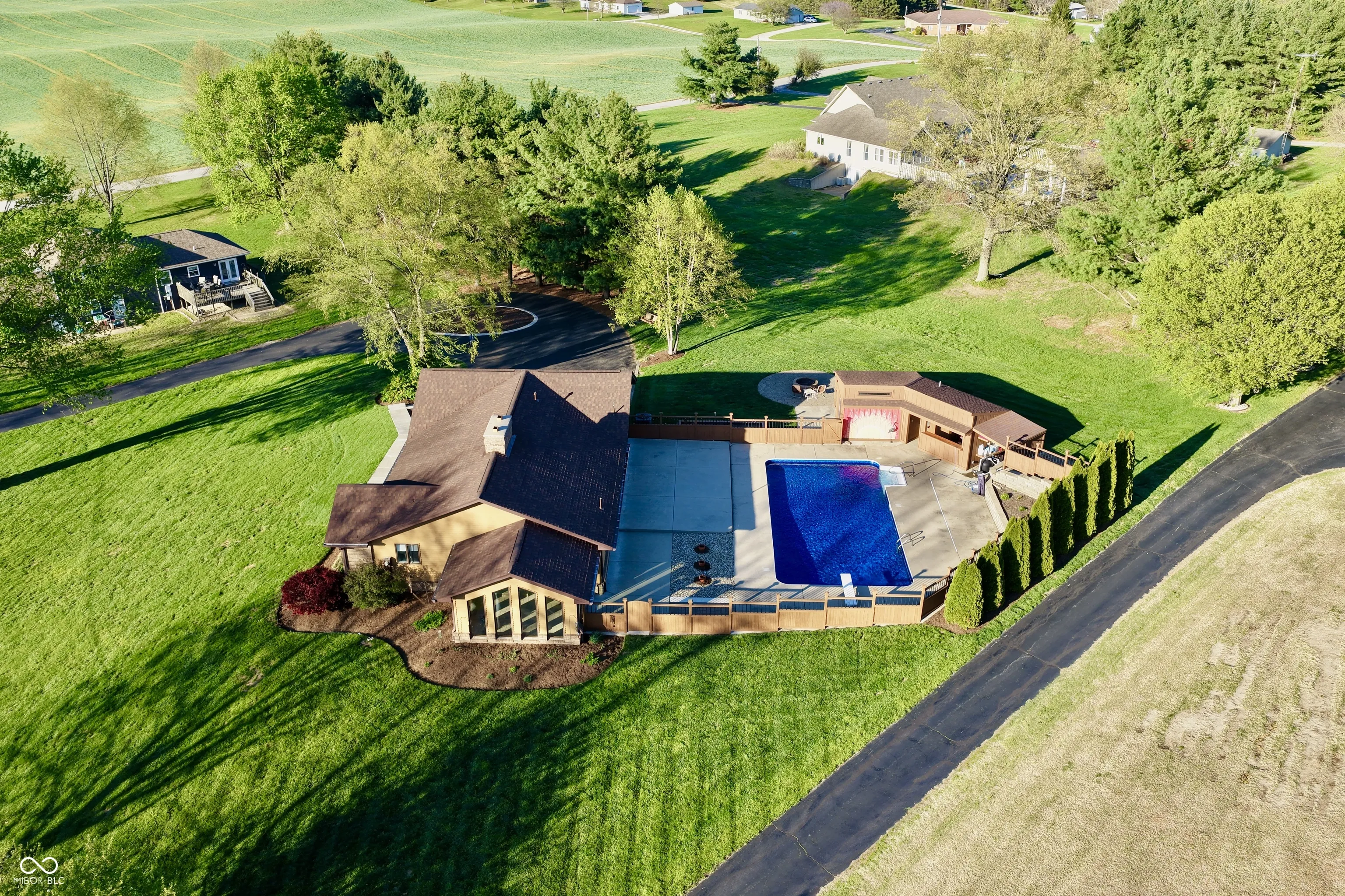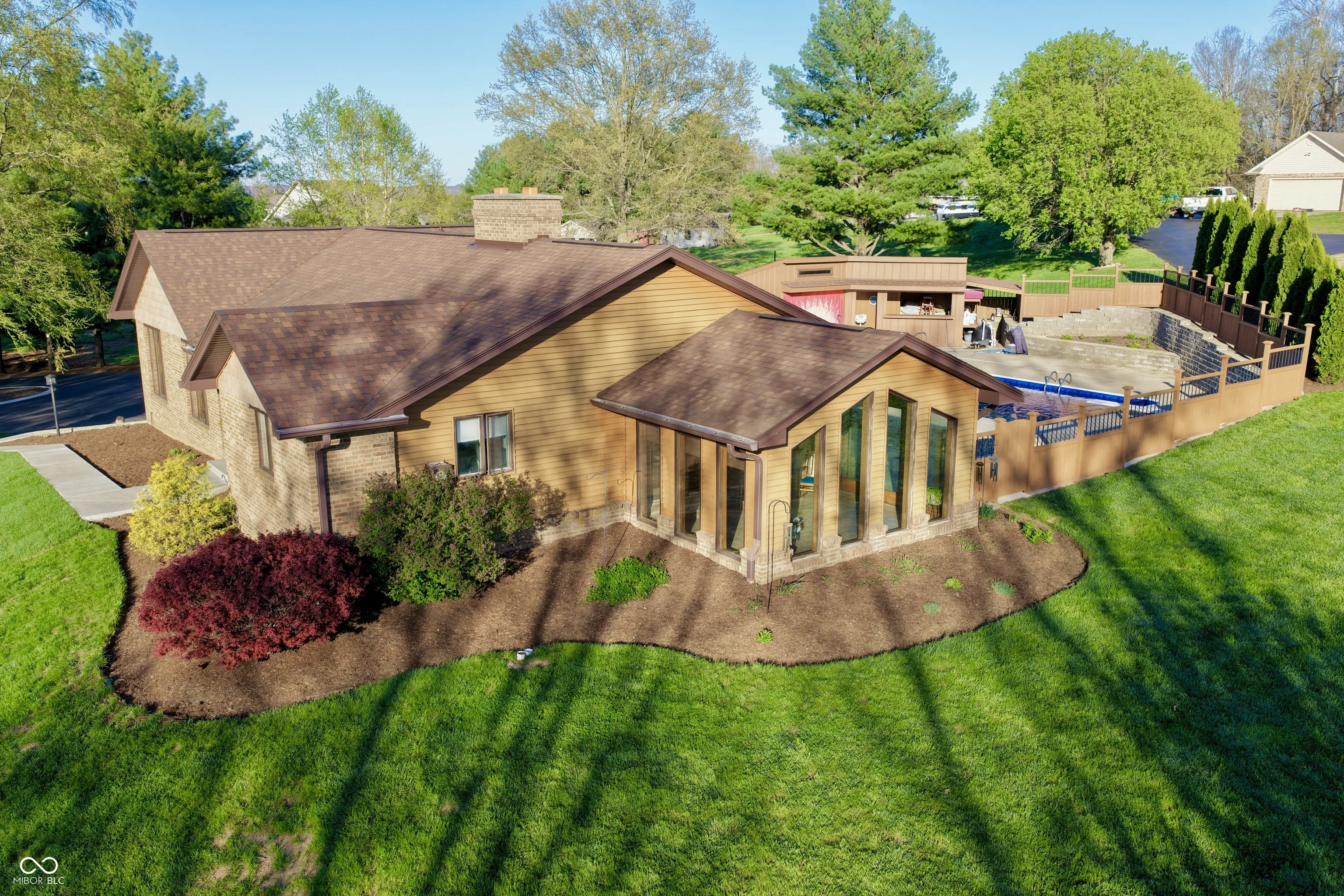 Welcome home to this single-owner, meticulously maintained beauty-a true testament to quality craftsmanship and pride of ownership. Built with enduring materials and thoughtful upgrades, this home features Andersen windows, a brand-new hybrid HVAC system, and a stunning kitchen complete with an undermount sink, granite countertops, and updated appliances. Offering 3 bedrooms and 3 full bathrooms, plus a convenient half bath in the pool house, every space has been carefully updated. All bathrooms showcase new vanities and flooring, while the primary suite boasts granite countertops and a walk-in tile shower with a built-in bench. The additional upstairs bathroom mirrors this design with its own walk-in tile shower and seating. The walkout basement expands your living space with a gas log fireplace, while the main level features a cozy wood-burning fireplace, giving you the best of both worlds. Step outside to your private backyard retreat featuring a 20×40 inground pool with a brand-new liner, a 9-foot deep end with diving board, and professional maintenance by Perry’s Pool. Gas lines are already in place for a future pool heater, and the home is serviced by a 500-gallon buried propane tank. Entertain with ease on the massive concrete patio, accessible from double doors off both the living room and primary suite, or unwind in the insulated wood-framed sunroom, perfect for year-round enjoyment. The walkout basement includes a 2-car attached garage, complemented by an asphalt driveway with a turnaround area and a newly poured concrete sidewalk leading to the front entrance. A stone fire pit area creates the perfect setting for relaxing summer evenings, all while enjoying breathtaking sunset views overlooking the golf course. This home is truly turn-key-immaculately cared for, beautifully updated, and ready for its next chapter.
