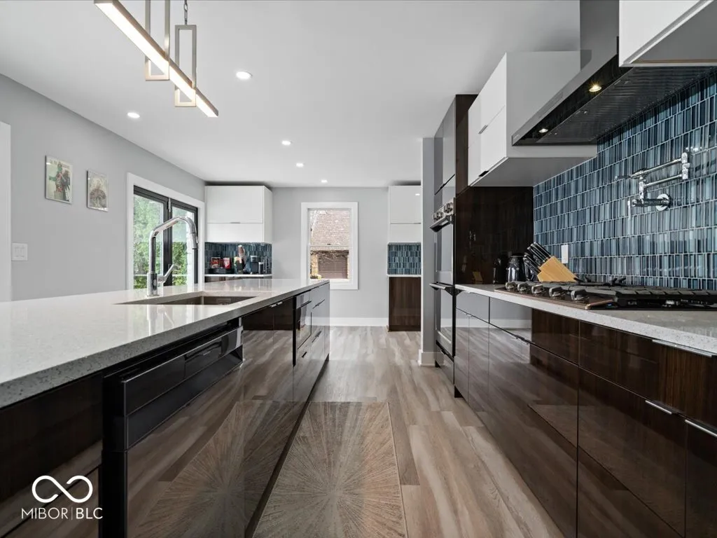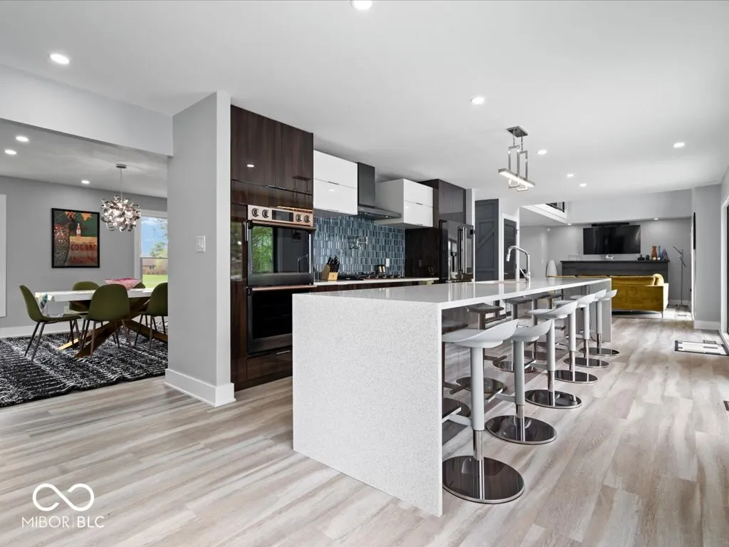 Looking for a home with a POOL, GOLF SIMULATOR, and LAKE views in Greenfield, Indiana? This extensively remodeled property on Sugar Hills Lake offers a rare combination of modern updates and outdoor living features just outside Indianapolis. The main level was completely rebuilt down to the studs, creating an open layout with modern finishes. The kitchen overlooks the pool with bifold sliding doors, custom cabinetry, large center island with waterfall quartz countertops and high end Samsung appliances. The primary suite includes TWO spa-like full bathrooms and two walk-in closets, providing a level of space and functionality not commonly found. The finished lower level adds additional living space with a full bathroom, while major mechanical improvements-including HVAC relocation and a sump system with battery backup-support long-term reliability. Outdoor features are designed for everyday use and entertaining. The property includes a 20×40 SALT WATER INGROUND POOL, outdoor KITCHEN with gas and refrigeration, , PERGOLA AND POOL HOUSE, GAS FIREPIT, and a dedicated PUTTING GREEN. The FIVE CAR garage offers space for vehicles, walk up attic storage, and a golf simulator setup for year-round use. Located along Sugar Hills Lake, this property offers water views and a private setting while remaining convenient to Greenfield and the greater Indianapolis area. With over $500,000 invested in renovations and improvements, this home stands out for buyers searching for a remodeled home with a pool, golf features, and lake setting in Central Indiana.