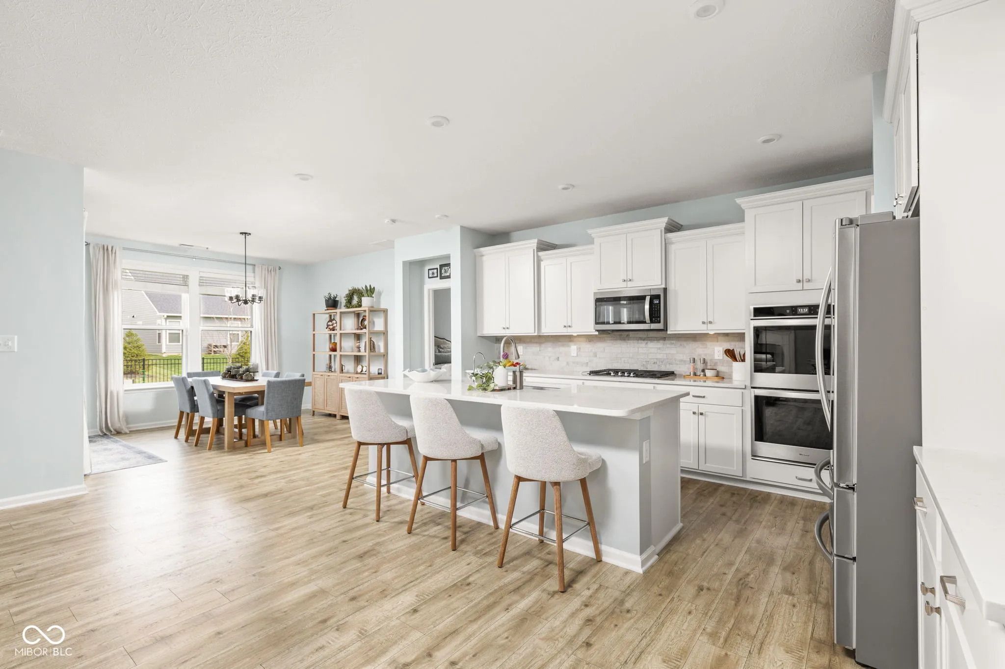 A fresh chapter awaits you in Bourdeux Walk! Savor all the conveniences of modern living without a single stair in sight.This 3 bed, 2.5 bath, 3-car garage ranch offers an abundance of space, fenced backyard, amazing location, on trend aesthetics & on budget pricing! Step inside and you’ll immediately feel the difference. The open-concept design, soaring 9-foot ceilings, and natural light create a space that feels both elevated and easy. The great room centers around a cozy gas fireplace, making it just as perfect for quiet nights in as it is for hosting friends & family. The kitchen is the true heart of the home-finished with quartz countertops, stainless steel appliances, a generous center island, and a gorgeous custom walk-in pantry that makes everyday life feel a little more organized. It flows seamlessly into the dining area, where sliding doors lead out to the fenced backyard, complete with covered porch, appointed flower boxes & generous space for lounge furniture & grills, pets & play time for kiddos! The split-bedroom floor plan offers both privacy and flexibility. The primary suite feels like a retreat, featuring a tray ceiling, fresh paint & a beautifully appointed en-suite bath with dual sinks, tiled walk-in shower, and enormous walk-in closet with custom shelving. Plus two additional bedrooms & sunshiny office! You could keep looking, or you could call this home. See you soon!