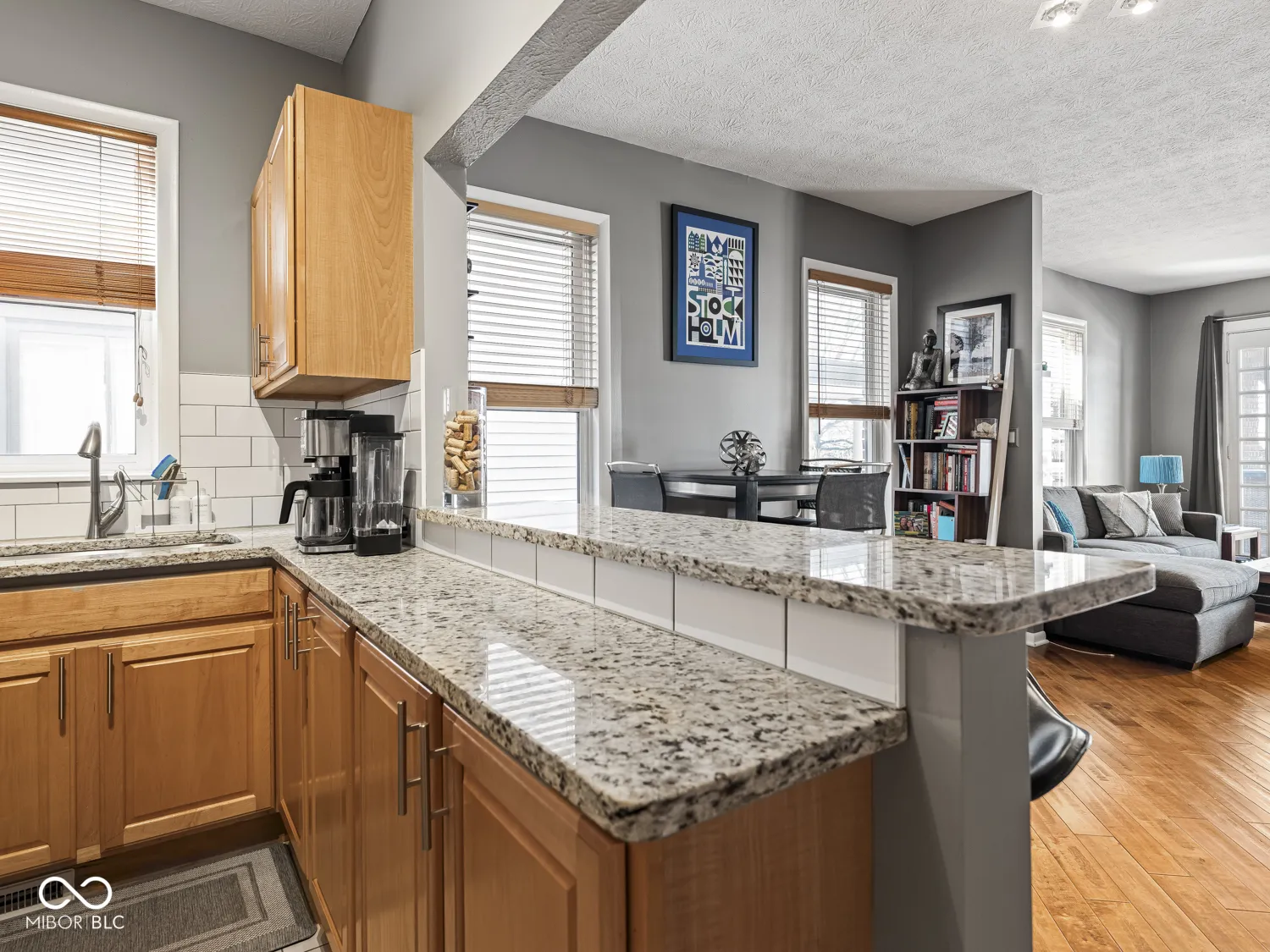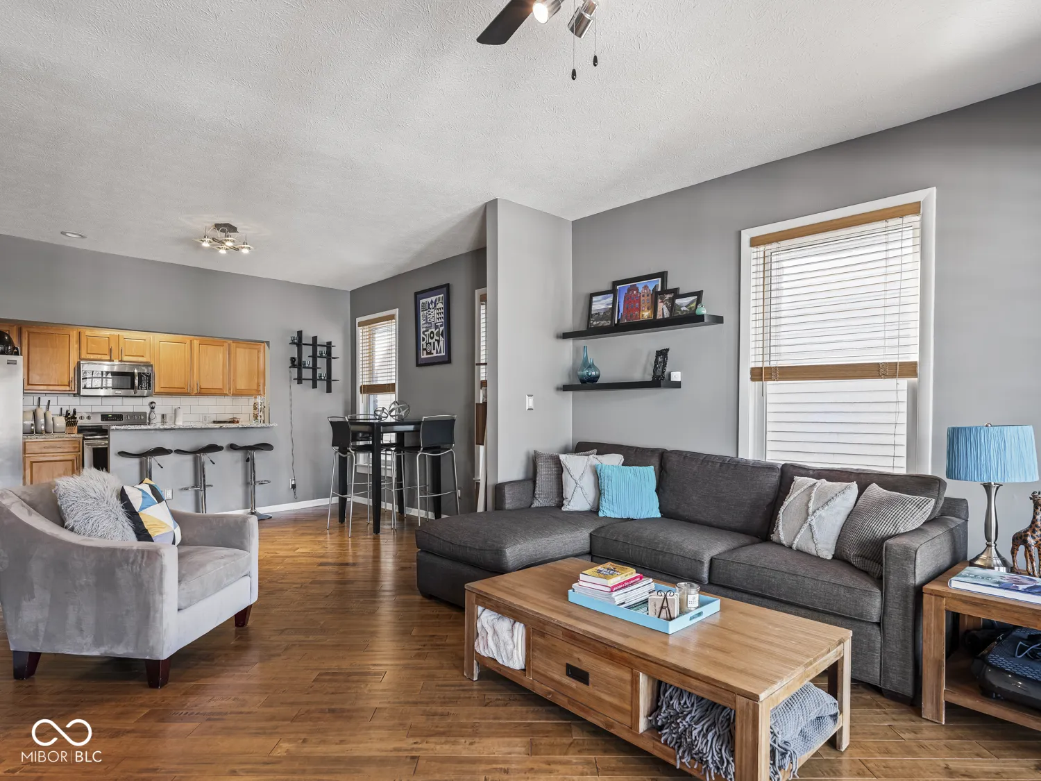 Experience the perfect blend of downtown energy and neighborhood charm in this main-level condo in historic Fletcher Place! Raised ceilings and hardwood floors create a cohesive and spacious feel. The large living room invites you to relax by the gas fireplace, while stunning new French doors open to an oversized covered porch – ideal for morning coffee, evening unwinding, or people-watching. The open-concept living, dining, and kitchen allow for effortless entertaining. The kitchen shines with a full stainless steel appliance package, granite countertops with breakfast bar, and a classic subway tile backsplash. Down the hall, two comfortable bedrooms each enjoy access to their own beautifully renovated bathrooms and nearby laundry. The primary suite at the back of the unit boasts a large walk-in closet for all your storage needs, in addition to the extra storage in the basement. Step outside to a small deck leading to your private garage stall. Located just blocks from your favorite cafes, restaurants, shops, nightlife and sports venues, this home lets you spend less time on maintenance and more time enjoying the city!