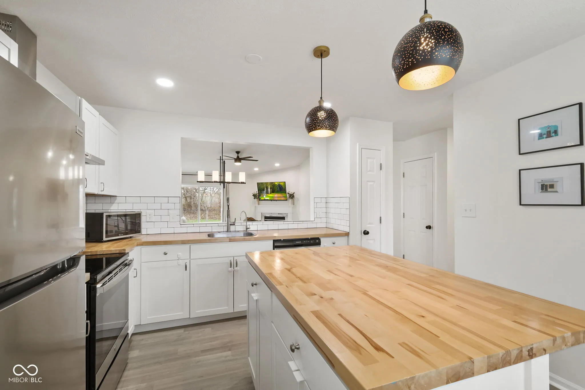 A stunning 3 bedroom 2 bathroom residence awaits at 19345 Amber WAY, NOBLESVILLE, IN. Presenting an attractive property in great condition that promises comfortable living. The living room provides a welcoming atmosphere, featuring a fireplace that creates a focal point for gatherings, beneath a vaulted ceiling that enhances the sense of openness and airiness. The thoughtfully designed kitchen stands as a central hub, equipped with a tasteful backsplash, convenient kitchen bar, and a generously sized kitchen island, all complemented by elegant shaker cabinets and a distinctive wall chimney range hood, along with a functional kitchen peninsula for various culinary endeavors. Among the two full bathrooms, convenience is elevated with a double vanity, providing ample personal space for daily routines. Beyond the main living spaces, a dedicated laundry room simplifies daily tasks, while outdoor enjoyment is effortlessly achieved with a private patio and a secure fenced backyard, all nestled within a pleasant residential area. This charming single family residence, built in 1995. This attractive single family residence offers a harmonious blend of comfort and thoughtful design, creating an ideal setting for a fulfilling lifestyle.