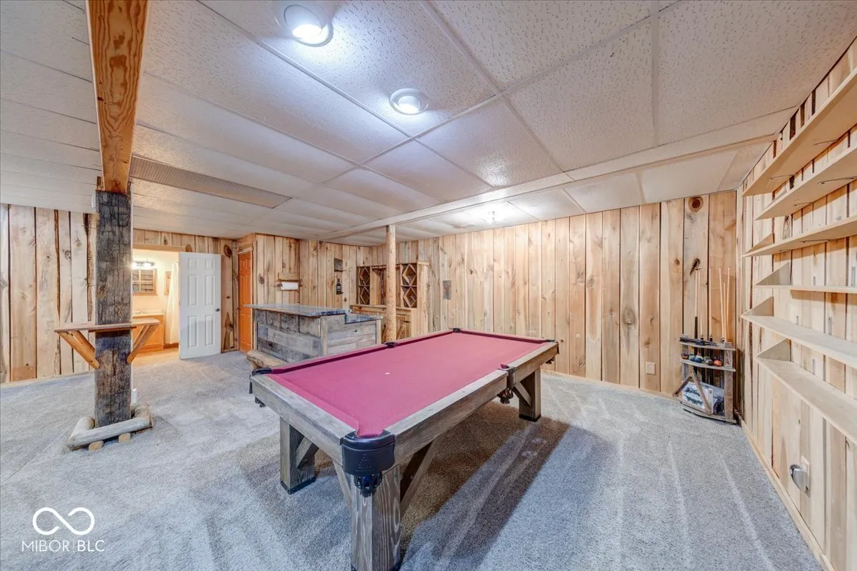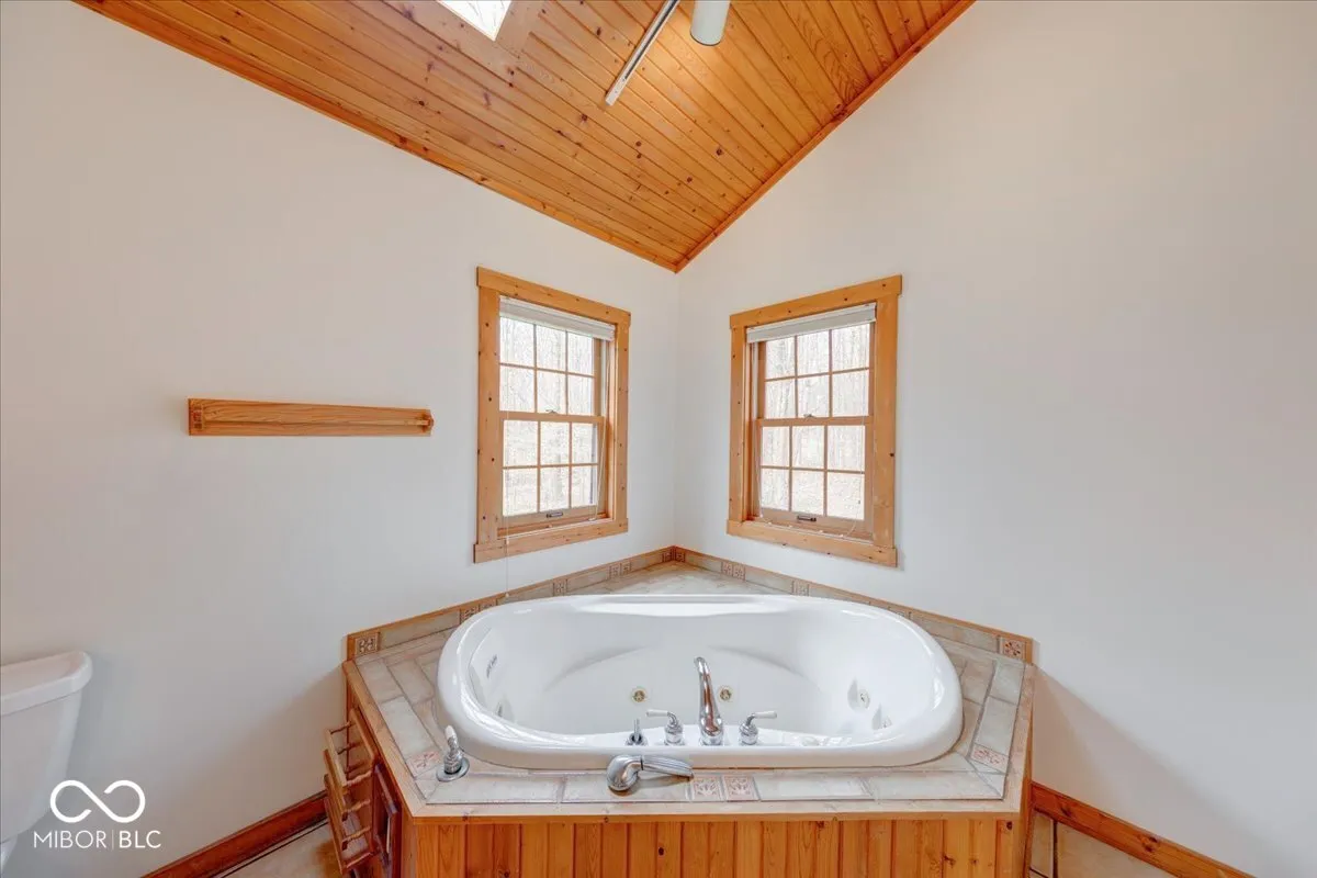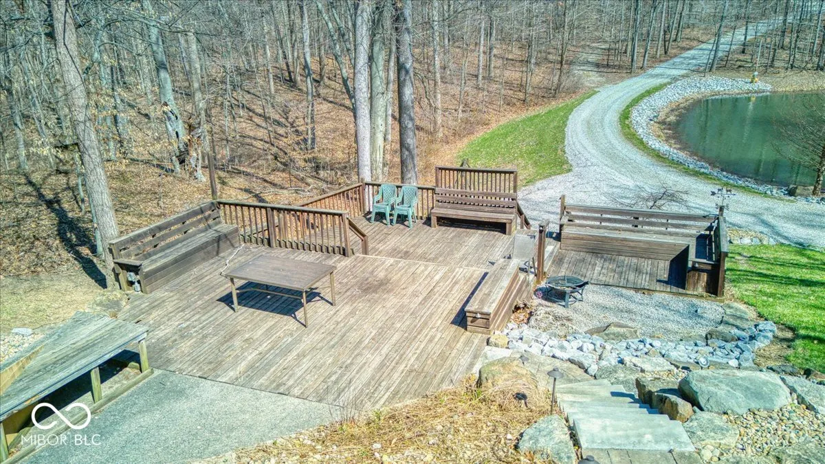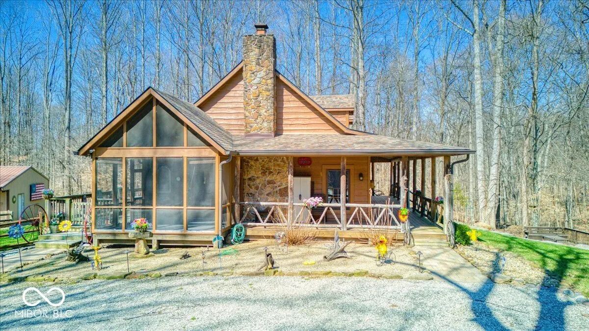 Envision a lifestyle of an outdoorsman hunting paradise surrounded by a wooded 22.6 acres and a beautiful 3540 SF custom built rustic home overlooking a private pond with 5-car detached garage. This beautiful home provides a grand setting with its soaring high ceiling and impressive vaulted ceiling, creating an airy atmosphere. A striking wood ceiling, adorned with robust beamed ceiling elements, complements the distinctive wood wall, while a comforting fireplace offers a focal point for relaxation. The heart of the residence is found within its kitchen, a space designed for both culinary artistry and gathering, featuring a distinctive wood ceiling and an inviting wood wall. This area is further enhanced by a practical kitchen bar and a generously proportioned large kitchen island, all framed by elegant cabinets and a unique log wall, providing a warm and functional environment. A dedicated bar area in the basement provides an ideal setting for recreation and social gatherings, featuring a charming wood wall that enhances its inviting ambiance. Outdoor enjoyment is a hallmark of the property’s design, with a welcoming porch inviting quiet contemplation, a bright sunroom offering a tranquil retreat regardless of the weather, and an expansive deck providing ample space for outdoor leisure. A beach area has been added to the pond to enjoy sunning on a beautiful day. The pond has a beautiful controlled fountain that is stunning! There is a wildlife observation platform located on the property. A wildlife feeding observation area is located near the home which is beautiful to see and to feed the wildlife. This property has been surveyed and split into 4 parcels with 3 plots on the road front. This home has a generator system. This is a great development opportunity. This is truly paradise and a rare find! City water is available but no hooked up.