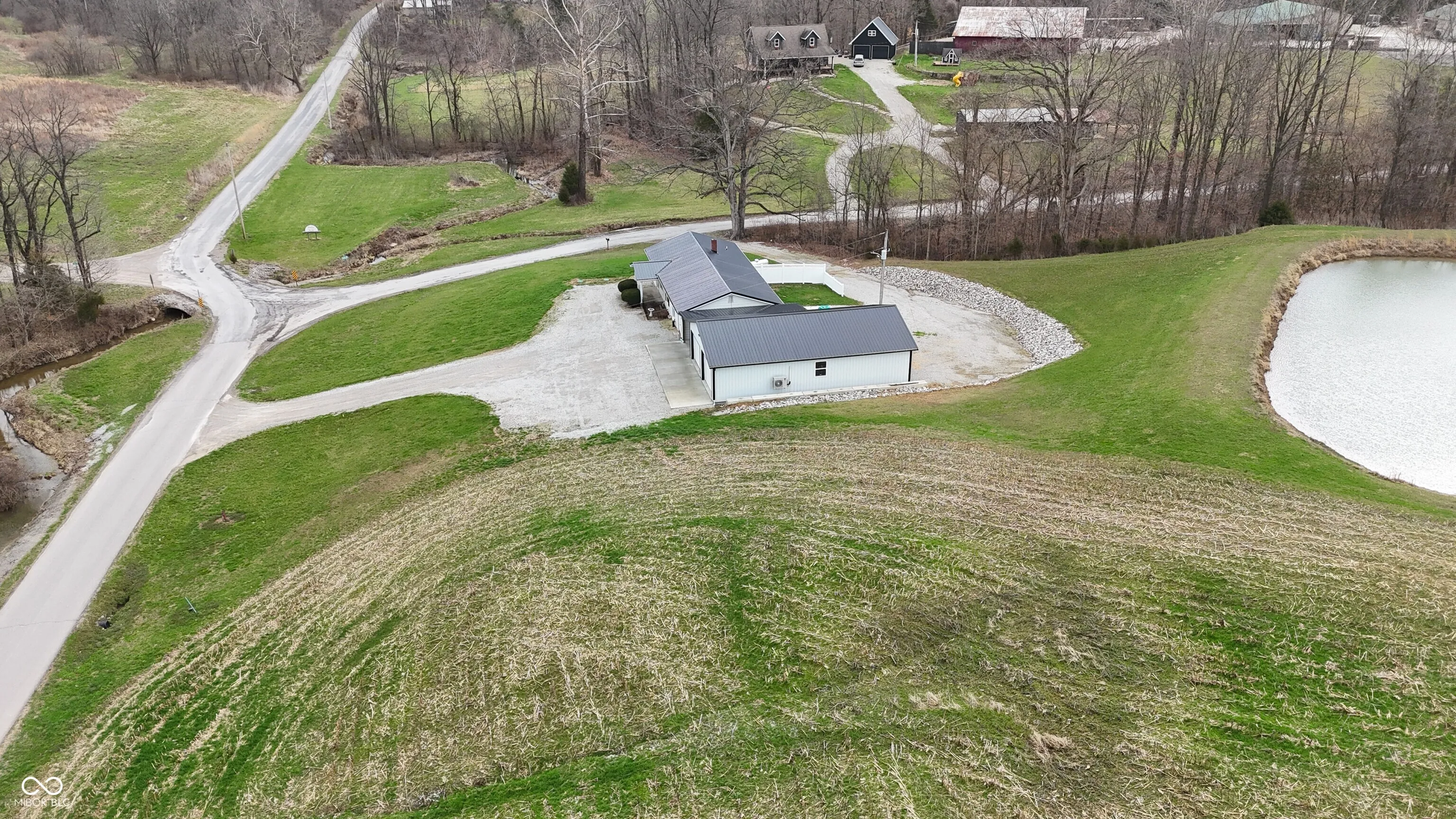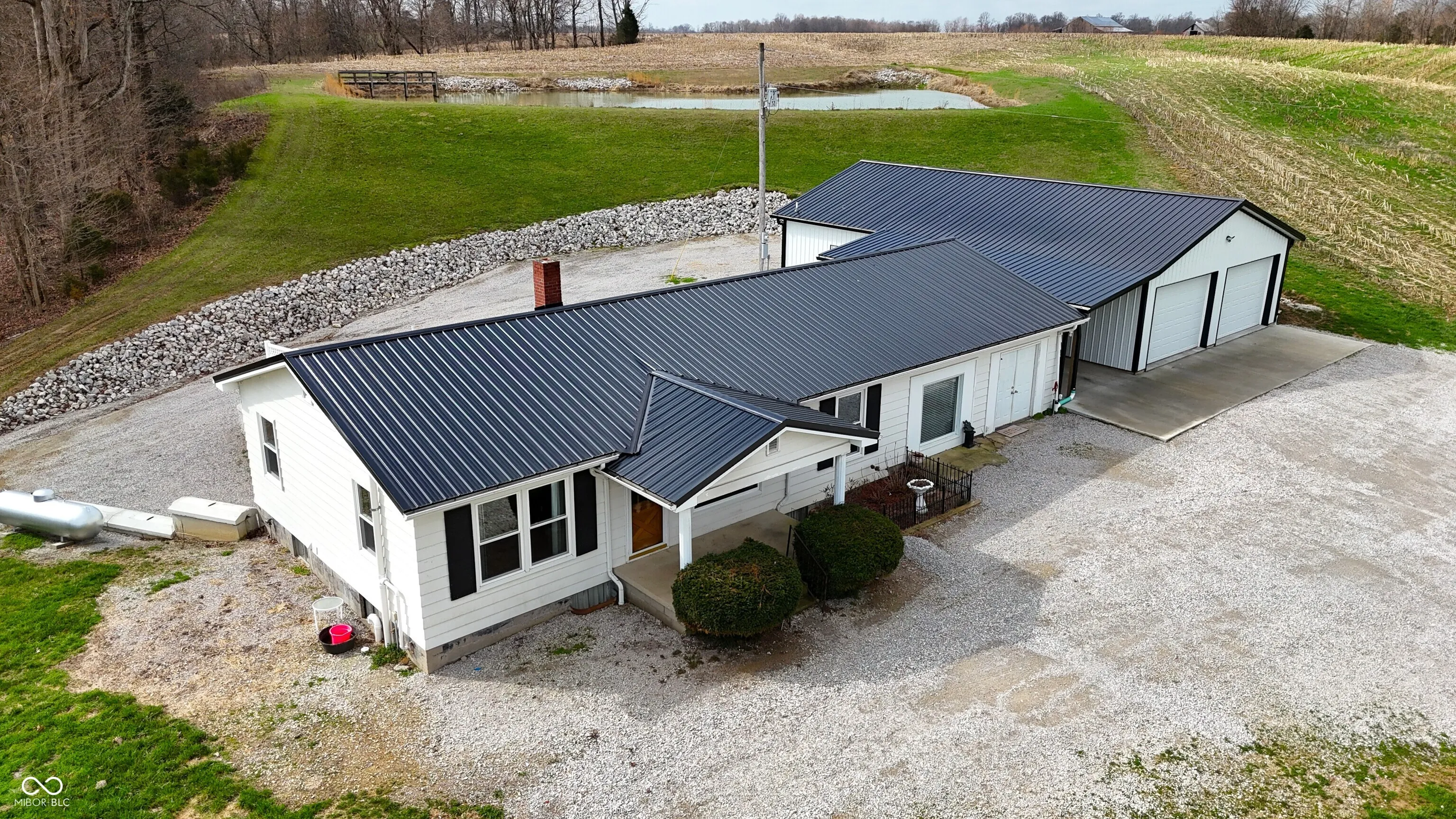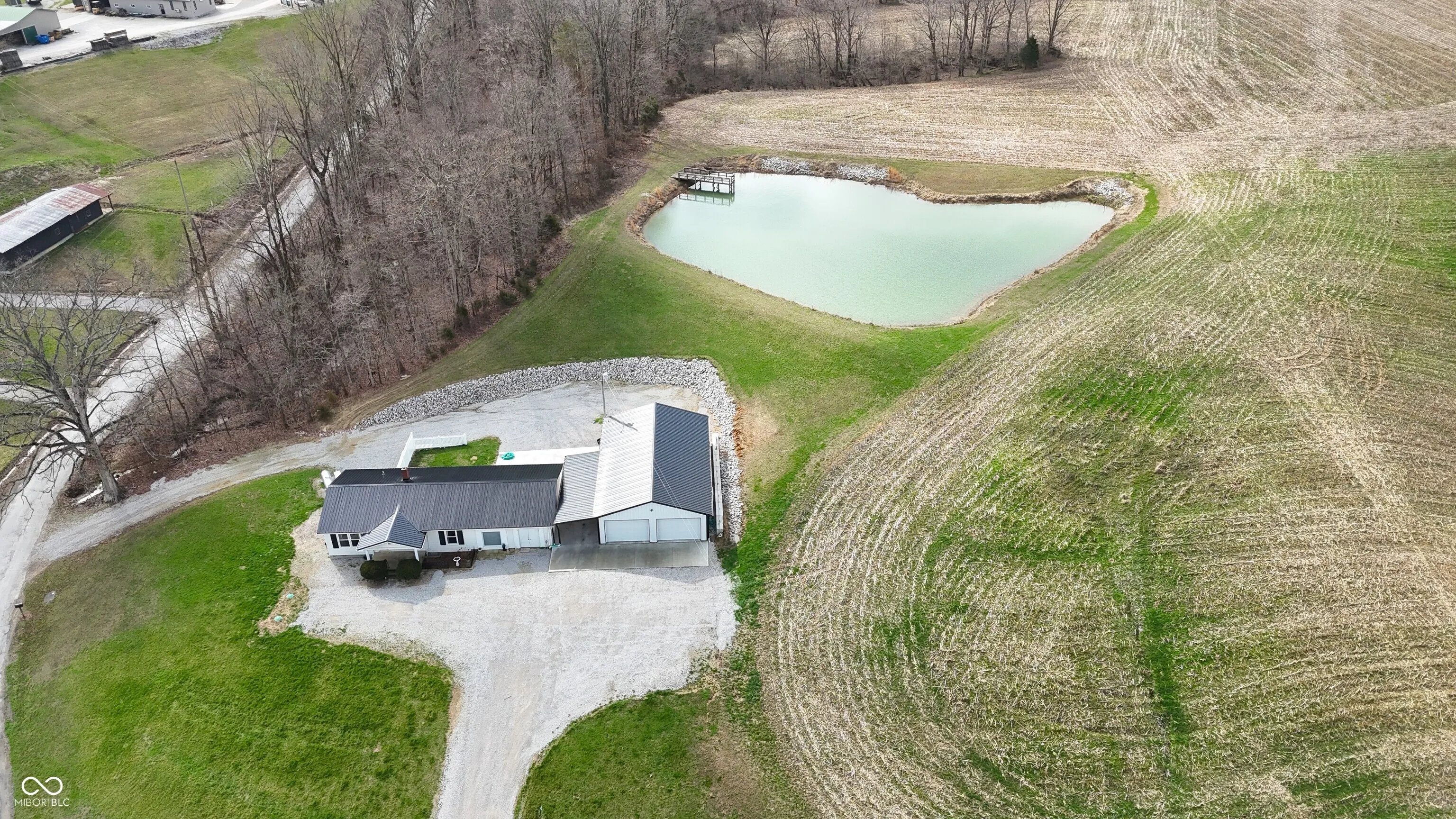 Located in the rural community of Deputy, Indiana, this property offers a residential home with multiple acreage options to accommodate a range of buyer preferences. This specific offering includes approximately 10 acres and features a well-maintained home, functional improvements, and a scenic setting with a half-acre pond. Per GIS, the home offers over 2,500 square feet of living space and includes three bedrooms. The interior layout provides two separate living room areas, allowing flexibility for everyday living or hosting guests. A large basement adds additional usable space for storage, recreation, and includes a full shower, toilet, and sink. Recent updates to the home include newer windows and a newer roof, contributing to the overall condition and usability of the home. A new septic system has been installed, providing updated utility infrastructure for the residence. The property also includes a newly constructed detached garage with metal siding and a metal roof. This structure is equipped with electric and water service and includes a bathroom, offering versatility for workshop use, storage, or hobby space. The land associated with this offering consists of approximately 10 acres. The property would feature approximately 1,300 feet of road frontage and benefits from access via two separate roads, providing multiple entry points and flexibility for parking and circulation. The location provides convenient access to nearby towns and recreational opportunities. The property is situated approximately 17 minutes from Scottsburg and approximately 24 minutes from Madison. Hardy Lake is located about 8 minutes away, offering opportunities for fishing, boating, and outdoor recreation. The property falls within the Madison Consolidated Schools district. This property combines residential living with acreage, utility improvements, and proximity to both small-town amenities and outdoor recreation.