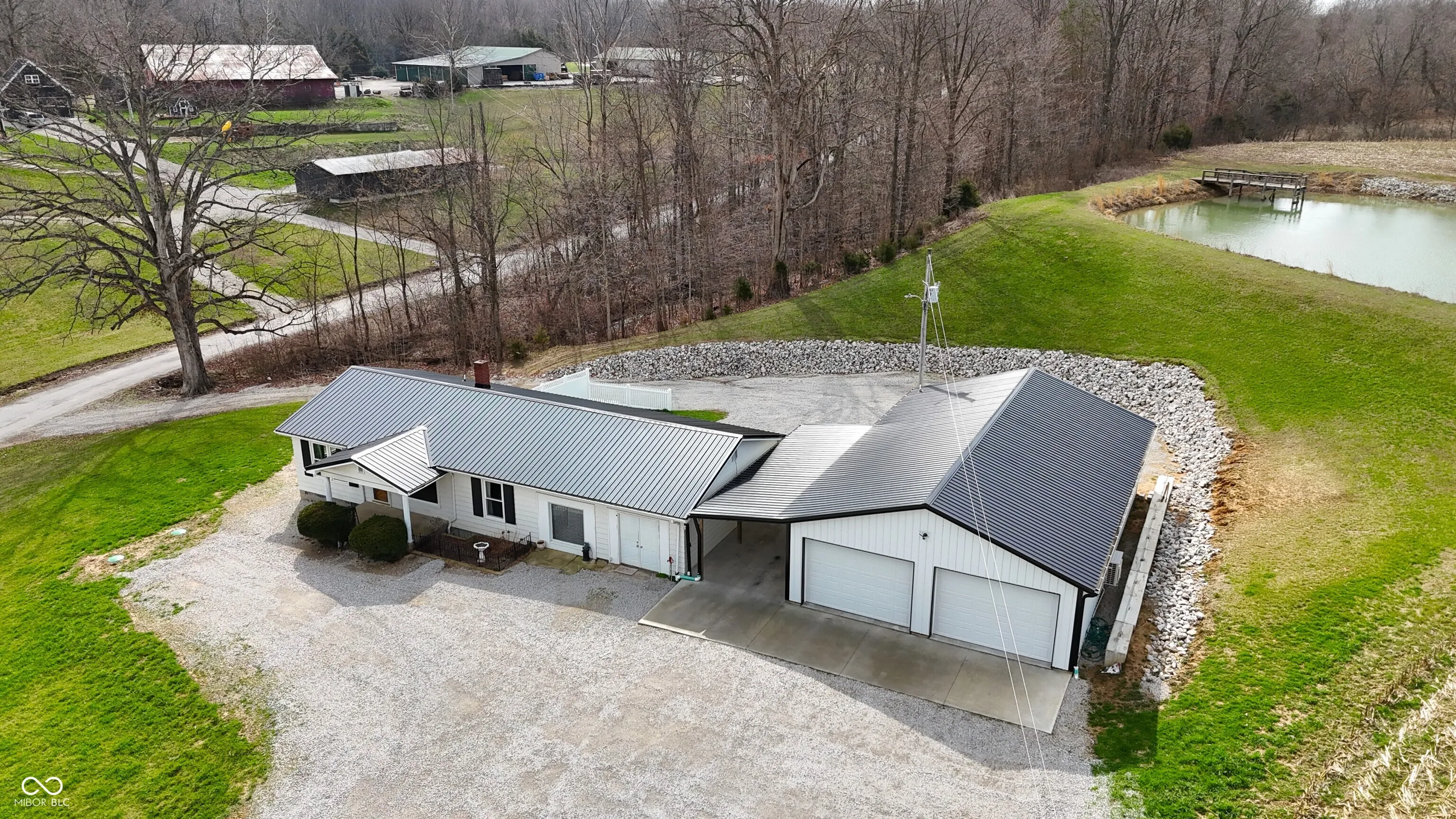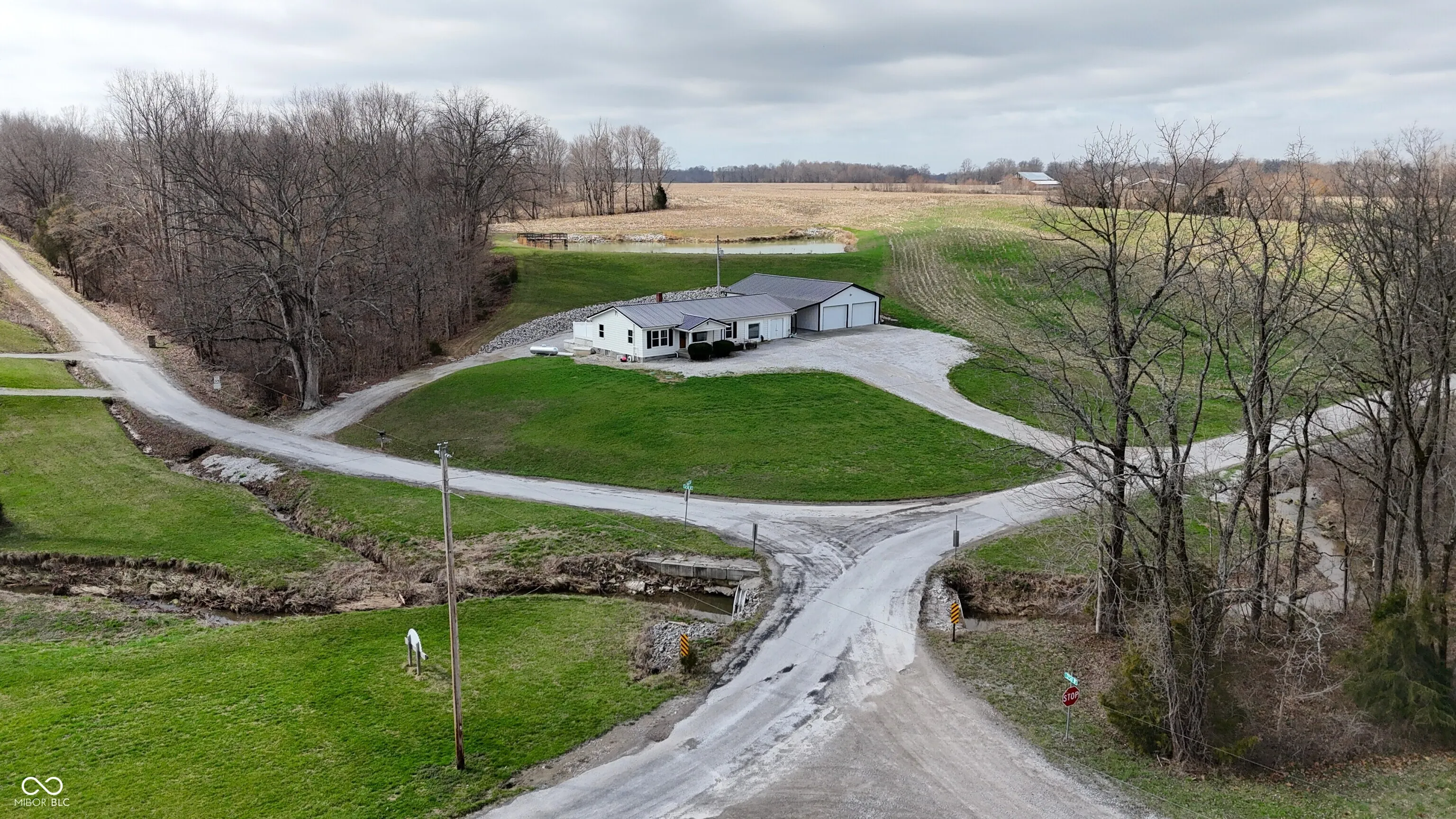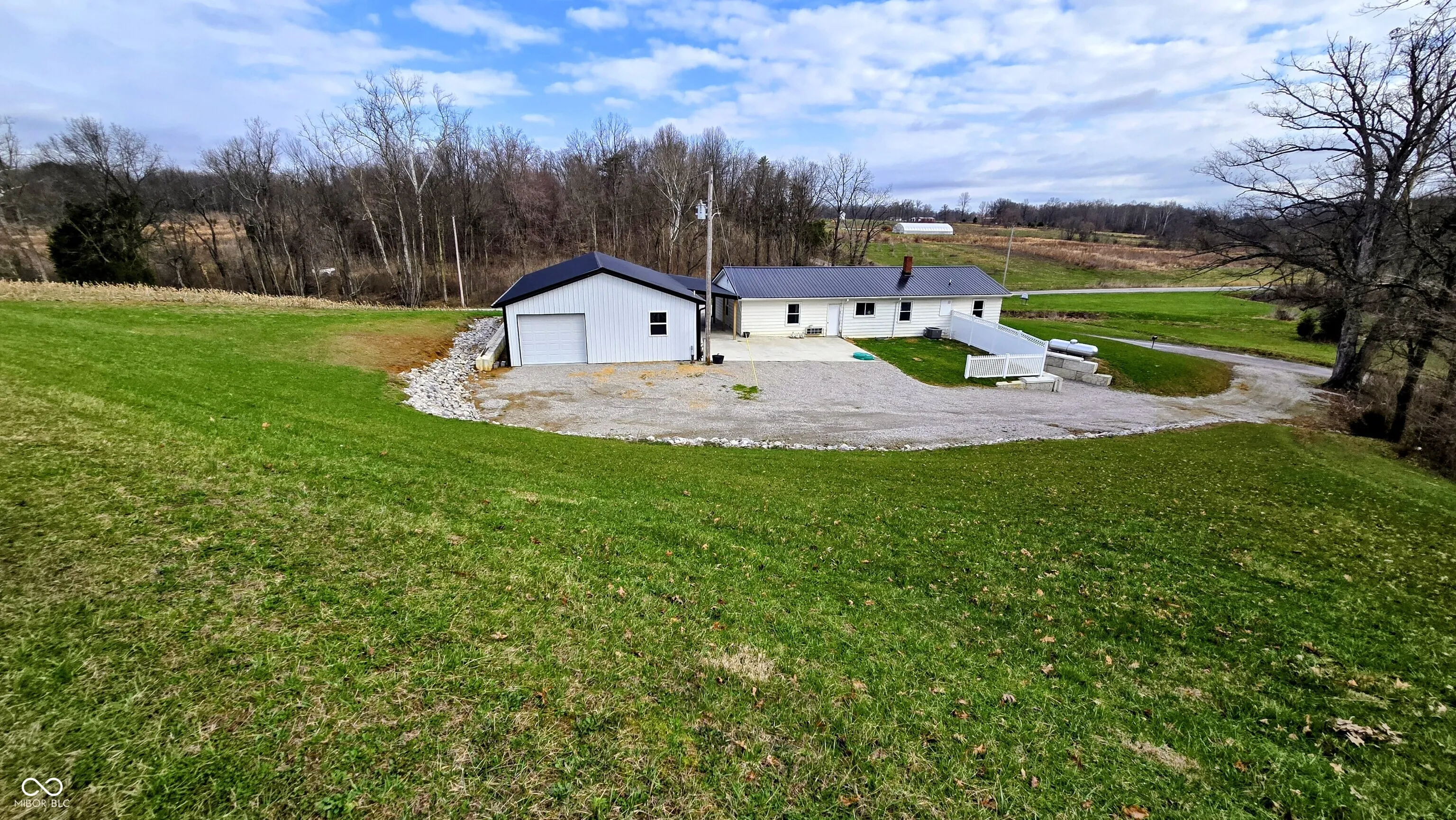 Located in the rural community of Deputy, Indiana, this property offers a residential home with multiple acreage options to accommodate a range of buyer preferences. This specific offering includes approximately 10 acres and features a well-maintained home, functional improvements, and a scenic setting with a half-acre pond. Per GIS, the home offers over 2,500 square feet of living space and includes three bedrooms. The interior layout provides two separate living room areas, allowing flexibility for everyday living or hosting guests. A large basement adds additional usable space for storage, recreation, and includes a full shower, toilet, and sink. Recent updates to the home include newer windows and a newer roof, contributing to the overall condition and usability of the home. A new septic system has been installed, providing updated utility infrastructure for the residence. The property also includes a newly constructed detached garage with metal siding and a metal roof. This structure is equipped with electric and water service and includes a bathroom, offering versatility for workshop use, storage, or hobby space. The land associated with this offering consists of approximately 10 acres. The property would feature approximately 1,300 feet of road frontage and benefits from access via two separate roads, providing multiple entry points and flexibility for parking and circulation. The location provides convenient access to nearby towns and recreational opportunities. The property is situated approximately 17 minutes from Scottsburg and approximately 24 minutes from Madison. Hardy Lake is located about 8 minutes away, offering opportunities for fishing, boating, and outdoor recreation. The property falls within the Madison Consolidated Schools district. This property combines residential living with acreage, utility improvements, and proximity to both small-town amenities and outdoor recreation.